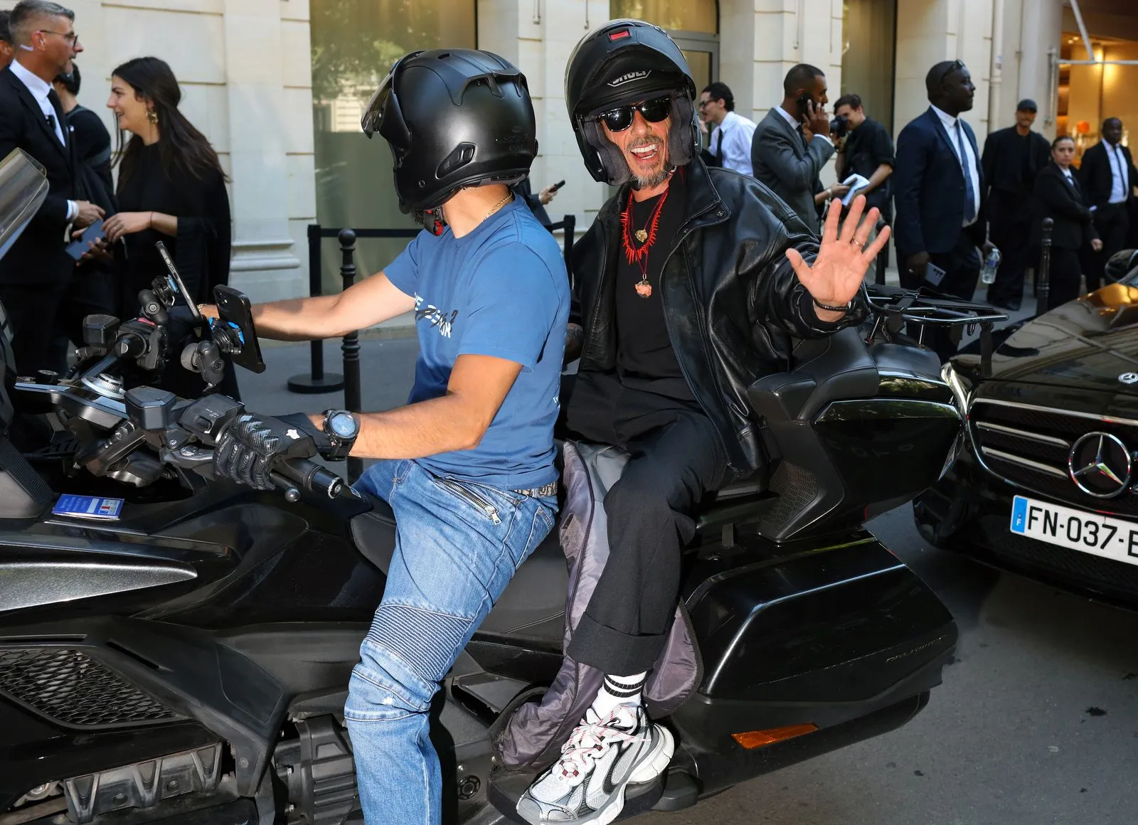 Sneakers are more practical for hopping on the back of a motorcycle, but boots are perfect for a paparazzi moment.