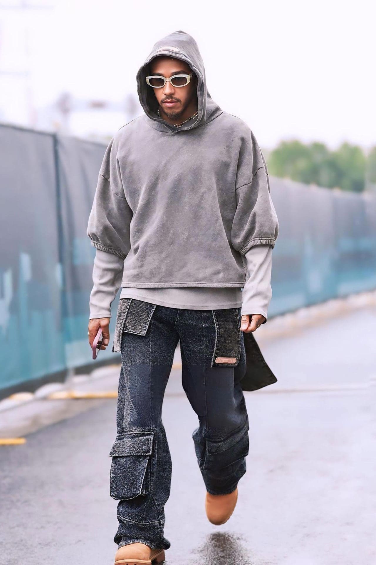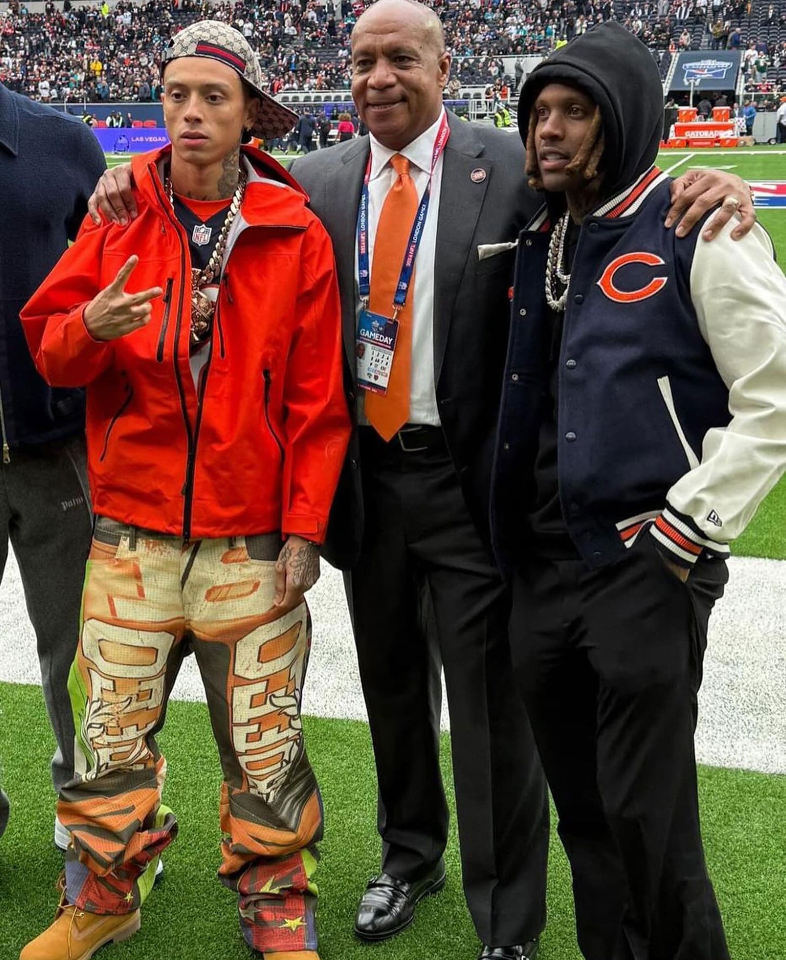 PDF’s associations with music also drive brand awareness and sales. When Drake wore a pair of custom (gifted) PDF shoes in 2023, the buzz was “immediate”, Formichetti says, and the label saw an uptick in engagement with its social channels and website. “Another standout moment was when Central Cee wore the No Name Pant to an NFL game three months ago,” he adds. “It sparked a noticeable jump in sales and introduced the brand to a wider audience.” Formichetti met Central Cee in Paris last year, when he hand-delivered custom trousers for Central Cee’s friend, rapper Asake. Soon enough, the star was requesting looks to wear himself.