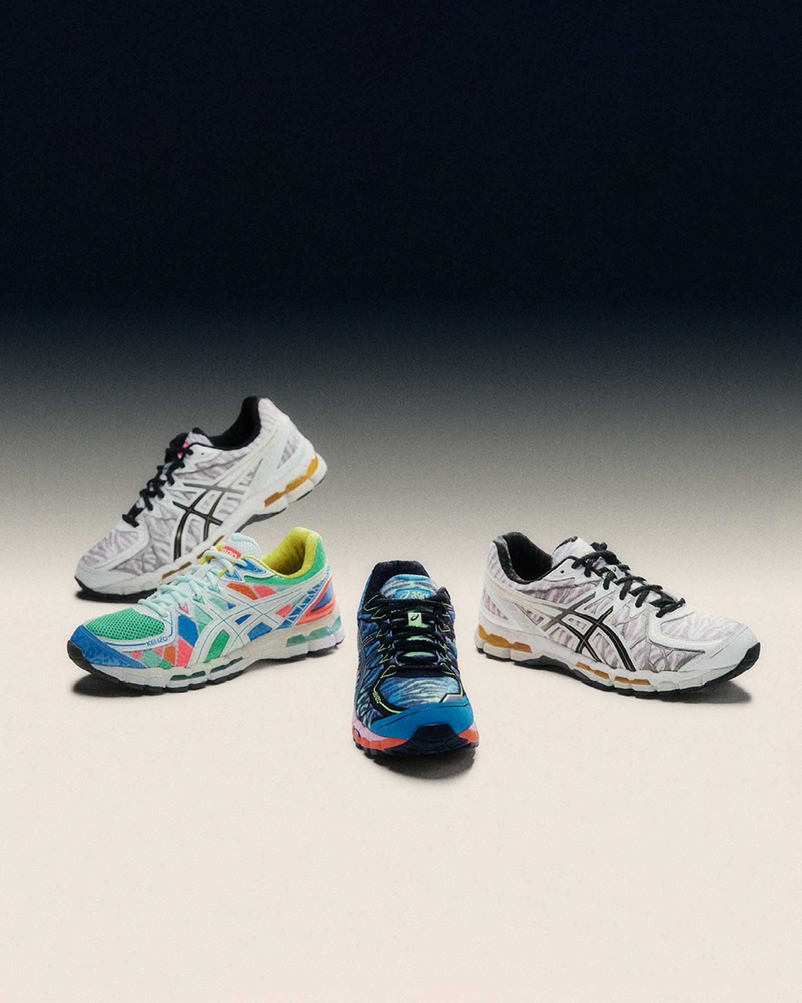 One of the shoes is decked in a combination of blue, lime green, and orange hues, while another pays homage to the original GEL-KAYANO’s sober silver, gold, and white colorway. Lastly, the third style displays a bevy of fresh, vivid colors—consisting of blue, green, pink, yellow, and orange—which are contrasted by a sporty white shade. In each design, the shoe’s right tongue is adorned with the ASICS label, while KENZO’s distinctive logo graces the left; both of which are enclosed in a unique co-branded packaging that adds to collaboration’s visual appeal.