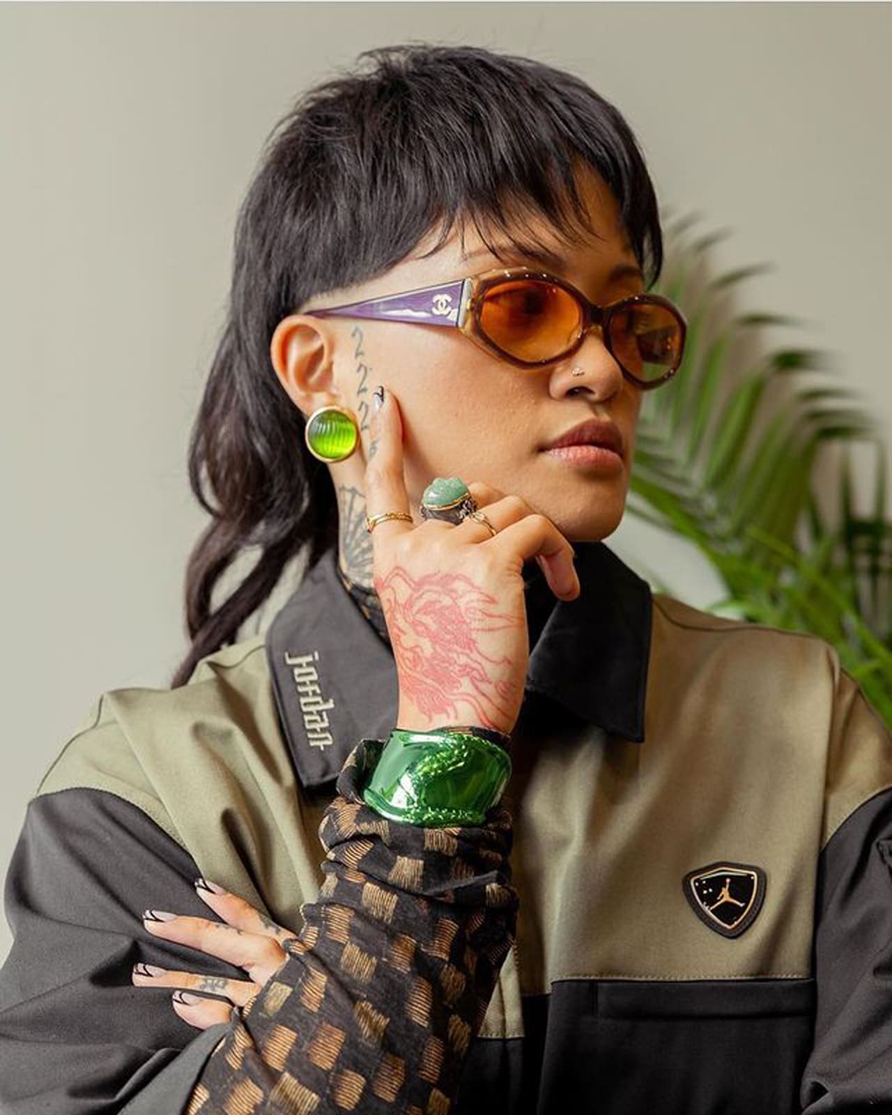 Rik Rasos is disrupting the local streetwear scene with his cult contemporary fashion brand, Proud Race. A label worn by BTS, his collections are inspired by nostalgia and youth culture in the Philippines. Rasos transforms existing silhouettes and reworks them into new contexts. The brand has an assortment of cheeky hand-printed pieces with messages like “Mahal Kita” or “Filipino Love,” including re-constructed pieces from old favorites from past collections. During the 2022 presidential elections, Proud Race created pink deconstructed tees for presidential candidate and former Vice President Leni Robredo. In 2017, Proud Race was recognized in premier streetwear publications, with fashion following suit via Vogue Italia’s Vogue Talents list. Through his off-beat brand, Rasos is known for his eco-friendly patchwork pieces made from upcycled deadstock materials including regenerated denim, fabric scraps, and old socks.