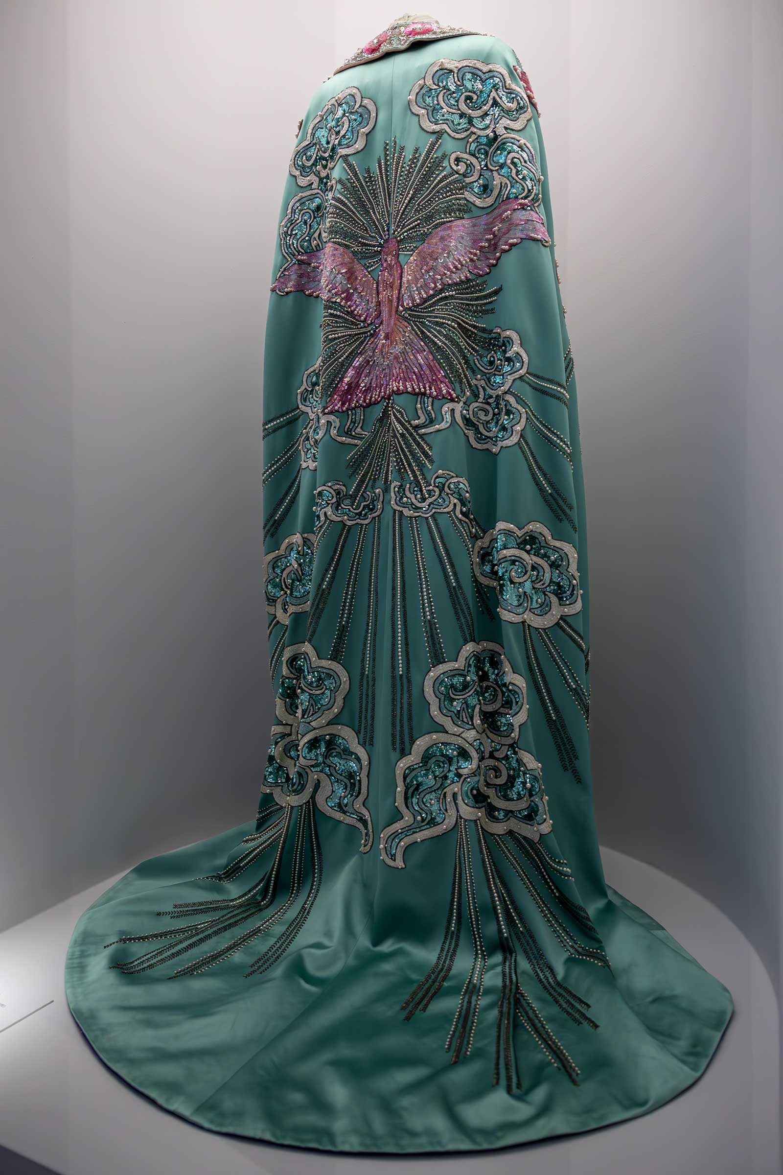 Apart from the multi-sensory properties in this particular exhibition, The Met did not loan from any other institution to complete the line-up. It drew out from its existing collection of over 30,000 objects instead. Common to them are recurring themes like flowers, beads, birds, and butterflies. This includes some century-old garments from the archives, which could only be splayed flat on glass tables because they are too delicate to fit in mannequins. Leading the way are the Charles James Worth ball gown with thick embroidery of sunbeam and clouds circa 1882, the “Roseraie” evening dress Jeanne Lanvin released in 1923, and the 269-year-old floral French “Robe a la Francaise” in taffeta from unidentified designer among others.