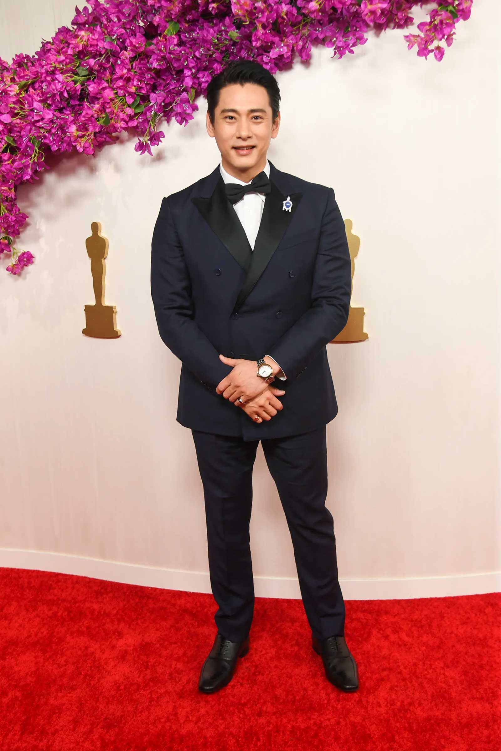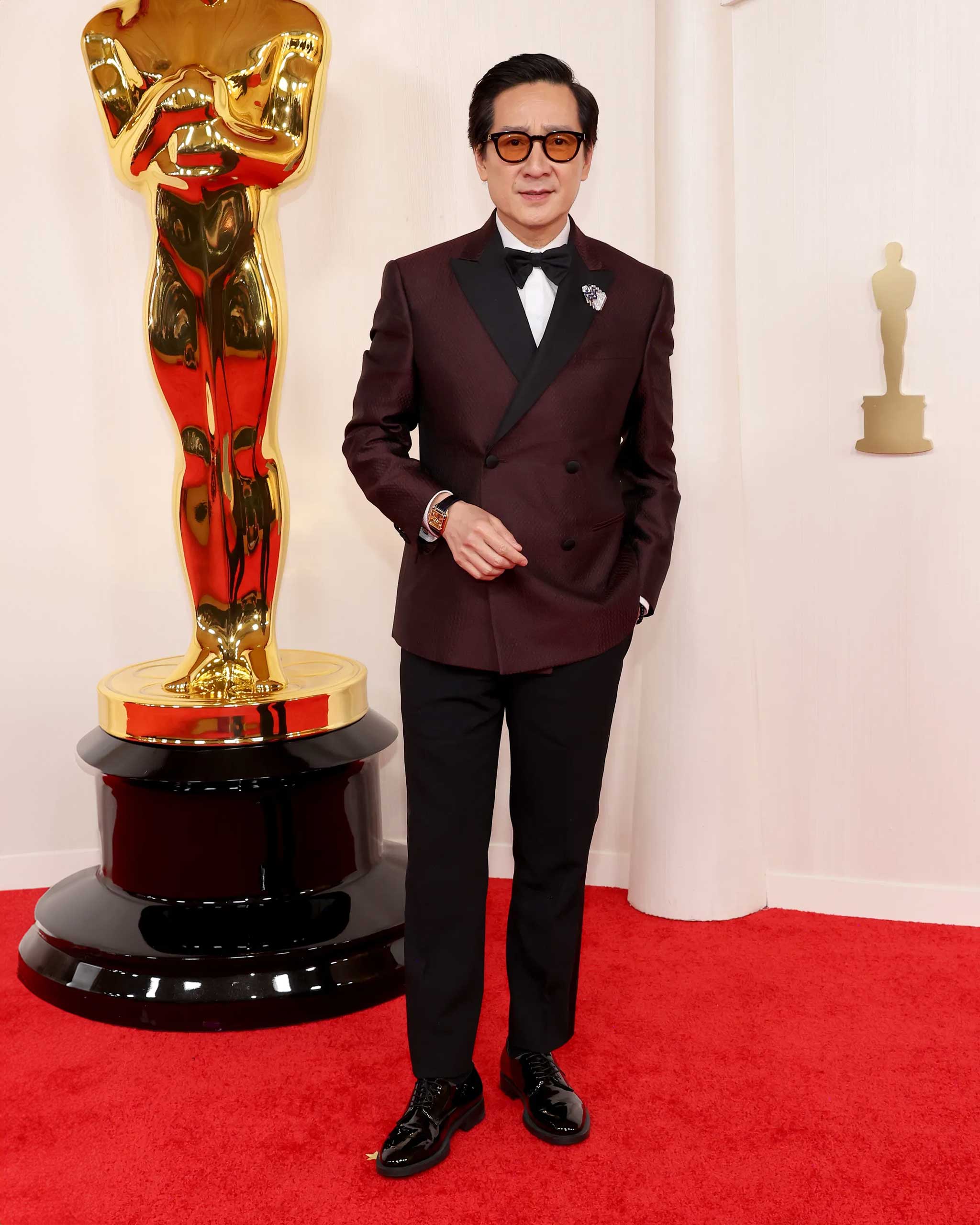 But the most popular way to jazz up a suit this year? That would be the humble brooch – although these aren’t the kind of brooches your granny used to wear. Nor, indeed, are they all that humble. Courtesy of jewellery houses like Cartier, Tiffany & Co. and Chaumet, these are pieces lavished with eye-popping precious stones, and accompanied by price tags that can stretch into the millions. Best actor winner Cillian Murphy added a dash of glitz to his louche Versace tuxedo and cummerbund with a custom gem brooch by Sauvereign, while Past Lives star Teo Yoo’s Louis Vuitton suit was paired with a charming tortoise brooch from the Cartier’s archives, featuring a giant blue cabochon as its “shell” and studded with emeralds for eyes.