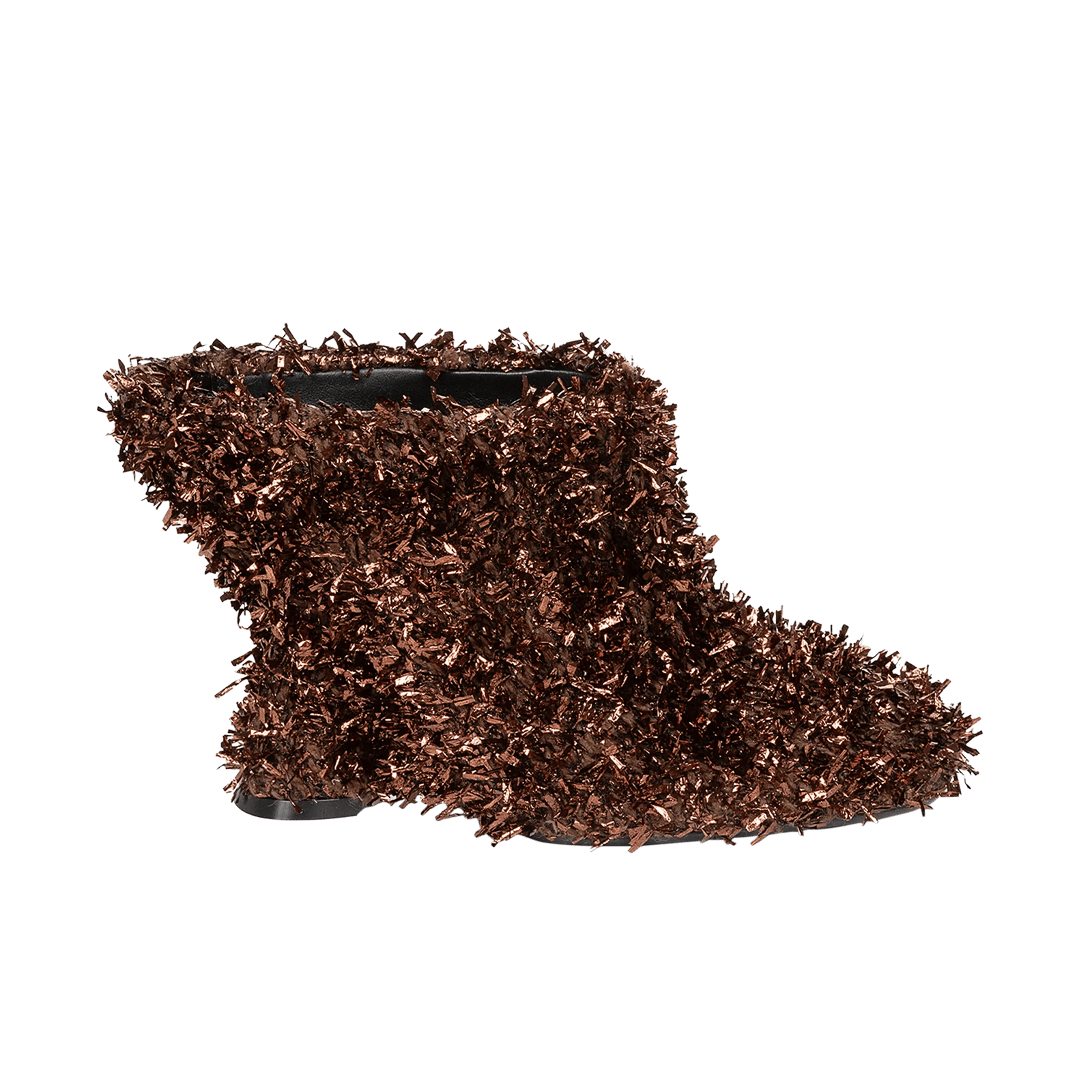 In terms of touch, take a Bottega Veneta napa leather shoulder bag and weave in some space-knit jersey, or slip on some copper tinsel mules that dazzle in the limelight by Dries Van Noten. Adorn the décolletage with semi-precious stones or textural costume jewelry, and bijoux the face with teardrop earrings with approval from Matthieu Blazy. Clash your manicure clasping a hot-pink marabou feather clutch by Erdem, alternatively pump up the volume in a matching ’60s silk-taffeta gown. Anna Dello Russo once said, “Nothing succeeds like excess,” and in a world full of minimalists and carbon copies, it’s time to compose your own unique melody.
