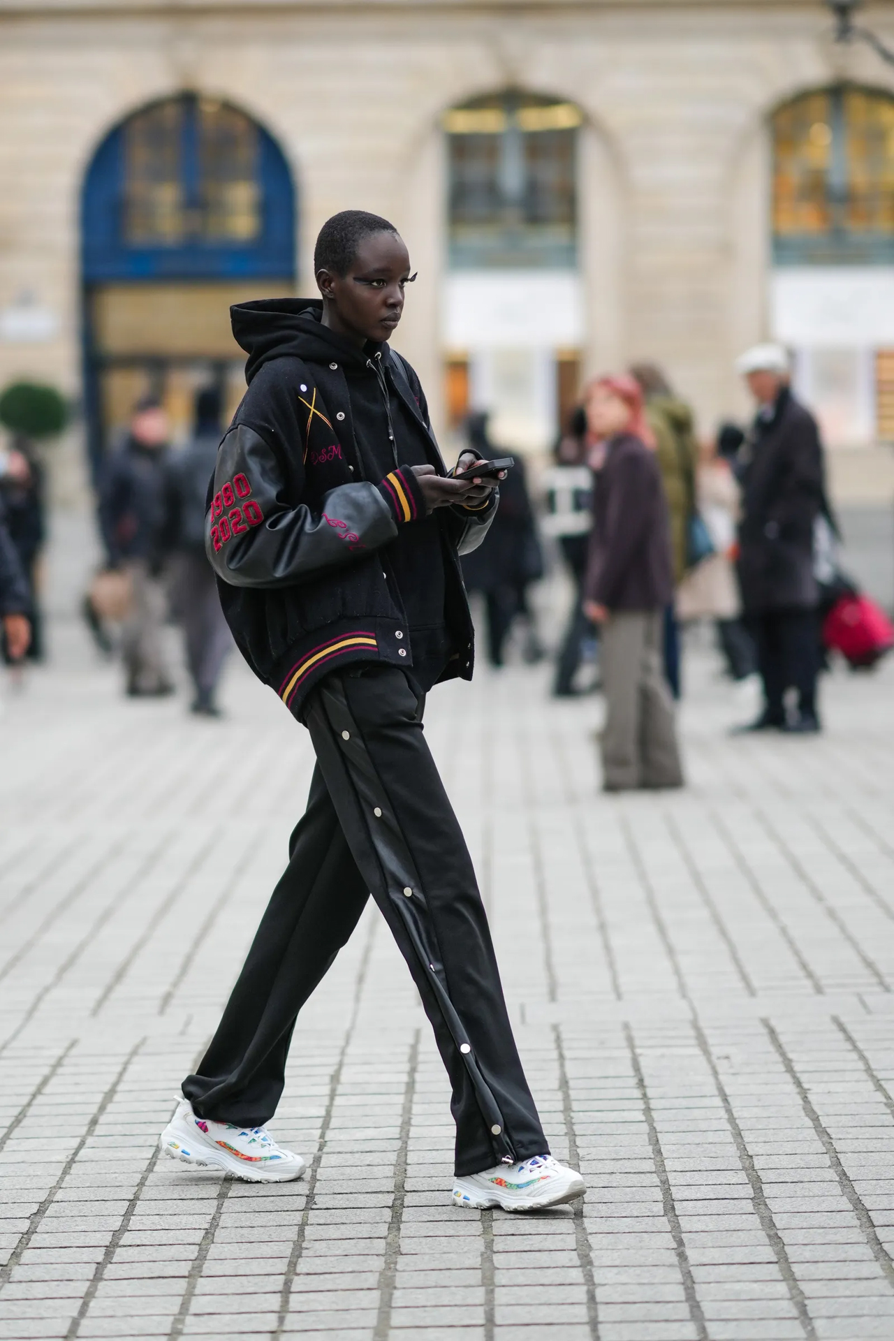 Long before the recent hype, the late Virgil Abloh made eye-catching varsity bombers his signature. The designer’s final autumn/winter 2022 show for Off-White was shown posthumously at Paris Fashion Week, and the team staged an emotional tribute that celebrated Abloh’s ingenious design approach and unique ability to combine streetwear and couture gowns in perfect harmony.