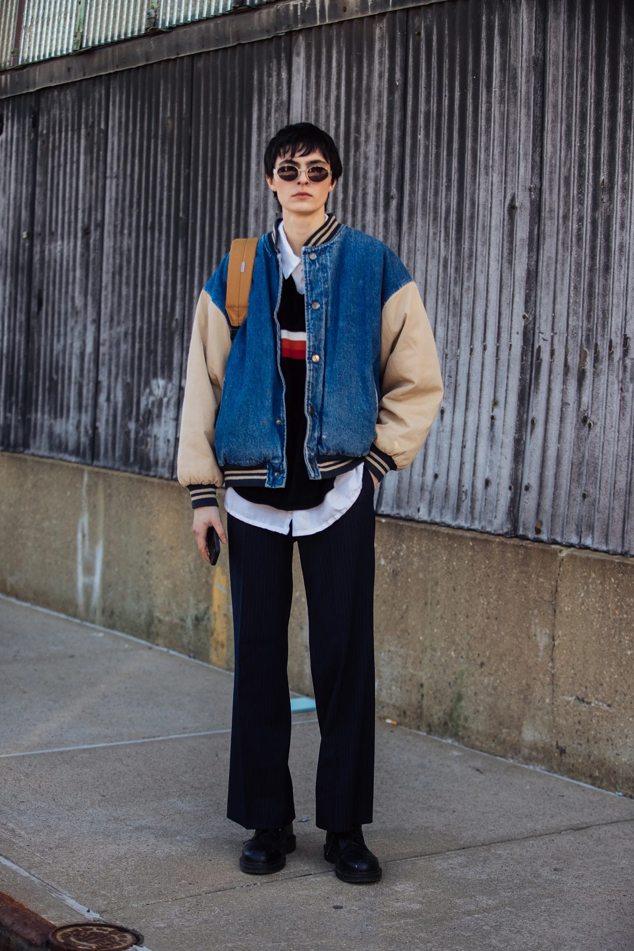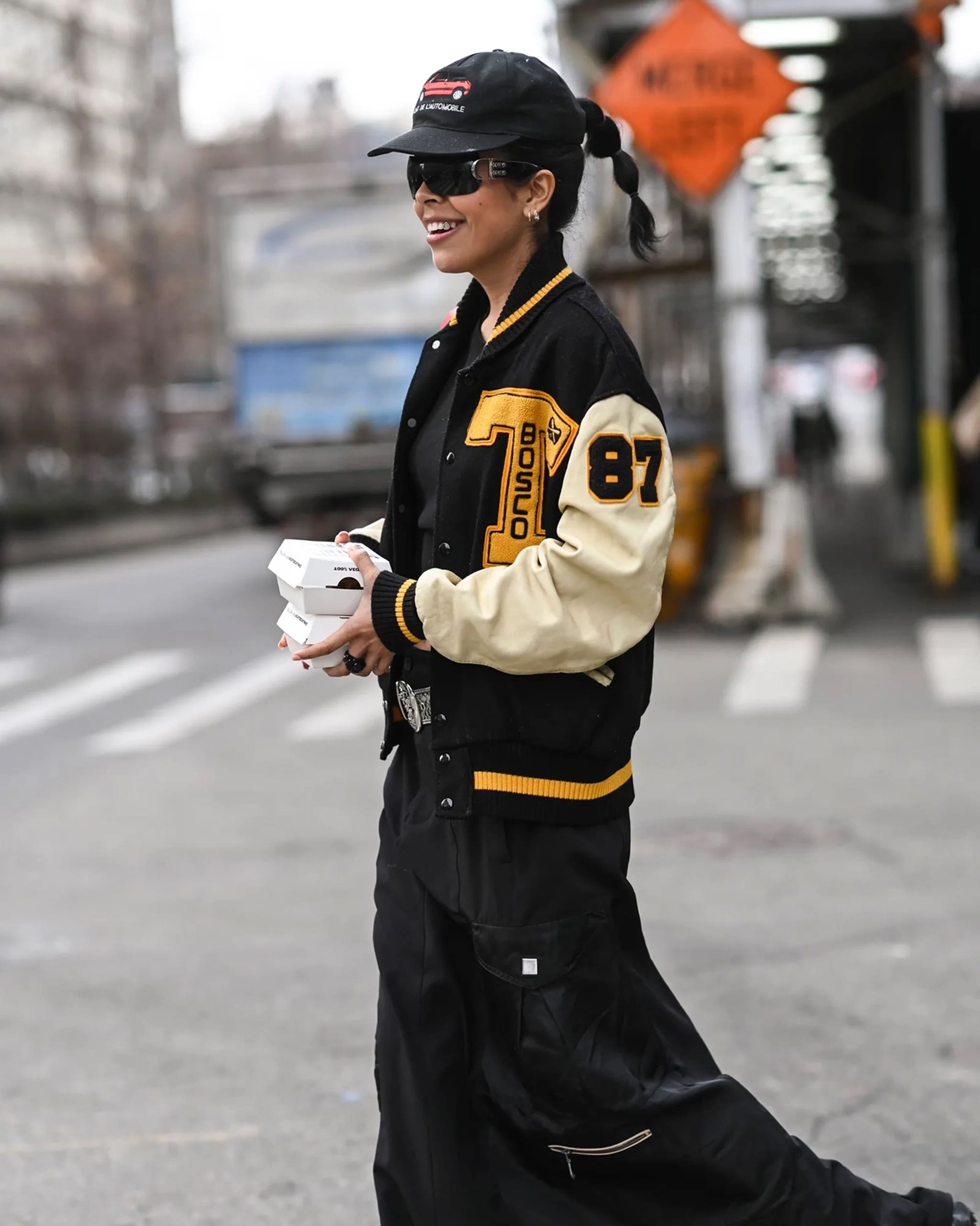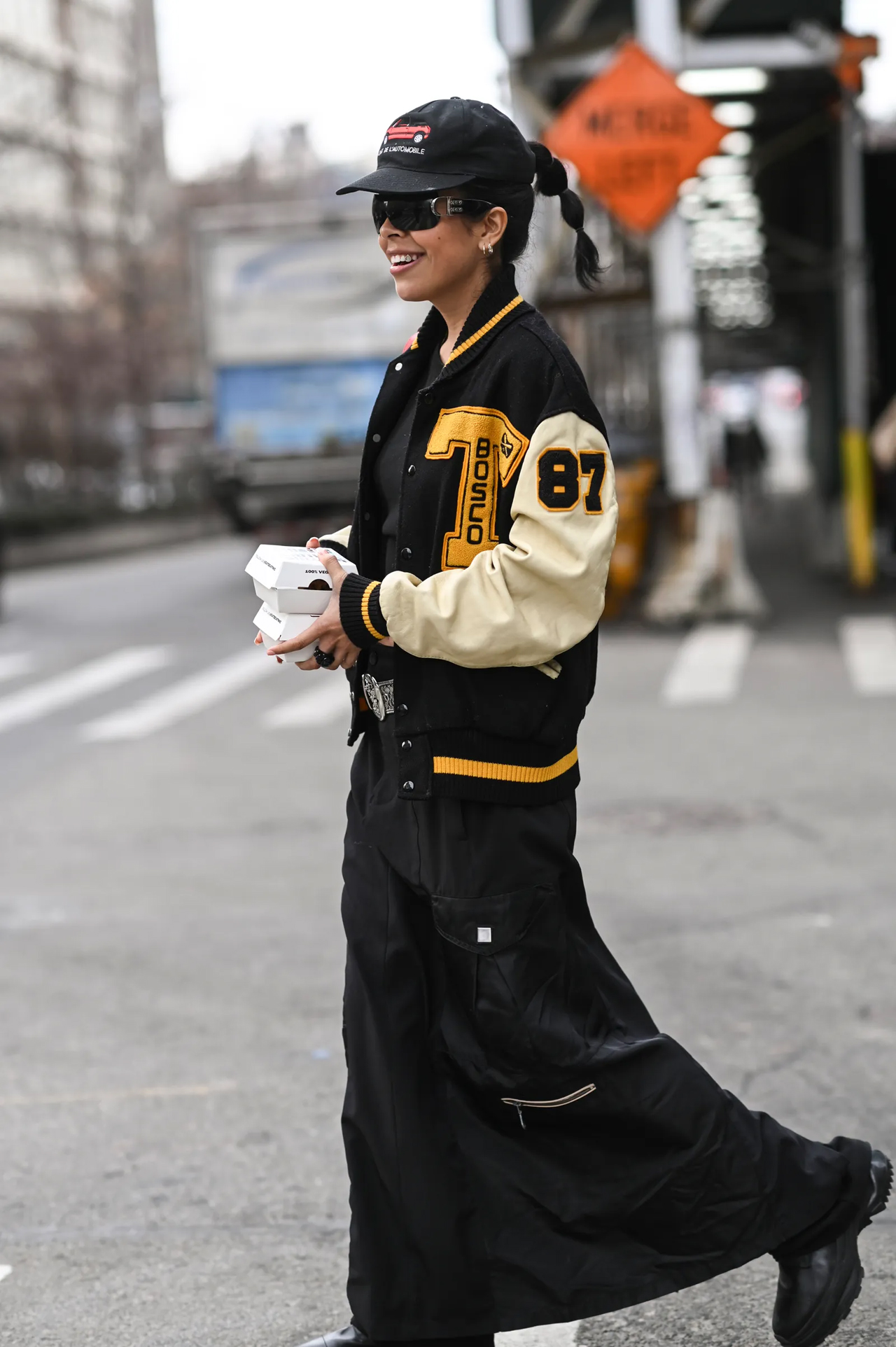 Varsity jackets were out in full force at the autumn/winter 2022 shows in New York, London, Milan and Paris – models and attendees favoured colourful vintage styles, adorned with playful badges and appliqués.