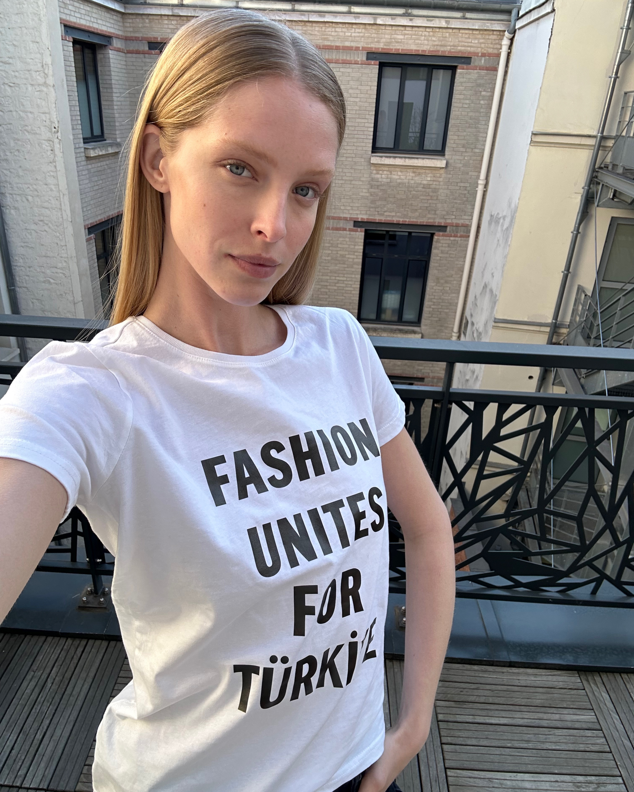 Abby Champion’s selfie with “Fashion Unites for Türkiye” t-shirt