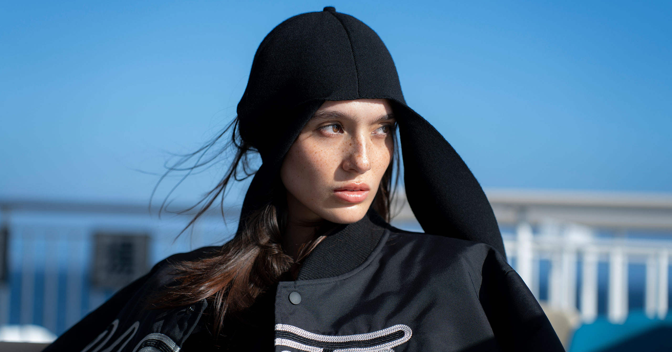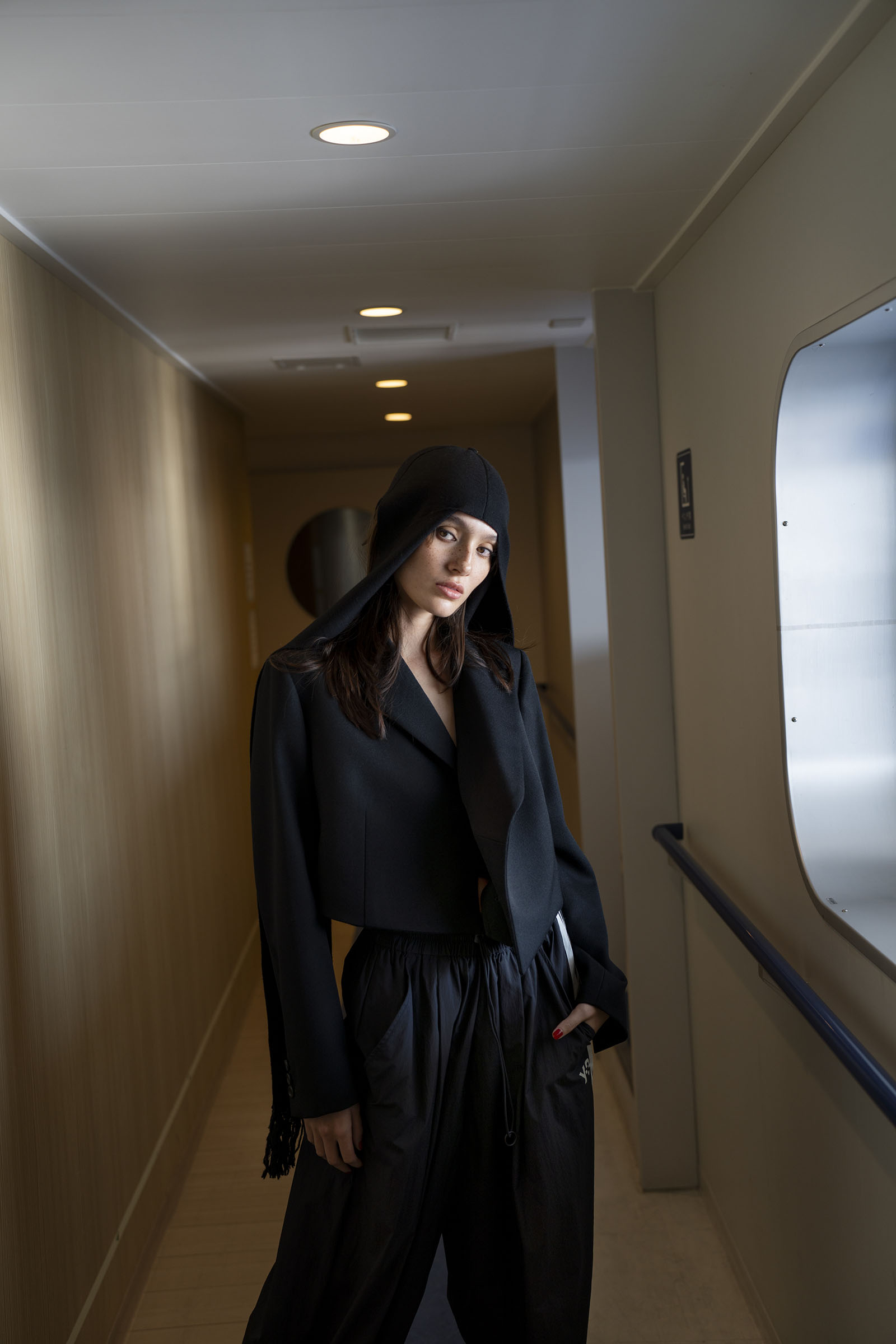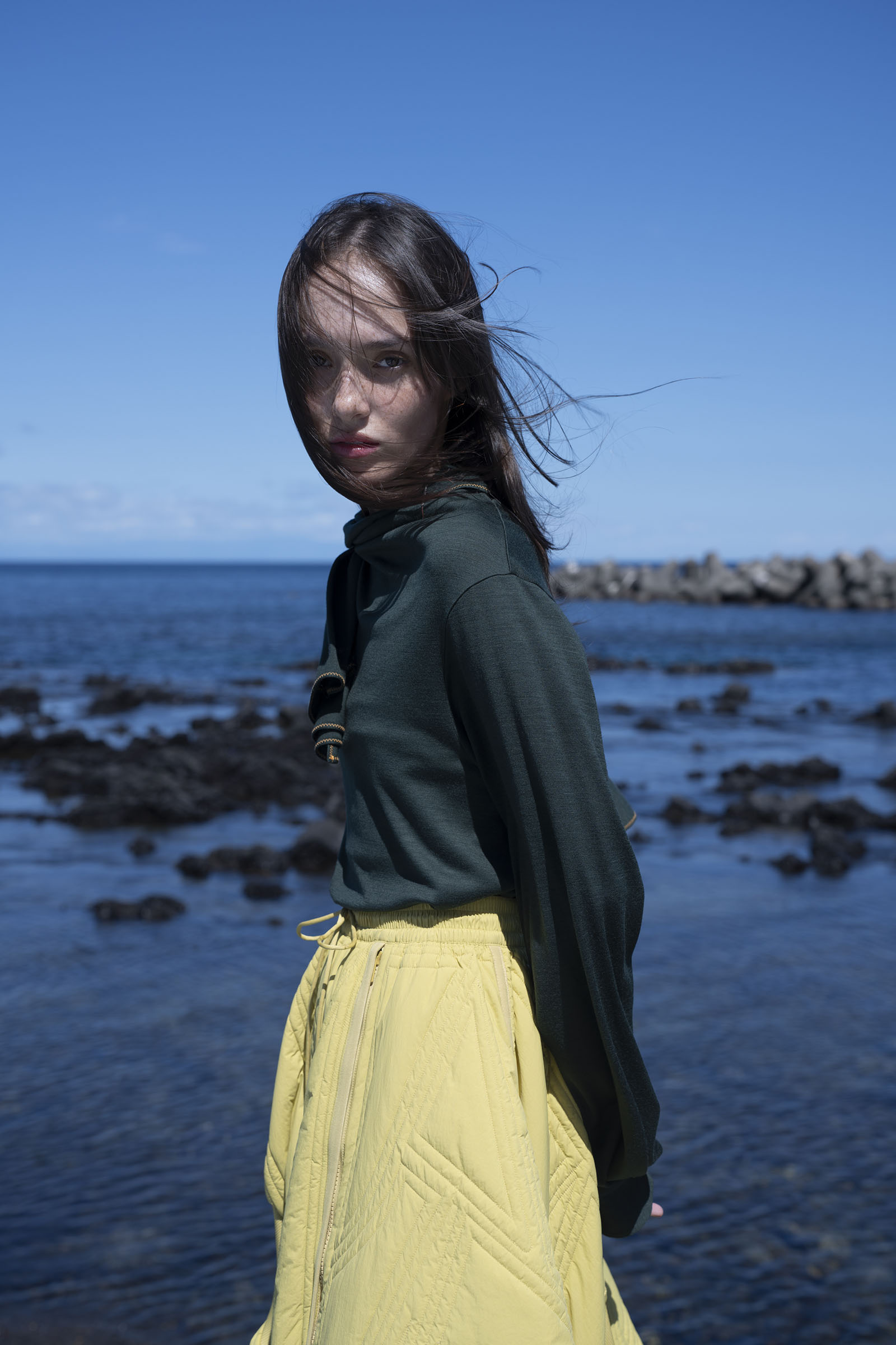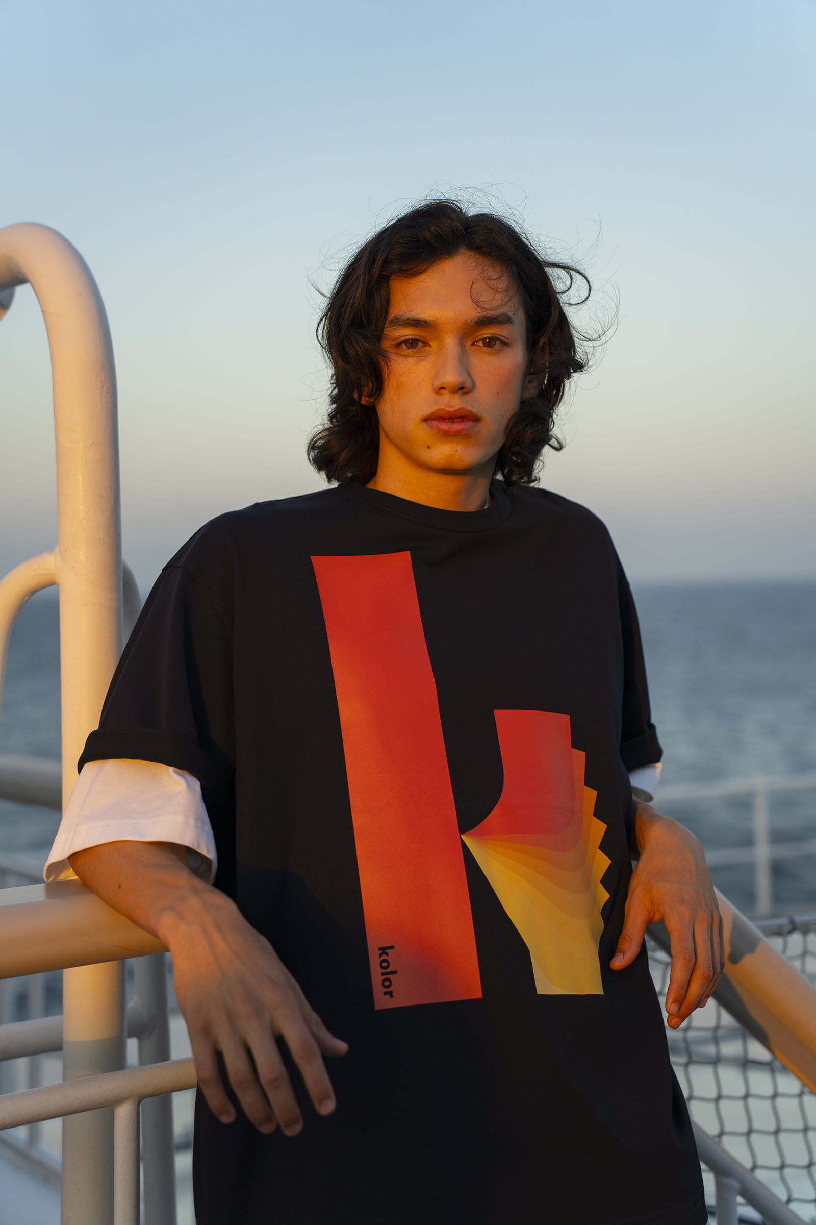 A pair of travelers make the hour-long trip from Tokyo by ferry, passing time in the new nautical: contemporary streetwear paired with experimental tailoring.