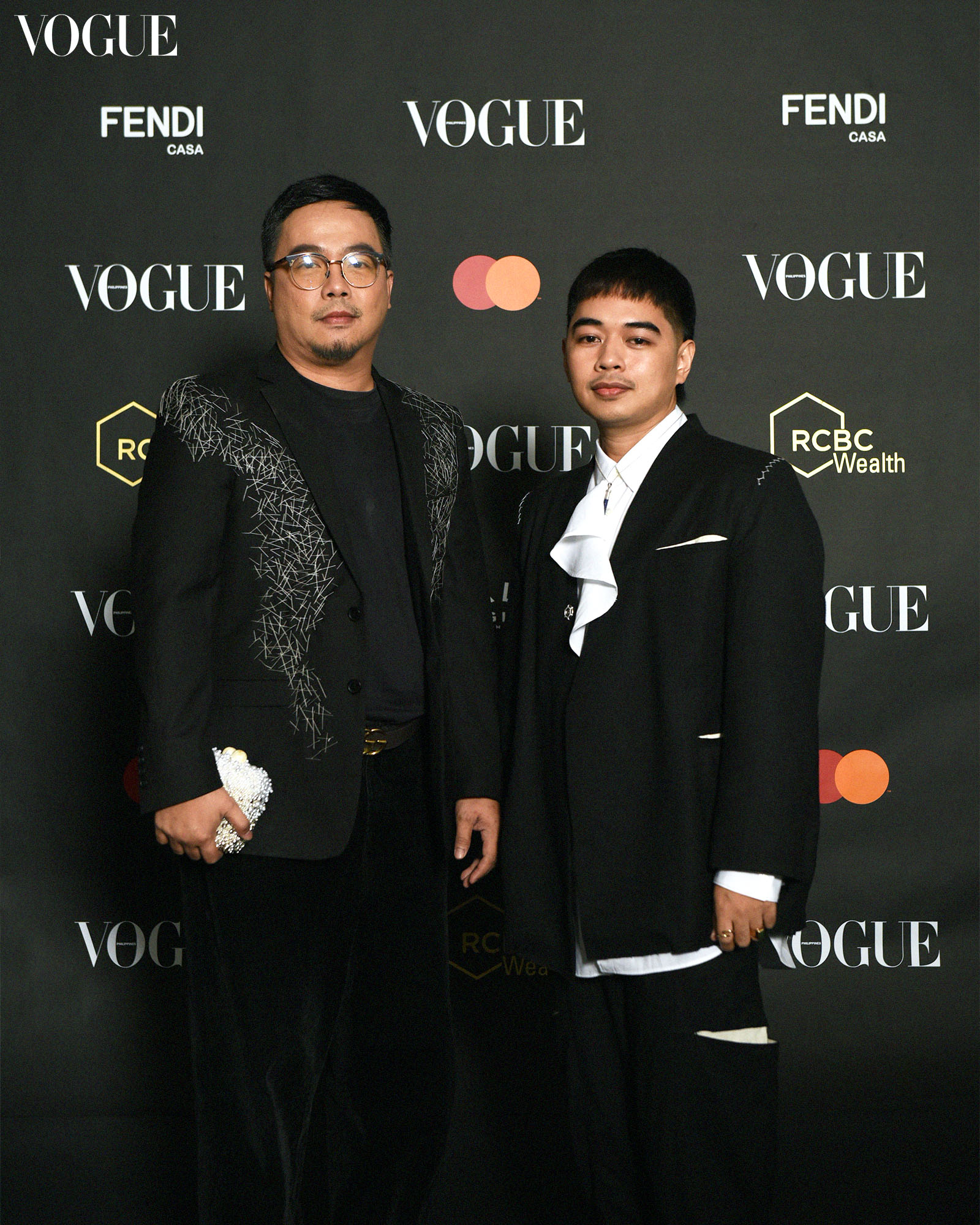 Last Tuesday night, designers Ken Samudio and Seph Bagasao hit the red carpet together, celebrating their collaborative piece featured in the Anniversary Gala’s “Common Threads: Re/Creating Fashion” exhibit. They wore traditional suit silhouettes, albeit playfully interpolated by white stitching—dispersed in strokes across Samudio’s jacket and in a zigzag pattern along the back and shoulders on Bagasao’s.