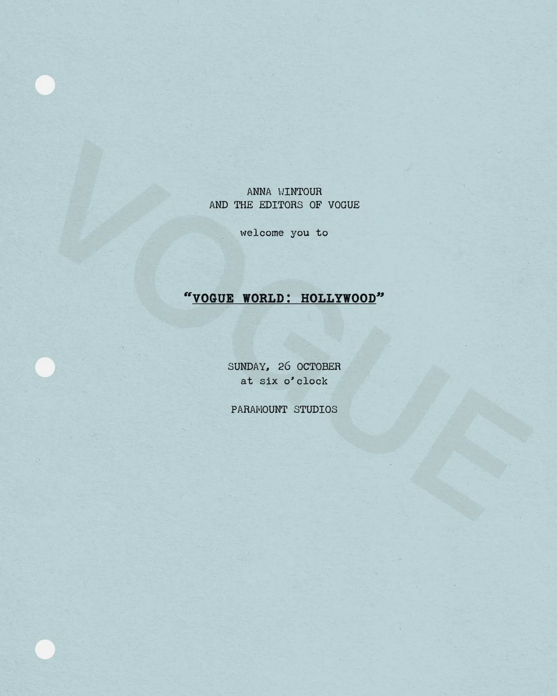 Vogue World: Hollywood—a sprawling celebration of fashion and film—took over the Paramount Studios lot with a parade of major models, major fashion, and lots of movie magic. For an act-by-act breakdown of the action, read the event’s program below.