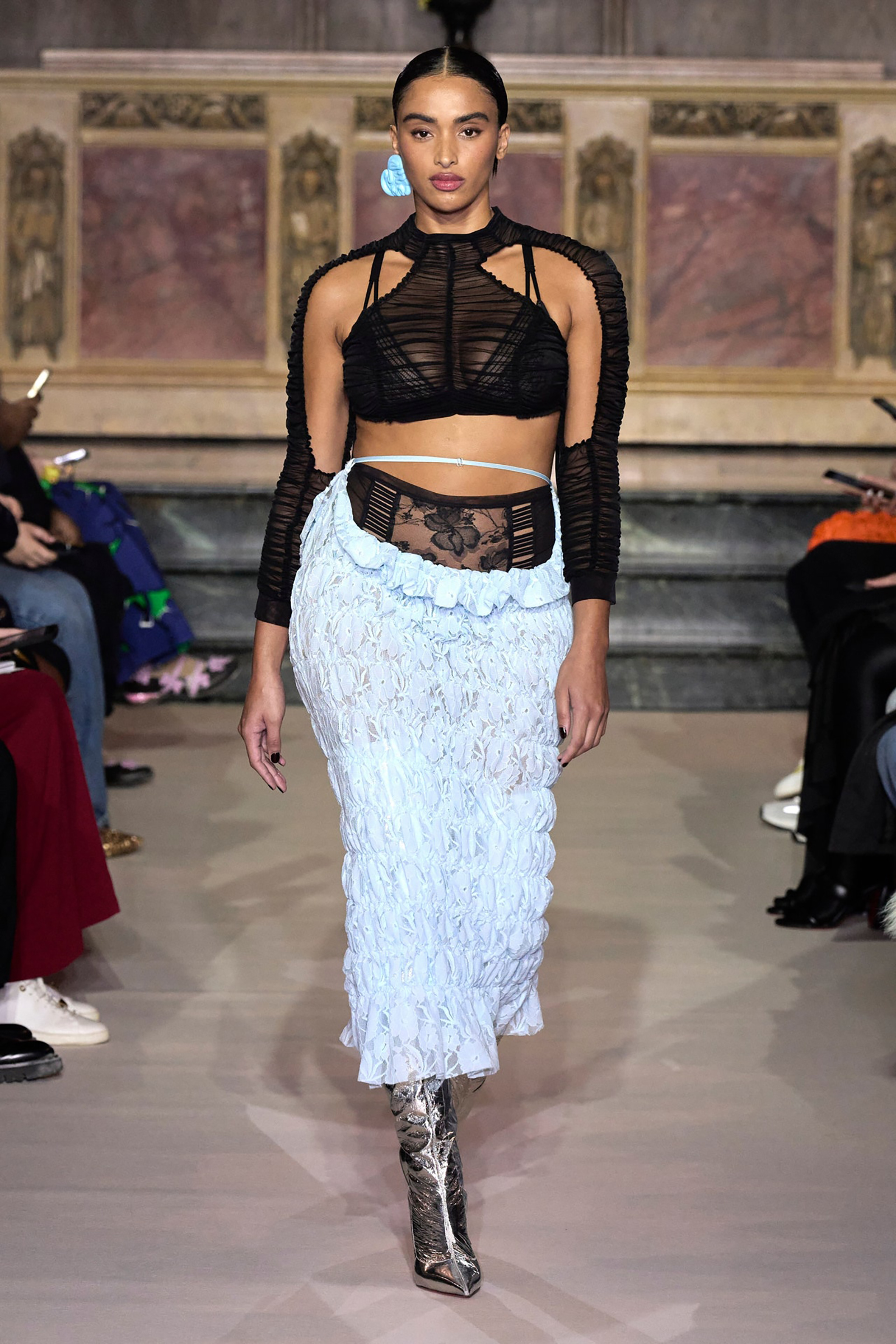 Other tributes were paid at Vivienne Westwood, where Andreas Kronthaler staged an eclectic show in honor of his late wife following her death on December 29, and at Paco Rabanne, scene of creative director Julien Dossena’s glittering ode ode to the house founder, who passed away in February aged 88. Kronthaler opened the show with a headshot of Westwood emblazoned on a T-shirt, and closed it with Westwood’s granddaughter Cora Corré in a corseted bridal bodysuit. “I thought of her in everything I did,” he said backstage.