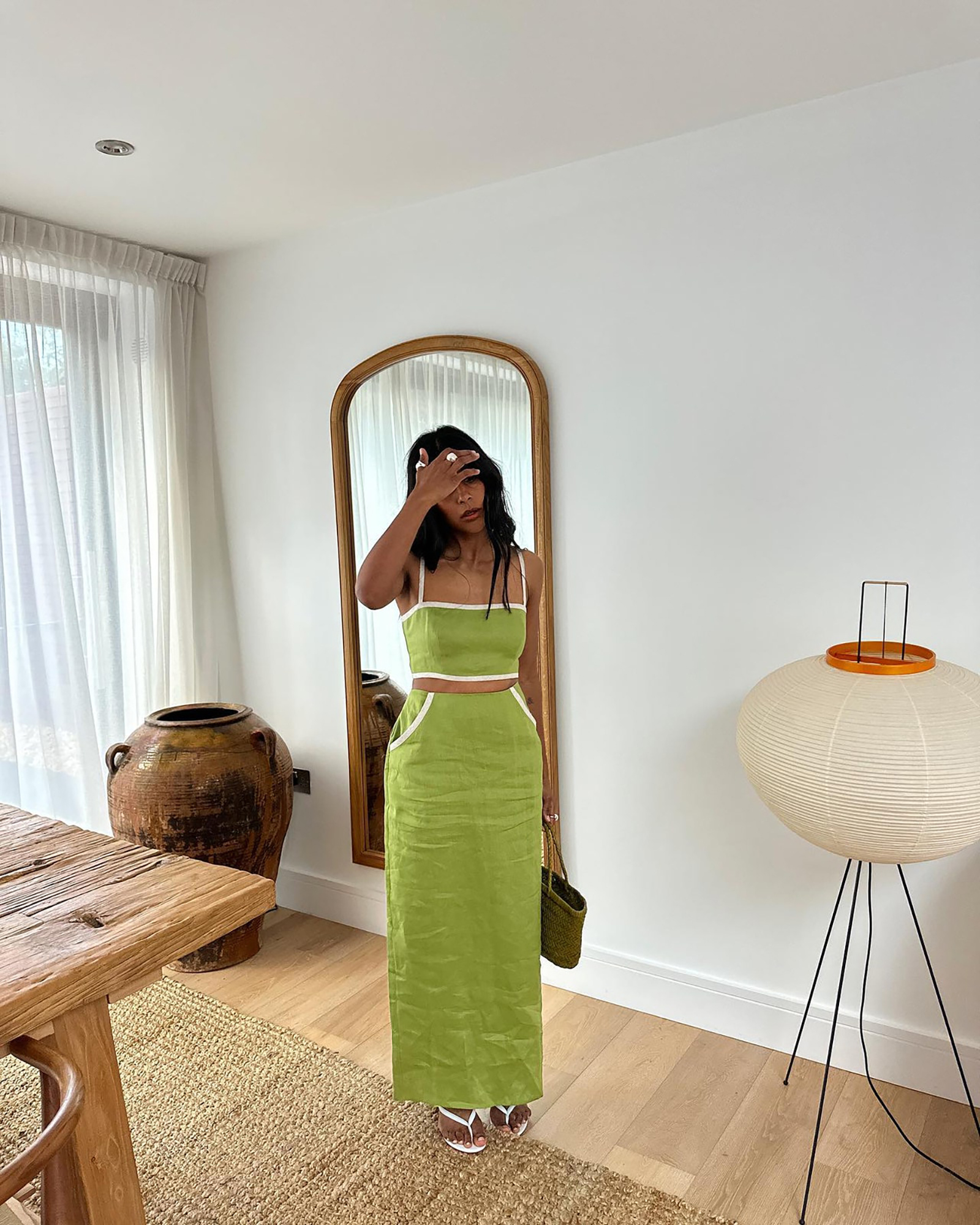 The striped co-ord + raffia bag