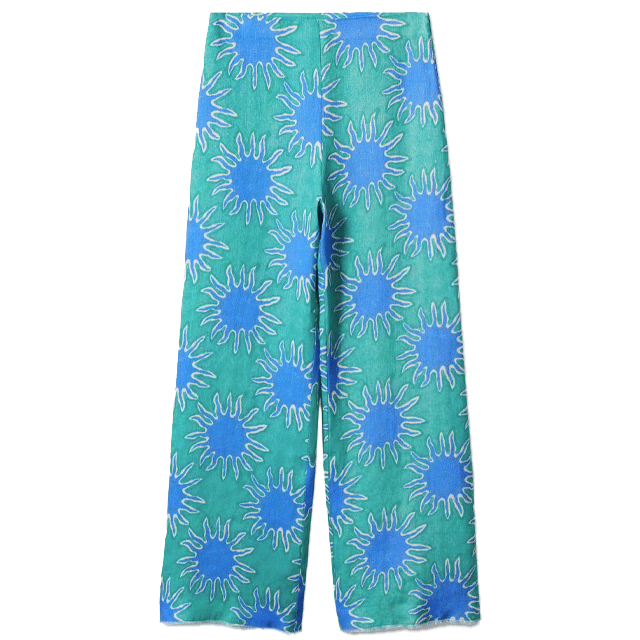 The statement swimsuit + printed trousers