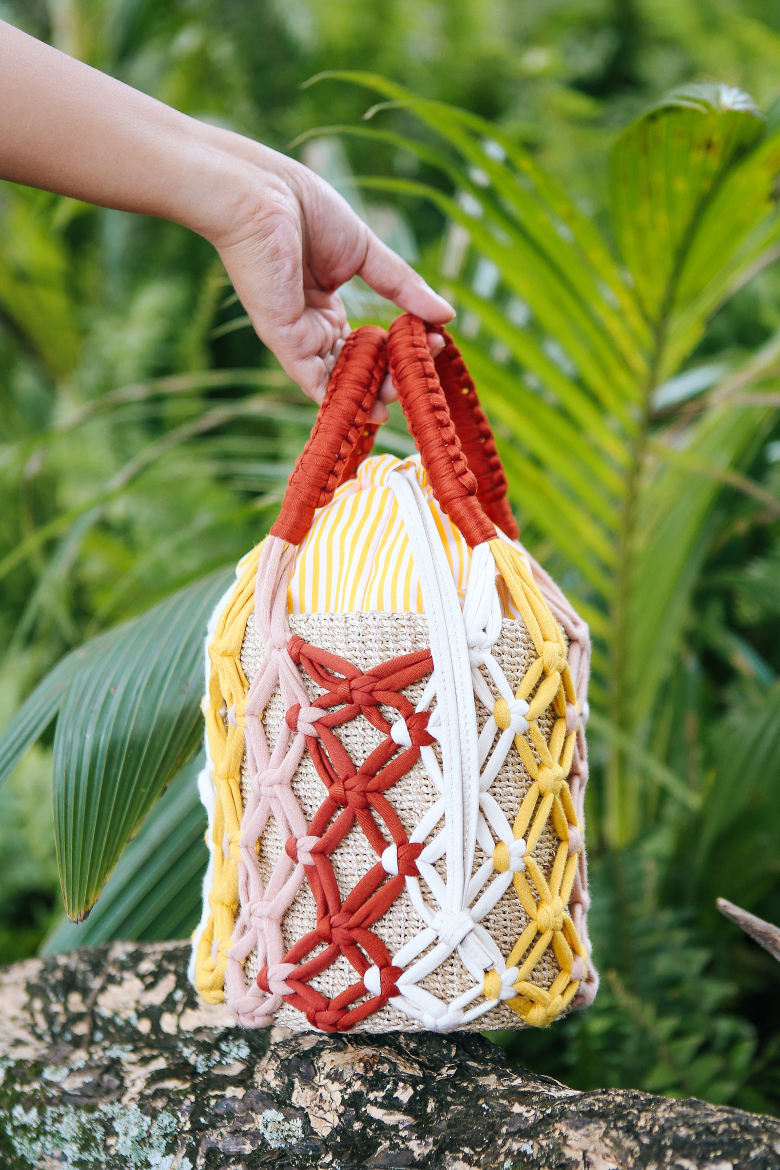 The Rafe x Rags2Riches line is described as using a “new style of weaving” to customers, which makes use of macrame techniques; a style that has its origins in the 13th century with close ties to DIY culture. “This collaboration was all about bringing it all back to my childhood,” Totengco says. “The macrame idea was really a throwback to my mother’s love for hanging plants. I remember her going to the garden every morning to talk to her other ‘children’.”
