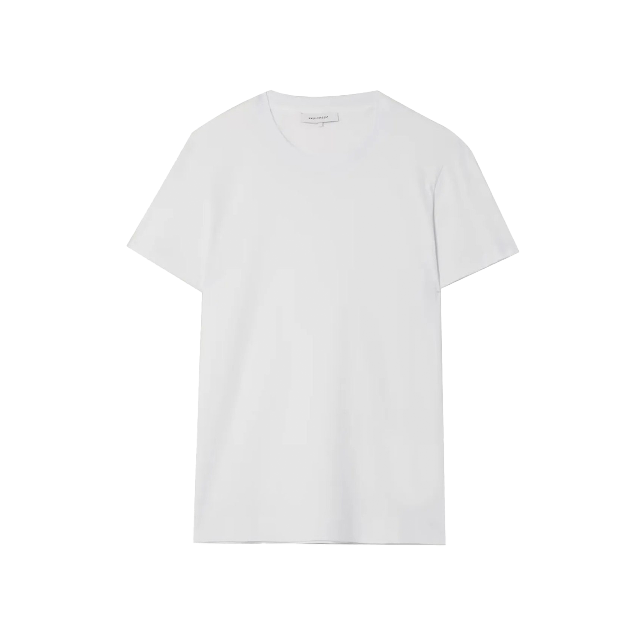 Oh, the versatility of a plain but perfect white T-shirt! When it comes to styling the closet classic, anything goes, but if we had to choose, we love to dress ours up alongside a tailored trouser and minimalist heels.