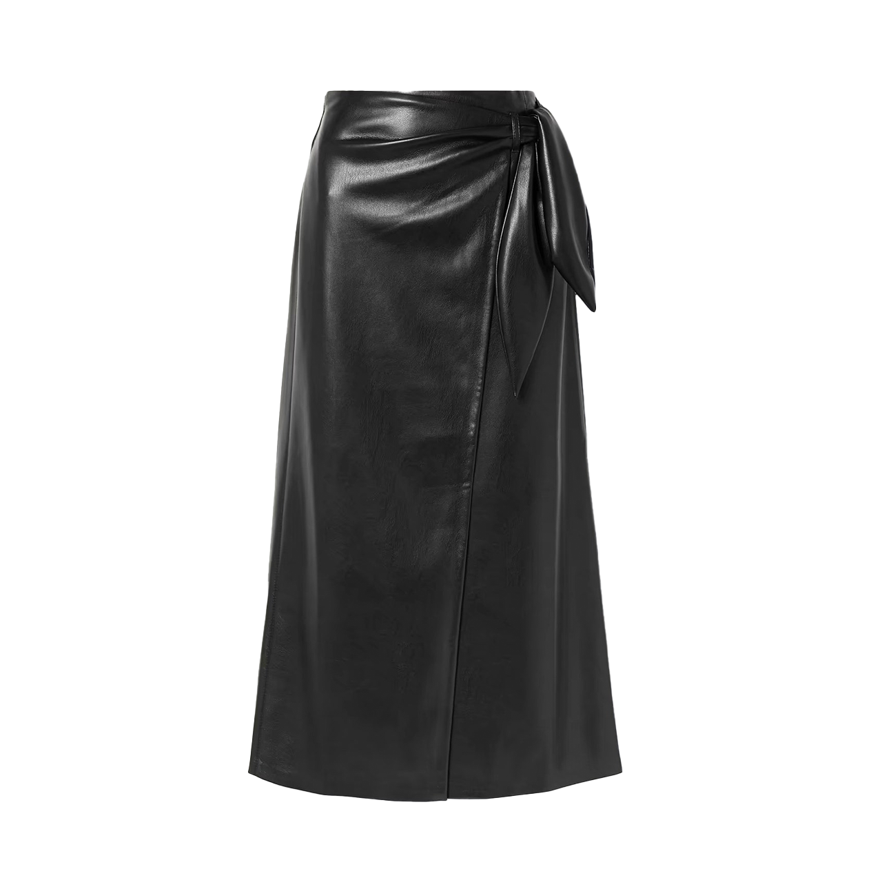 A sleek leather midi skirt is one trend we’ve seen transcend from the runway to the streets in total style. Like a classic wrap skirt, but with a modern twist, Nanushka’s Ama leather midi is a favorite amongst the fashion darlings.