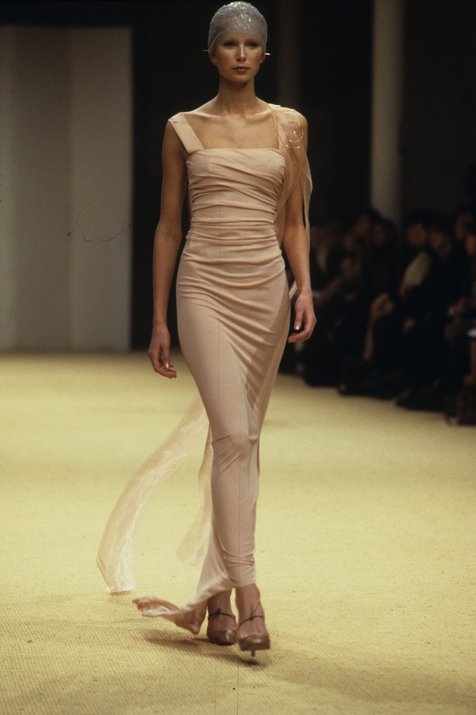 Here we have another look from Chanel’s spring/summer 1999 couture collection, and the silhouette is the perfect embodiment of the “quiet luxury” trend that is dominating this year. It’s a wedding dress that doesn’t look too much like a wedding dress.