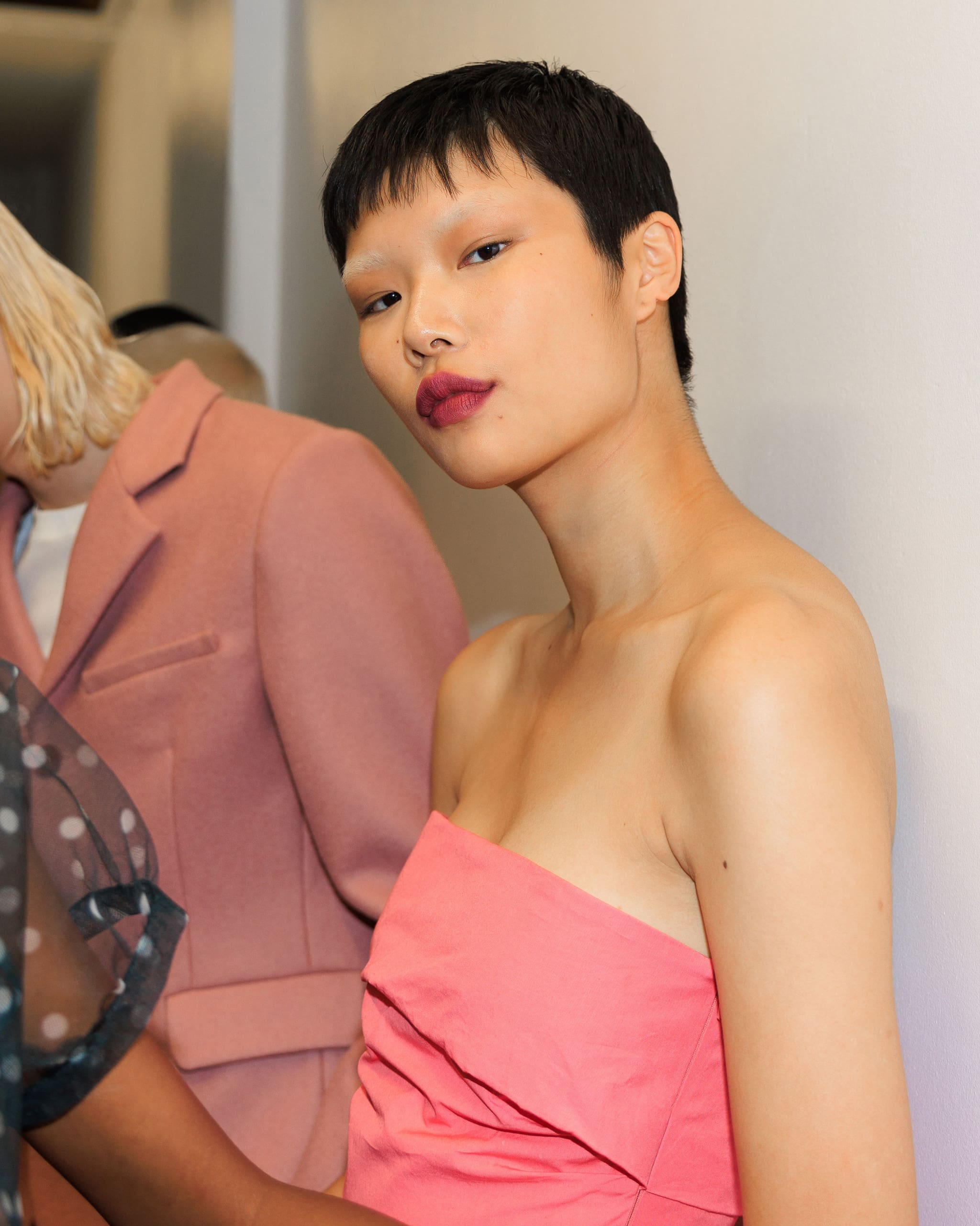 We’ll always love our statement reds, mauves, and nudes, but now’s the time for our staple sheers. Bare lips are all the rage, featuring a moisturizing subdued shine brought to you by the unfussy plain balm. Christopher Kane, Nensi Dojaka, and Standing Ground opt for slicked-back tresses to complete the look, pointing all focus towards the facial features.