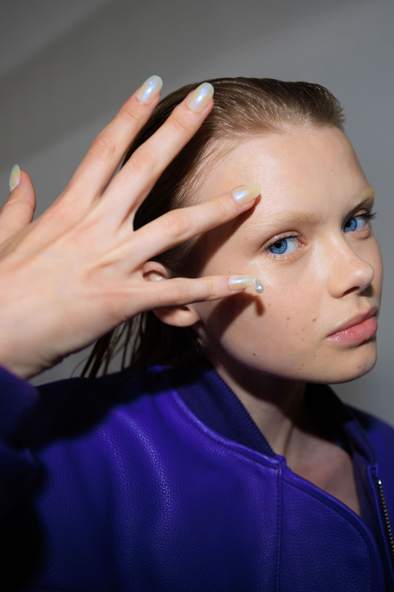 A metallic or iridescent touch—that’s what makes the difference between a basic and funky set of nails. Halpern, Karoline Vitto, and Nensi Dojaka dramatize the chrome polish with extended lengths, bringing subtle bite to an otherwise clean beauty look. Our conclusion? As tedious as a manicure session seems, the sartorial gains make it absolutely worth it.