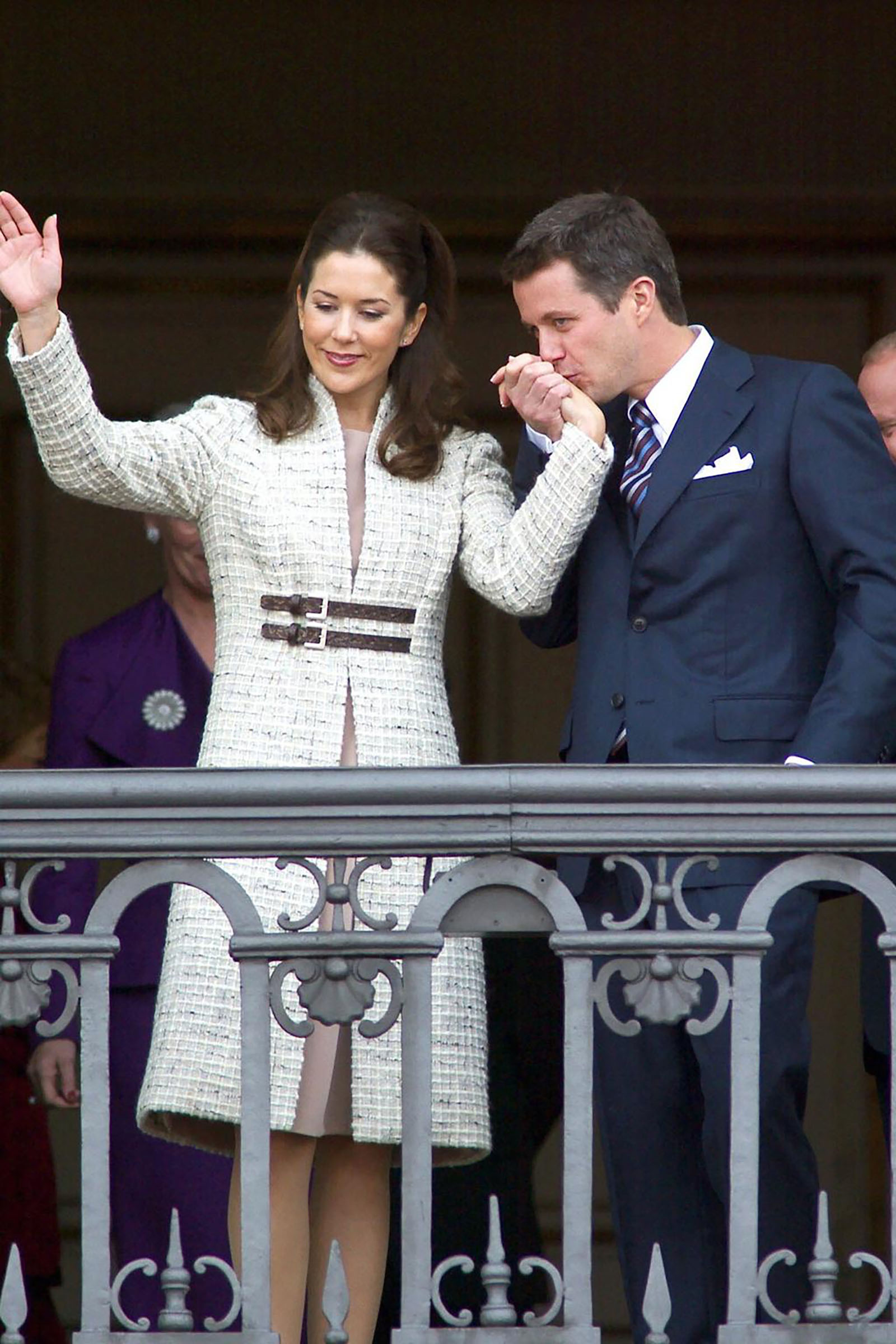 Princess Mary and Prince Frederik celebrating their engagement in 2003.