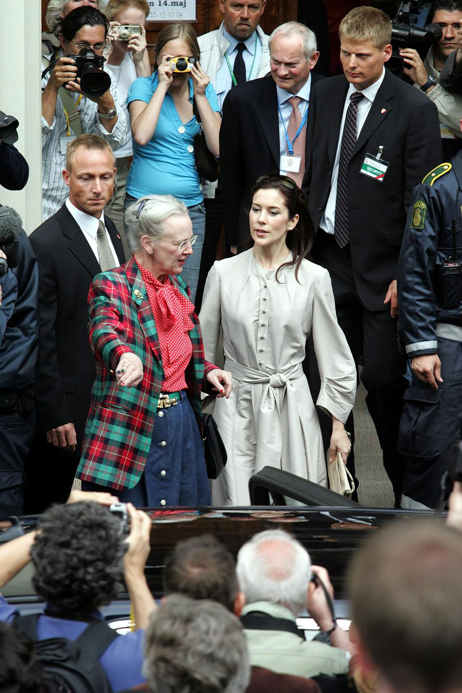 Following a wedding rehearsal in 2004, Princess Mary with her mother-in-law to be, Queen Margrethe.