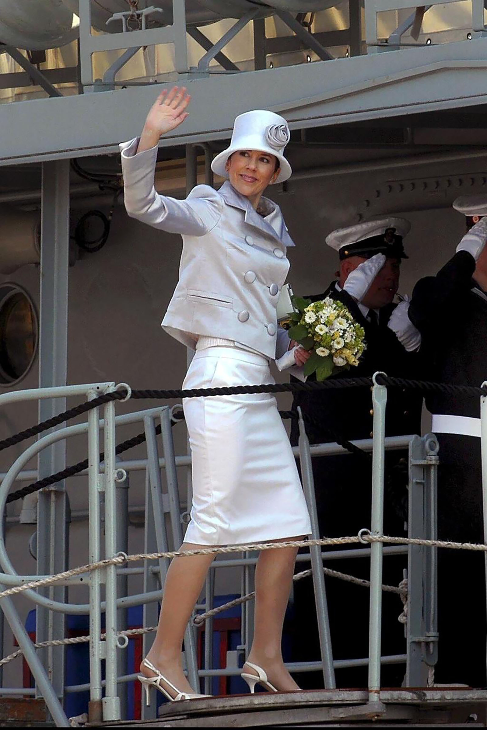 In Copenhagen’s Harbour prior to a royal ‘sea dual’ between Denmark and Australia, as part of her wedding celebrations, in 2004.