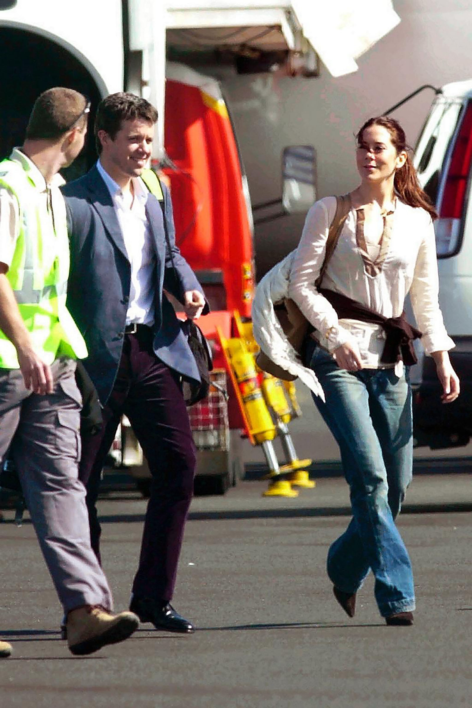 Princess Mary arriving in Hobart, Tasmania, in 2004, wearing jeans and pointed pumps.