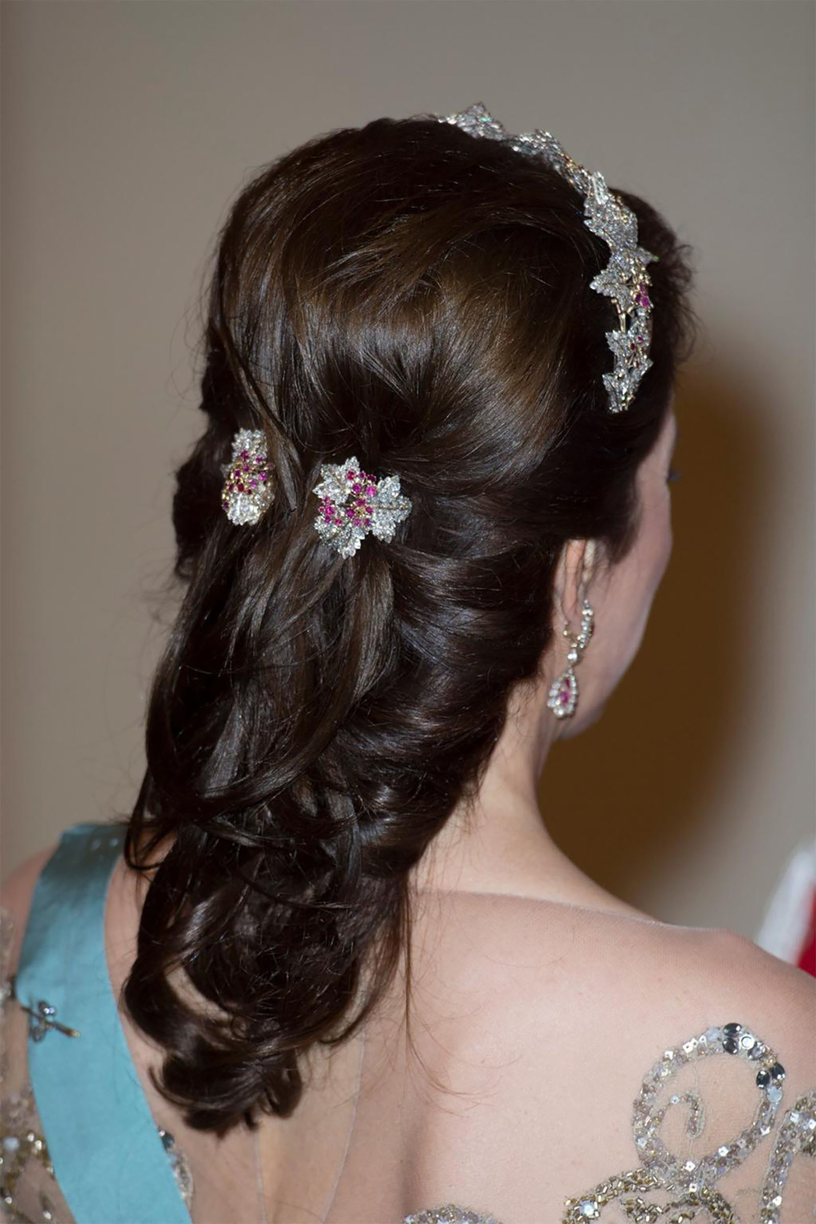 Image credit: Getty Images9/44Stunning hair details on Princess Mary during a gala dinner for Queen Margrethe’s 75th birthday at Christianborg Palace in 2015.