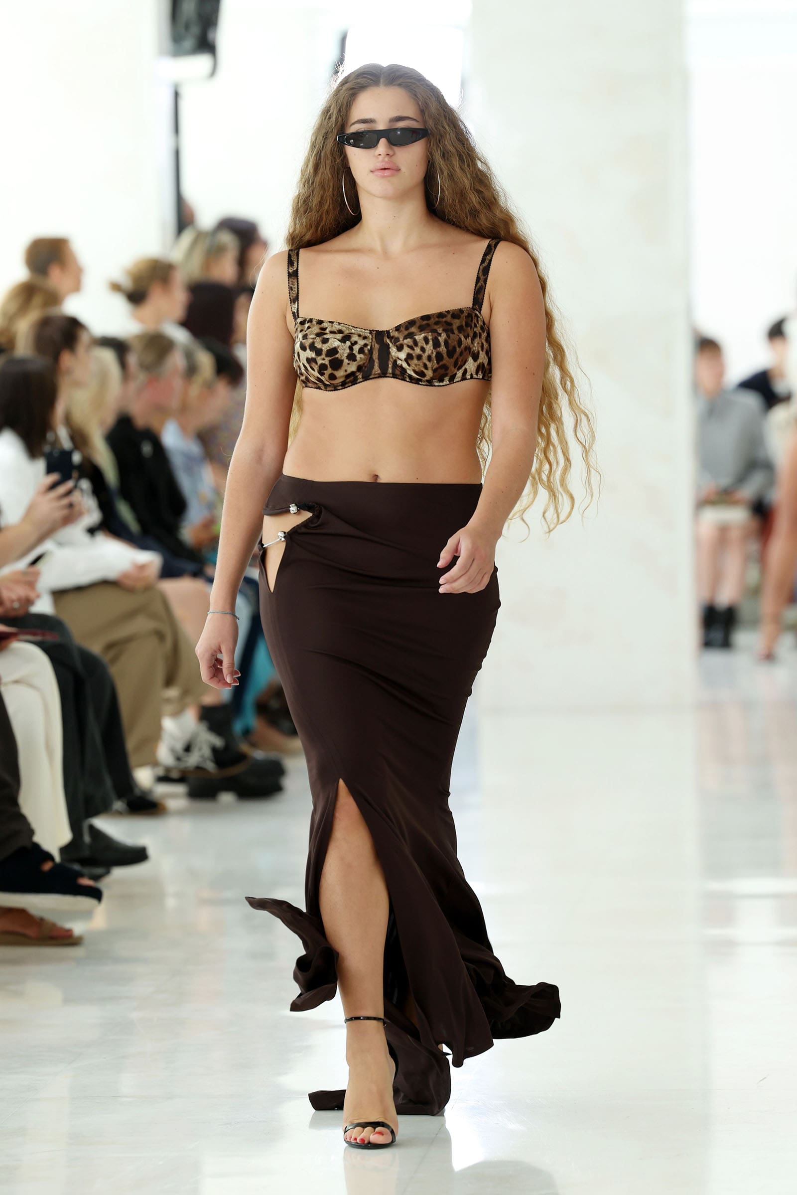 Staged in the Dolce & Gabbana Casa building on Via Giuseppe Broggi, the show featured a body-positive cast. “We wanted a full curve cast. We didn’t want to have ‘sample size’ models,” Vitto explained. “We started from a size 10 [and went up] to a size 24. We had to fly a few girls in from London. My studio is based there, so in order to make these pieces we needed to start fitting some of the girls in London. We started much earlier than most brands.”