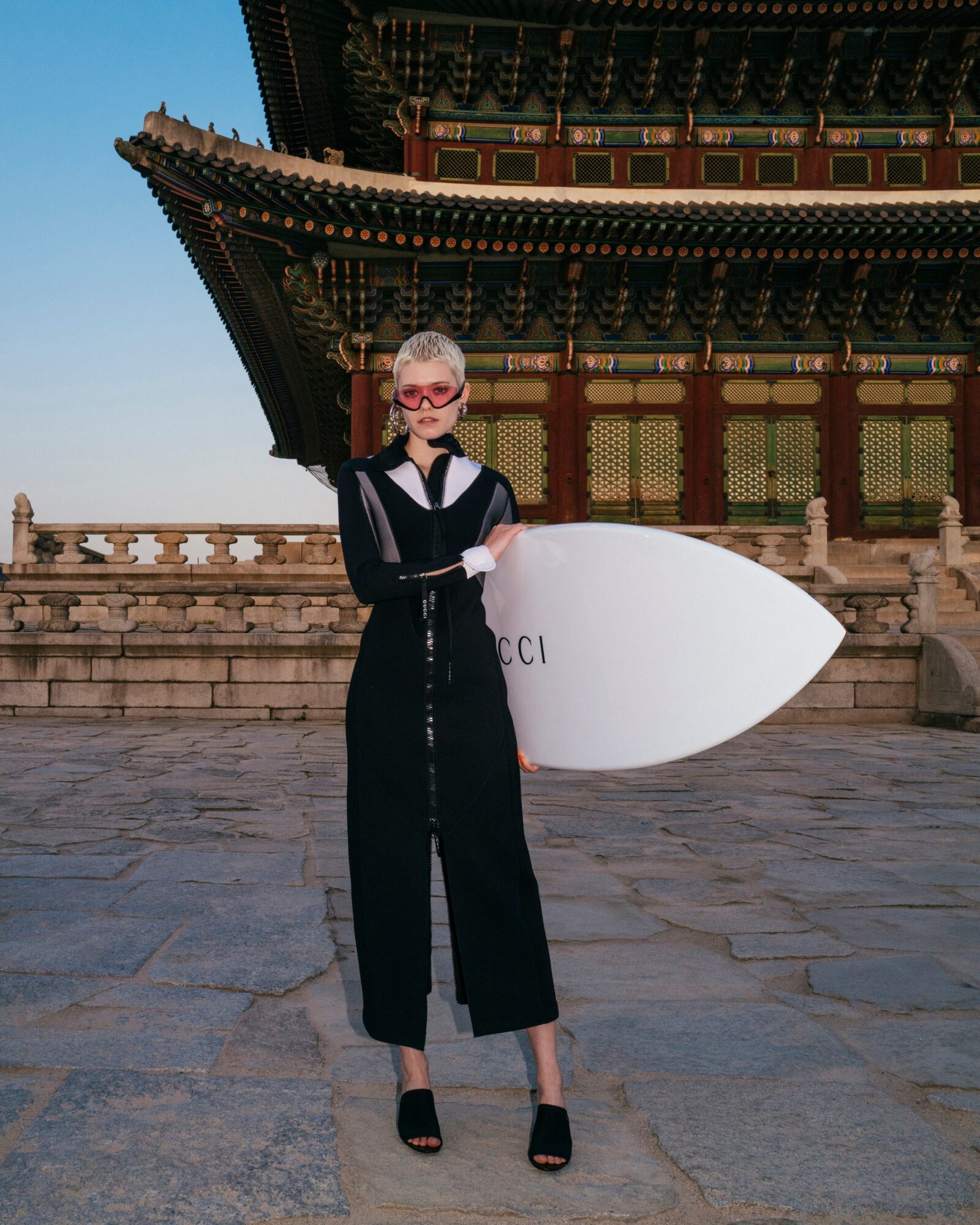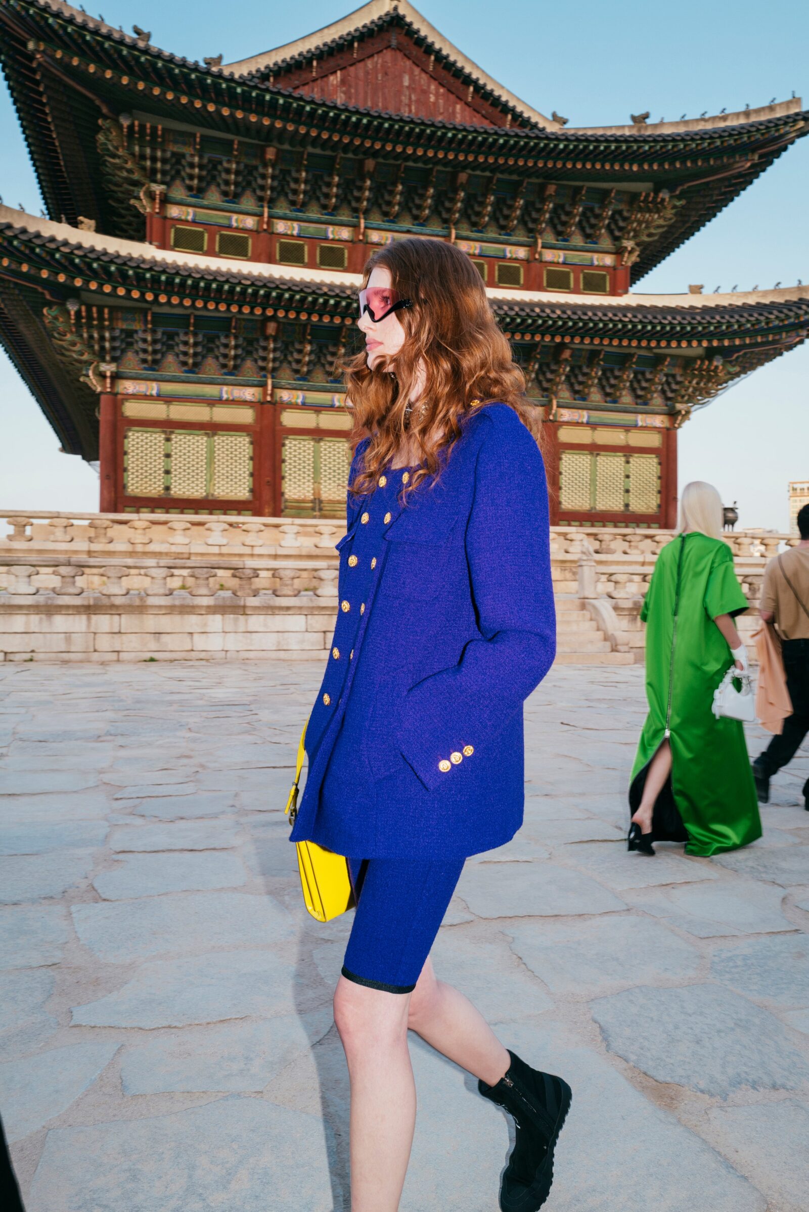 Gucci touched down in Seoul, the fashion world’s favorite rising city, for its resort show this week. Local icons, including Sora Choi and Xumeen were joined by supermodels Karen Elson and Tasha Tilberg at the brand’s takeover of the historic Gyeongbokgung Palace. Featuring futuristic designer skateboards, neoprene bike shorts, and holographic sets, it’s the Gucci design team’s last collection before creative director Sabato De Sarno takes the helm. Scroll through Young Chul Kim’s best backstage photos here.