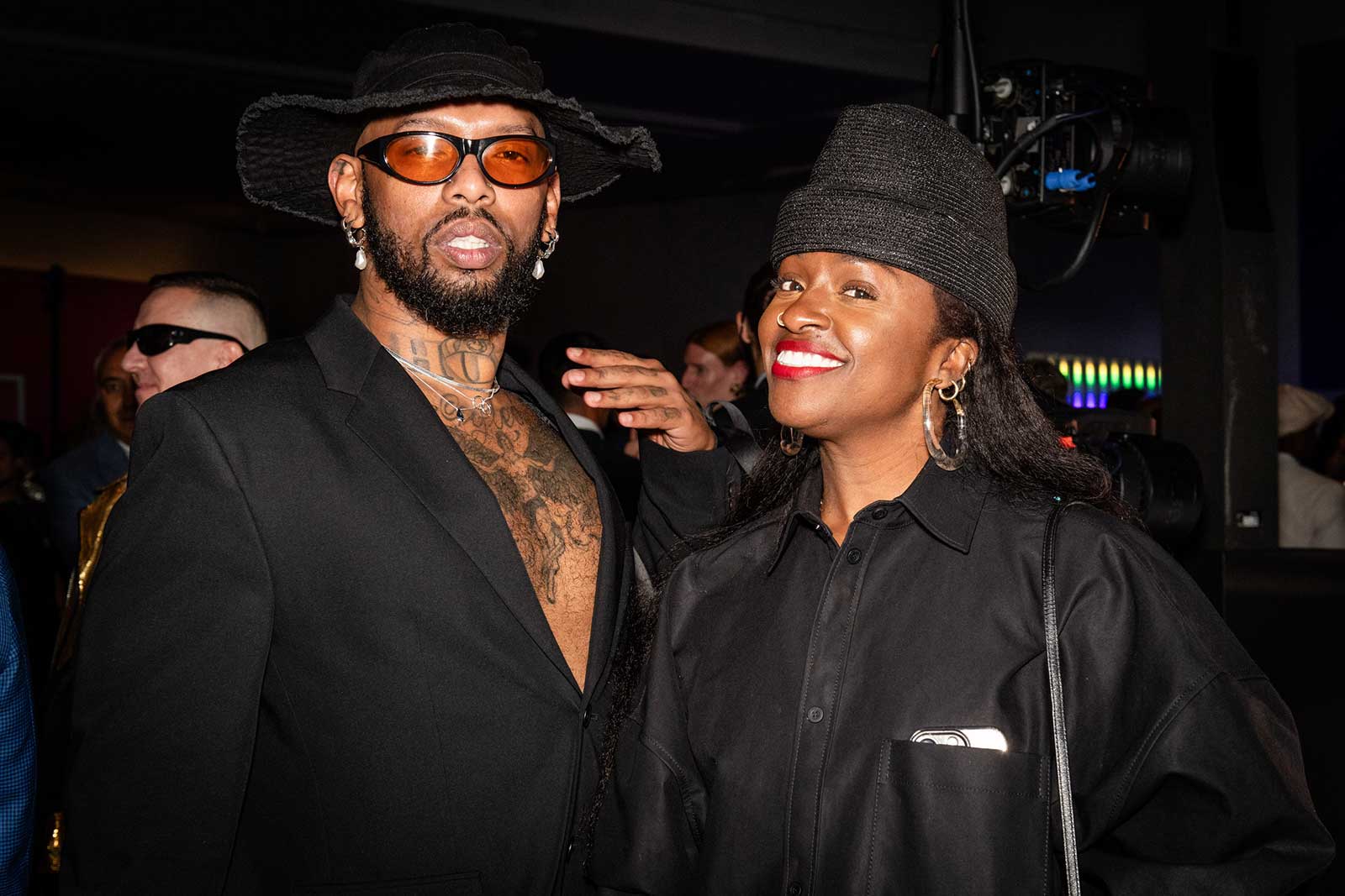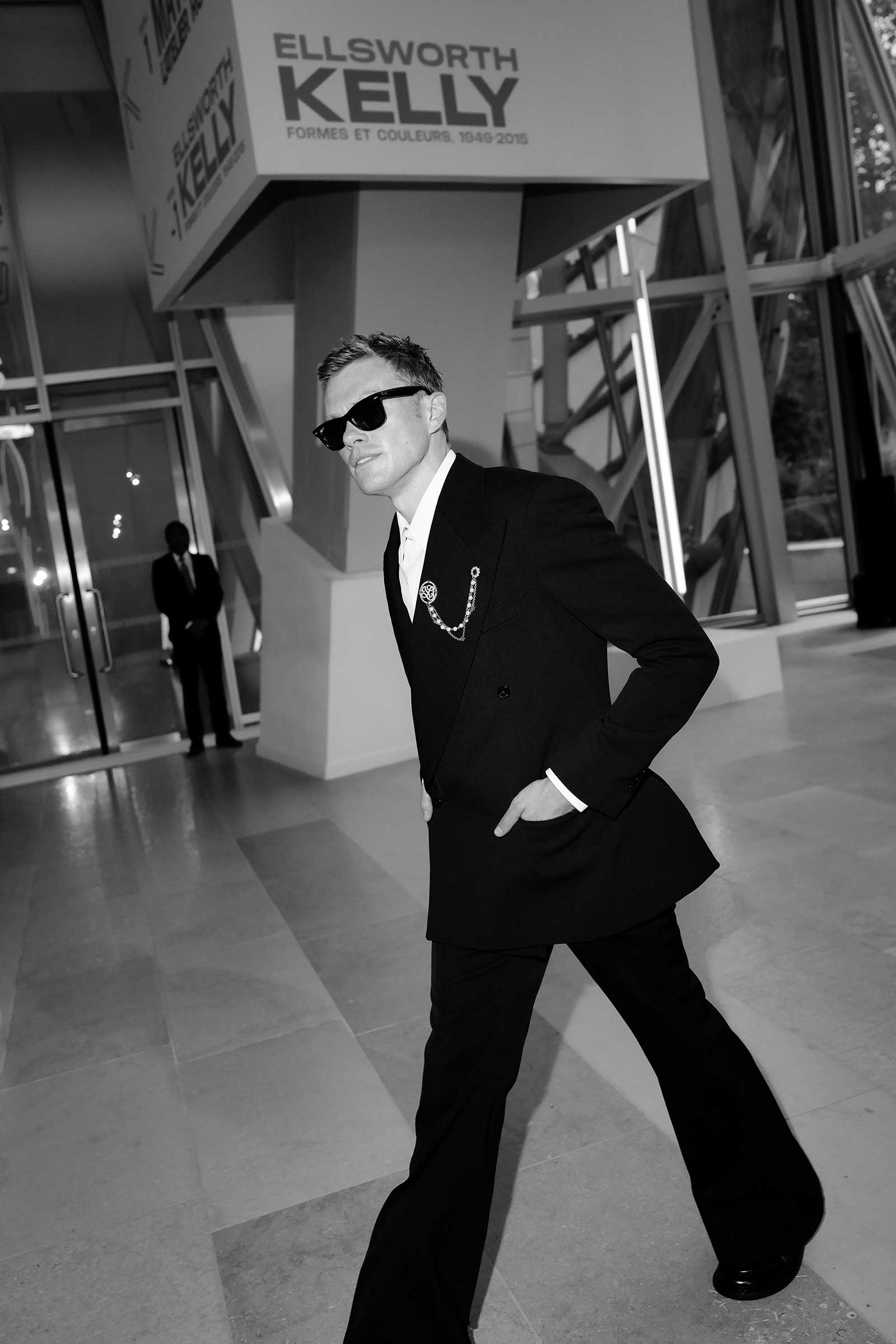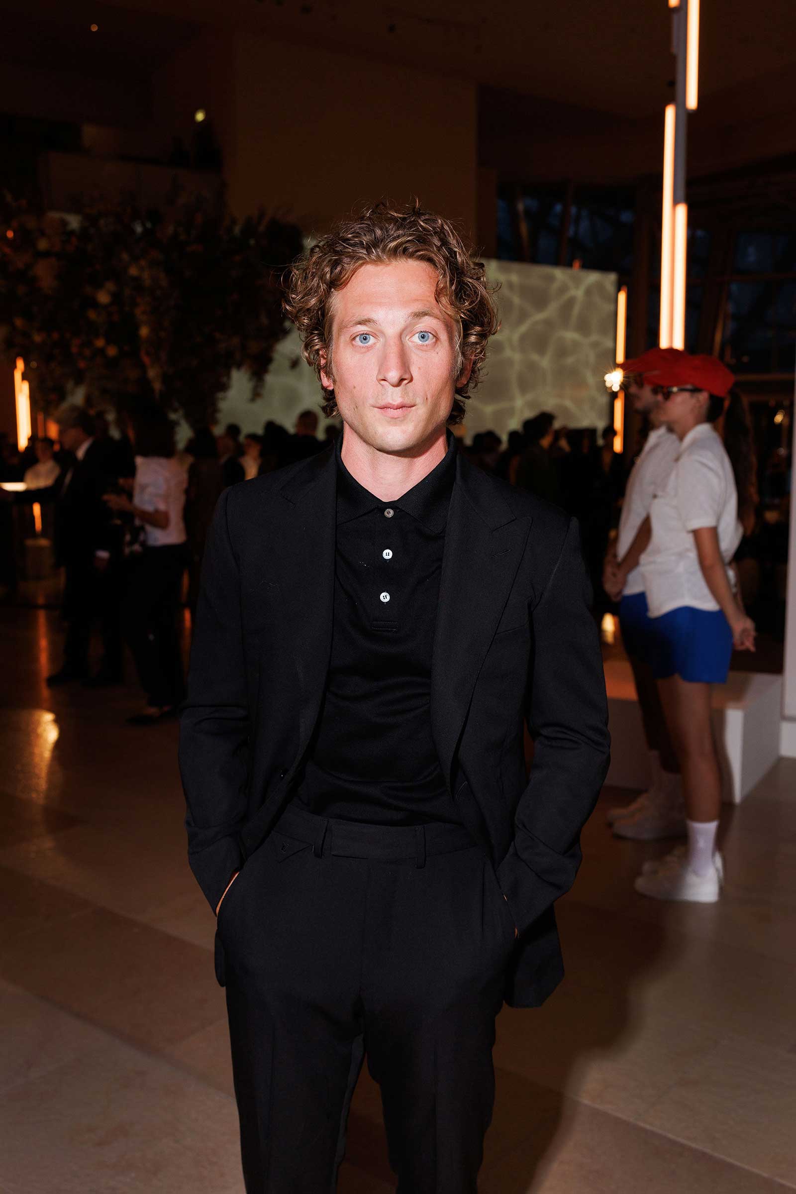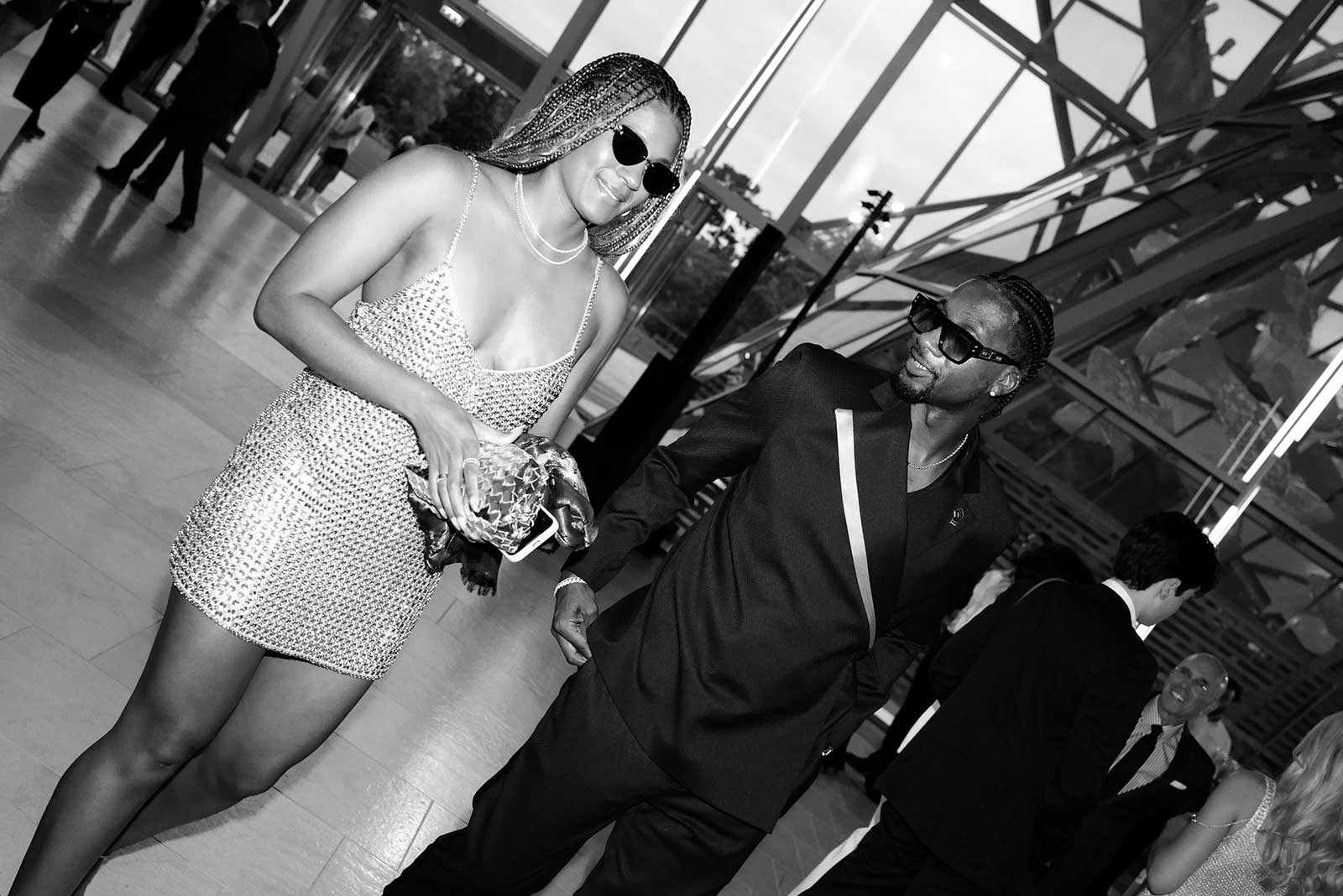 In lieu of a red carpet, guests walked a three-lane track to a playlist of hip-hop hits. A few headed straight to the cocktail hour to nosh on crispy langoustines and green vegetable tartlets by Michelin-starred chef Jean Imbert; others, including David and Lauren Bush Lauren (dressed in head-to-toe Team USA regalia, of course) and tuxedo-clad NBA star Tyrese Haliburton joined a short queue for the Inside Out photo booth—created by French street artist and photographer JR to print poster-size black and white images.