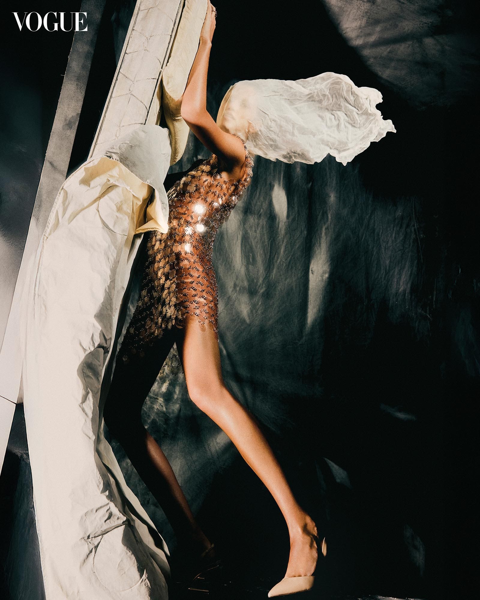 Slip into a whimsical reverie fueled by glittering Chanel chains, paper dresses, windswept masks, and Rabanne paillettes.