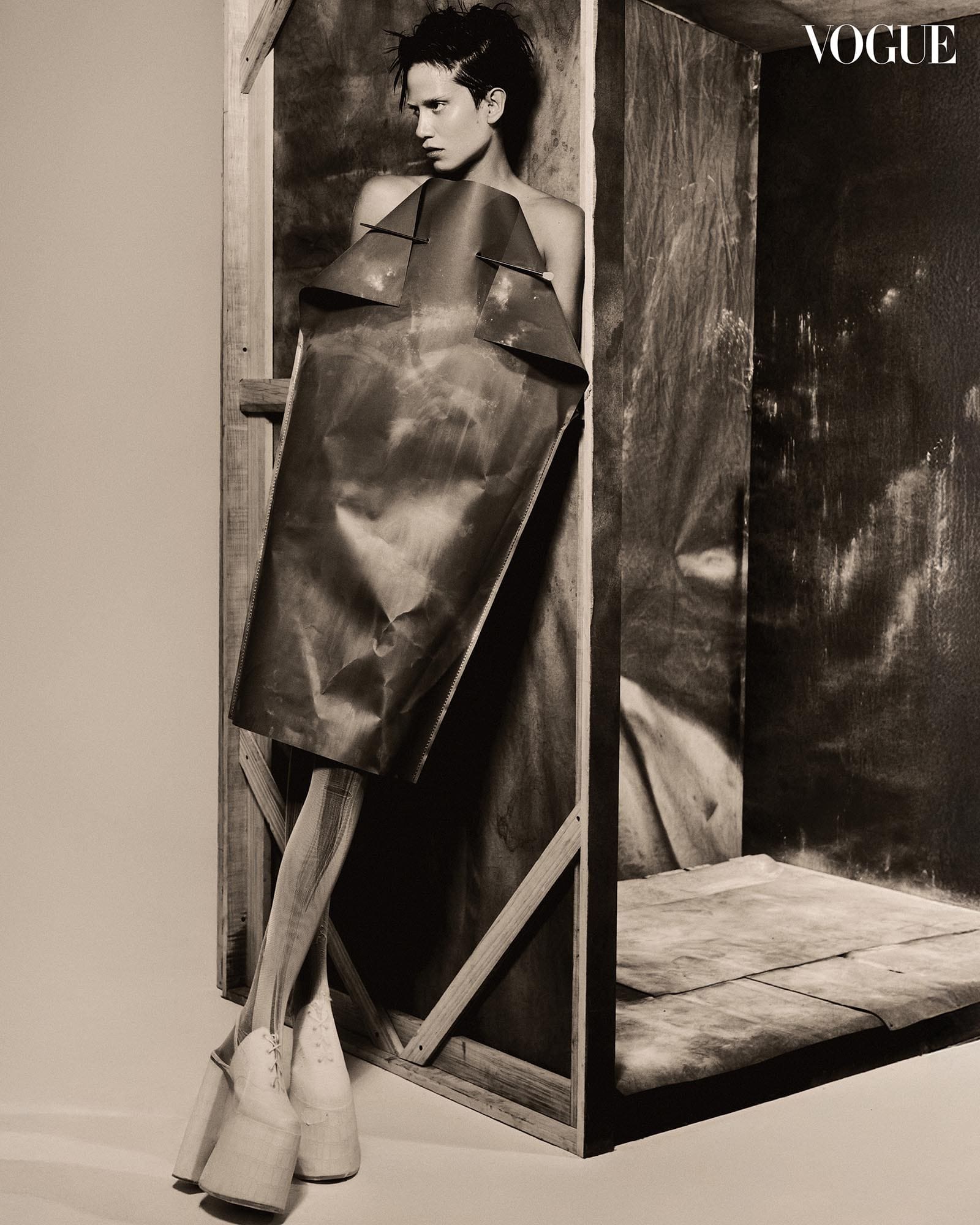 ALEXANDRE DORNELLAS paper dress developed by PAPELARIA DESIGN, CALZEDONIA pantyhose, and FERNANDO PIRES shoes. Photographed by Jonathan Wolpert for the December 2024/January 2025 Issue of Vogue Philippines