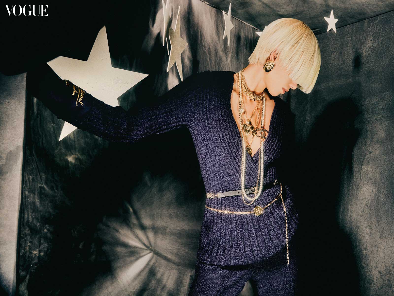 CHANEL top, trousers, earrings, necklaces, and belts. Photographed by Jonathan Wolpert for the December 2024/January 2025 Issue of Vogue Philippines