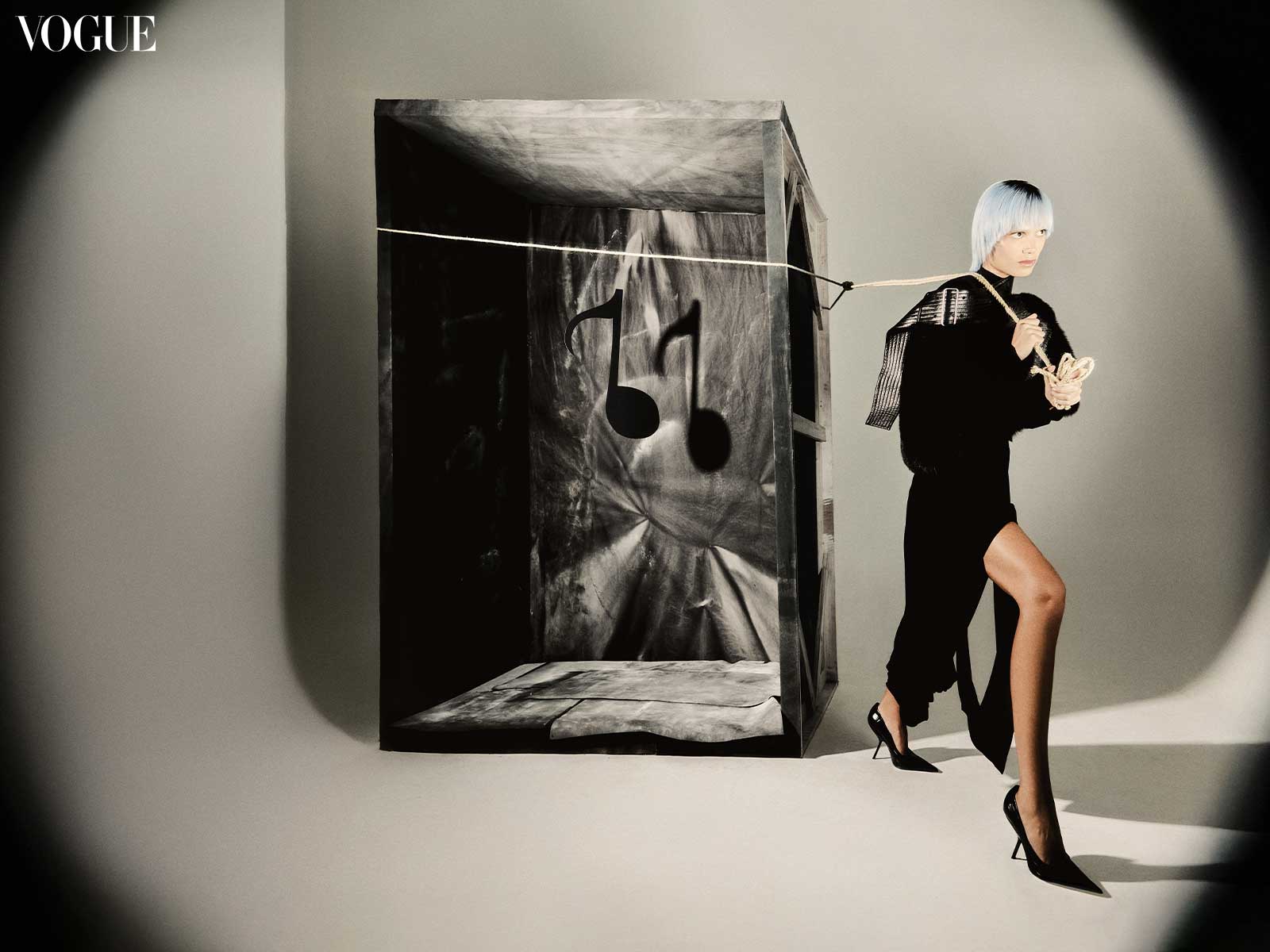PENHA MAIA mask, ARA VARTANIAN ring, and RABANNE shirt and mini skirt, and FENDI shoes. Photographed by Jonathan Wolpert for the December 2024/January 2025 Issue of Vogue Philippines