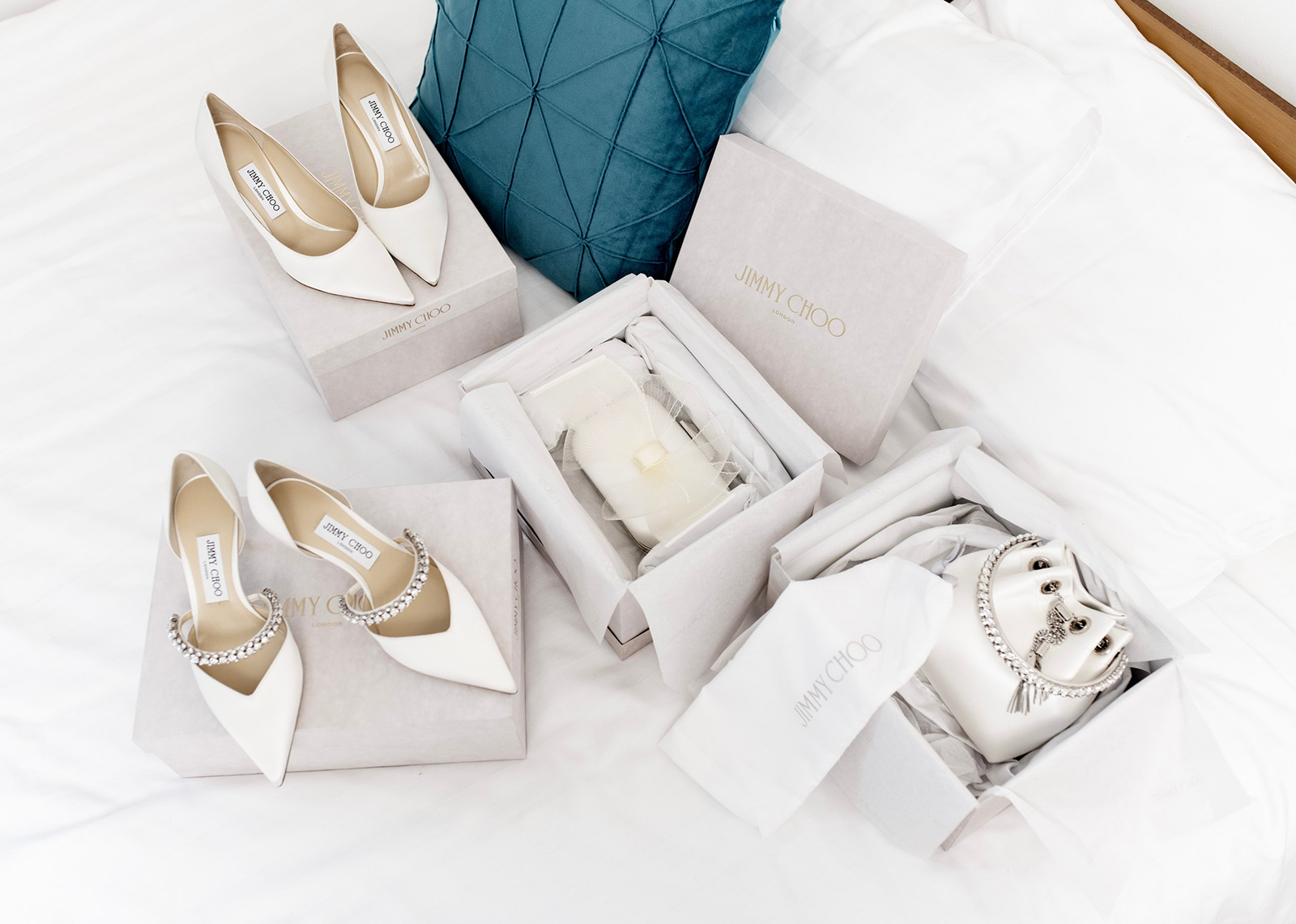 “There is also a Hungarian tradition where you have to wear a red dress after midnight—it’s called menyecske ruha,” the bride explains. “There was no question—I had to wear a Hungarian designer for this one, so I chose Mero. They created the dress of my dreams. It was sexy and sweet but also comfortable—exactly what I wanted.” Barbara planned all her looks with shoe pairings by Jimmy Choo in mind, designed to match the colors of her specific dresses.