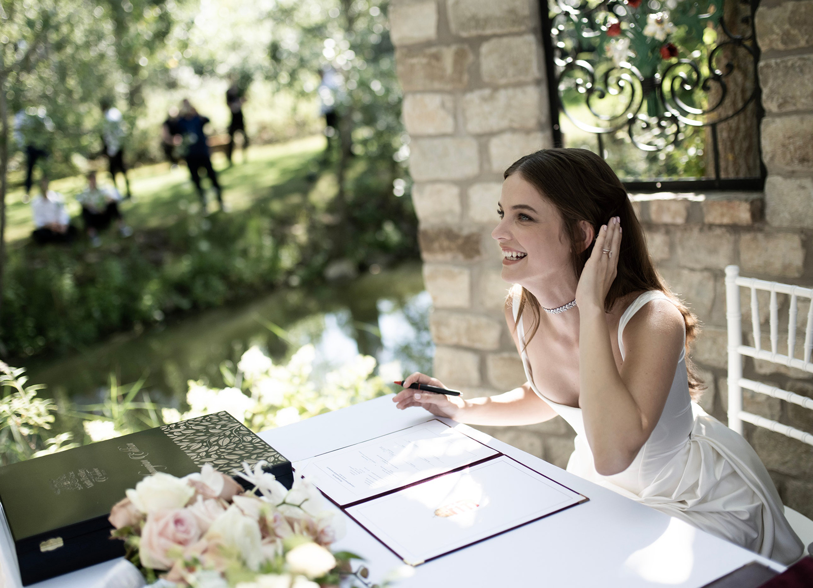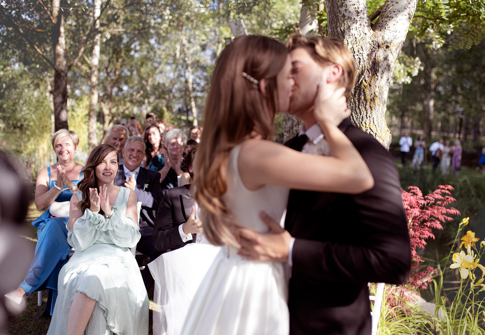 The couple exchanged vows in the church in Albertirsa, where Barbara’s parents got married 34 years ago. “All the people we love and care for were there,” Barbara says. “We all cried a little.” The church service was followed by a civil ceremony, which took place on a small island within a reserve on Barbara’s parents’ property. “The weather was perfect with a little cool breeze,” Barbara says. “It was a beautiful moment that we will never forget.”