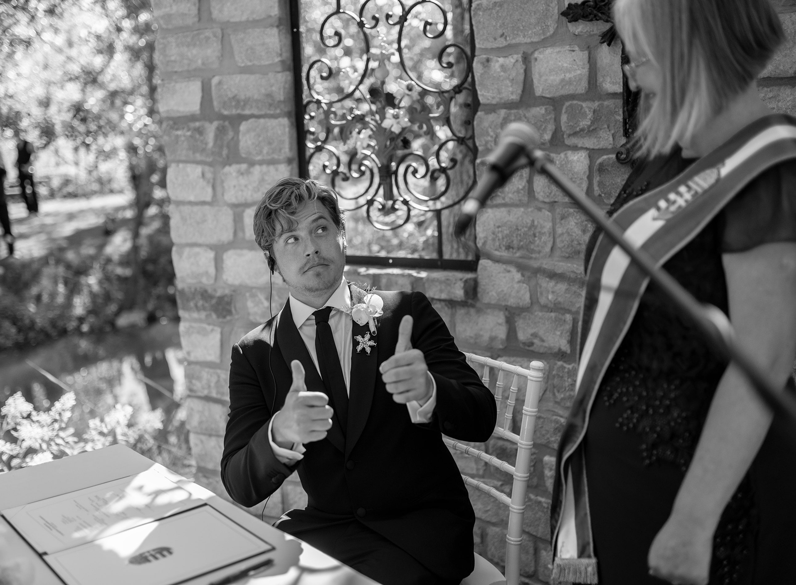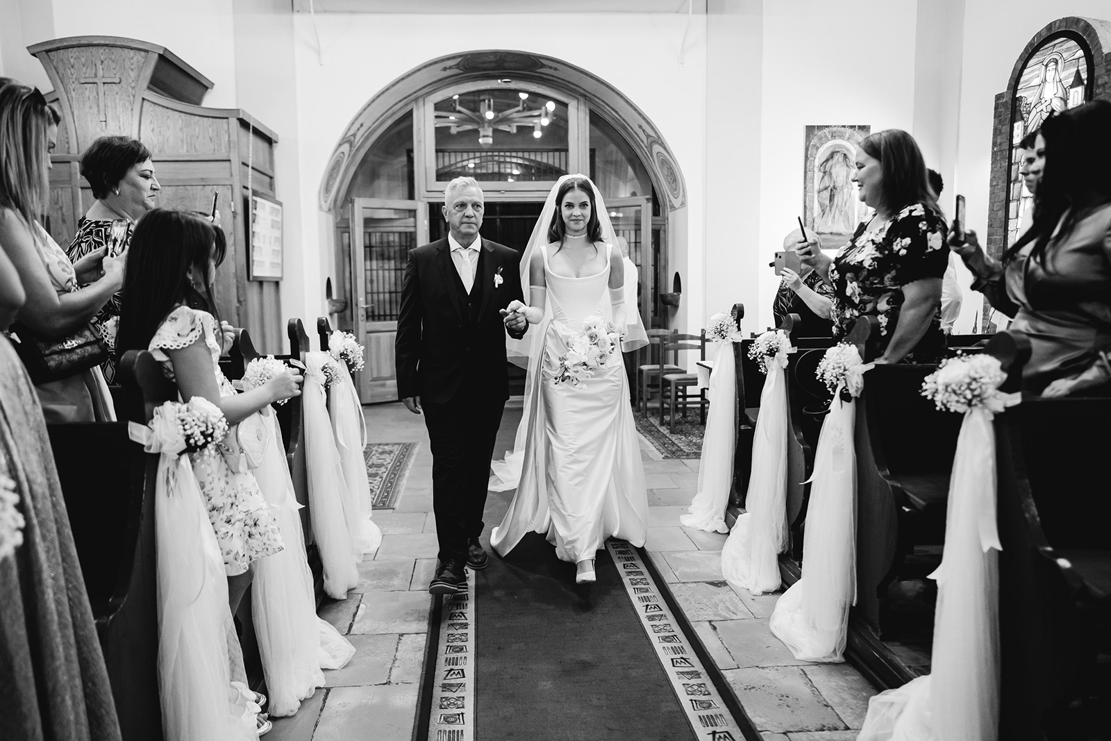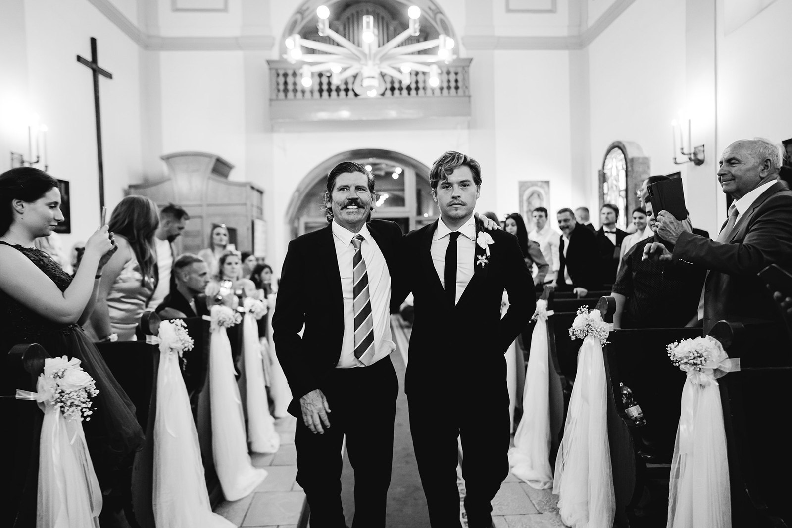 “We were filled with excitement!” Dylan adds. “Since we were already done with the ceremony in the church, we were a little calmer for the second part. Before walking down the aisle, we were nervous, but as soon as we laid eyes on each other, we just started laughing, and this calmed our nerves. Of course we both ended up crying.”