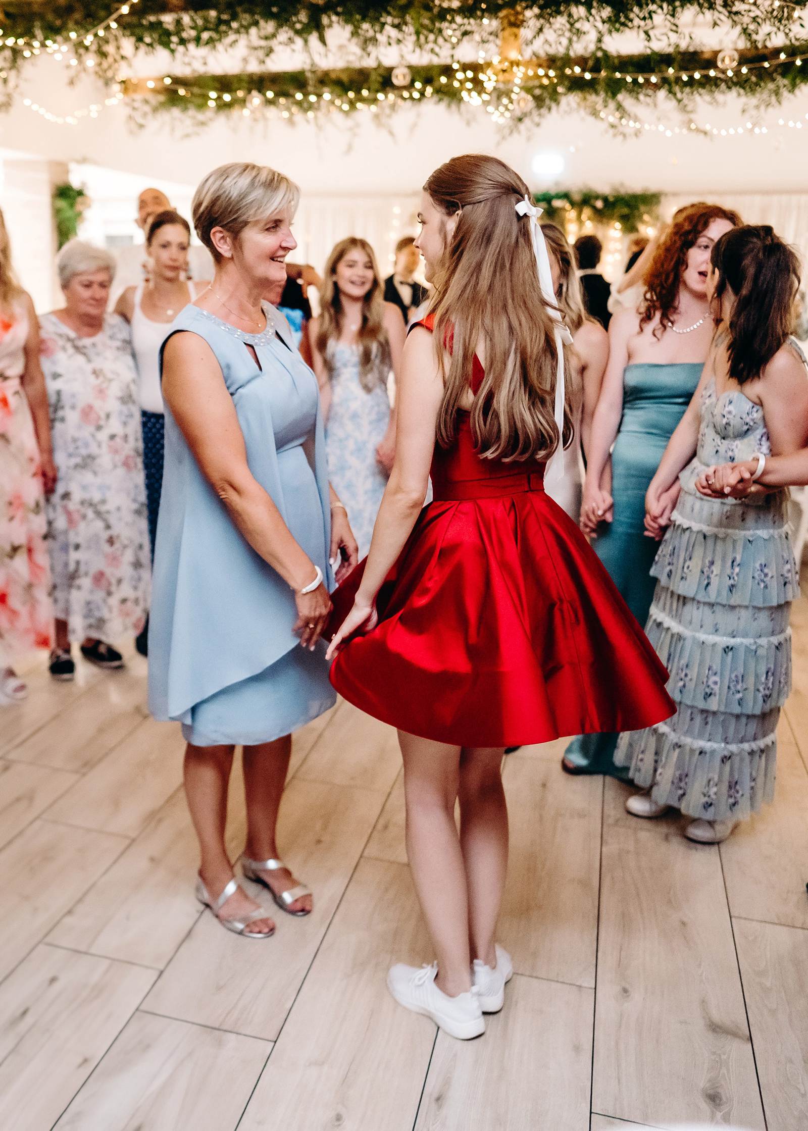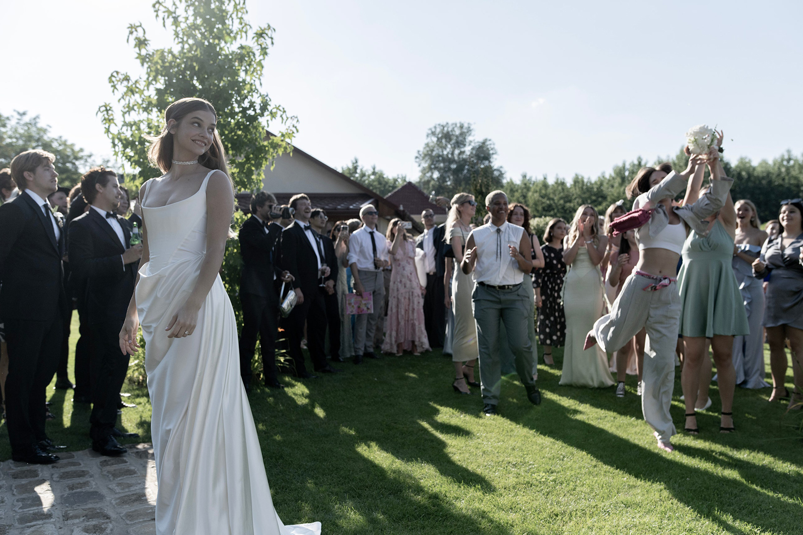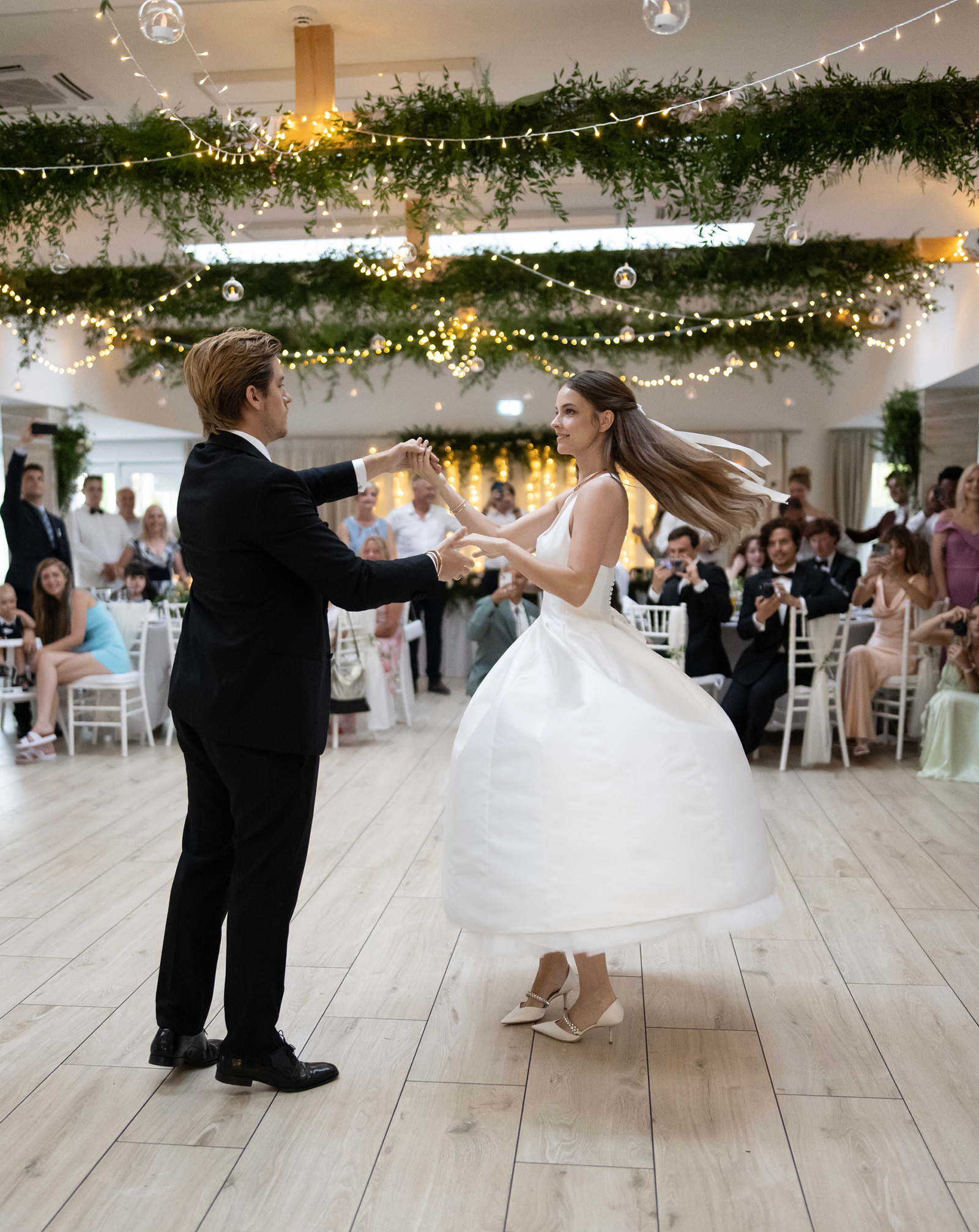 Afterward, the newlyweds had trouble calming down. “We still had our first dance in front of us, and we were a bit stressed about it,” Dylan says. “But after we were done with that, we just enjoyed the great food and live music. We did a few pálinka shots and listened to some traditional Hungarian music as well while playing wedding games—if you want to know more, you had to be there!”