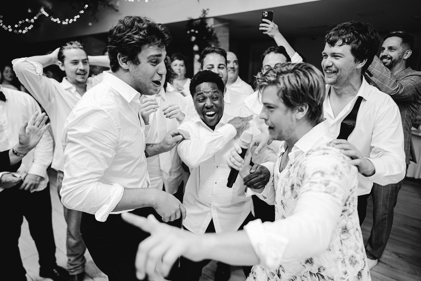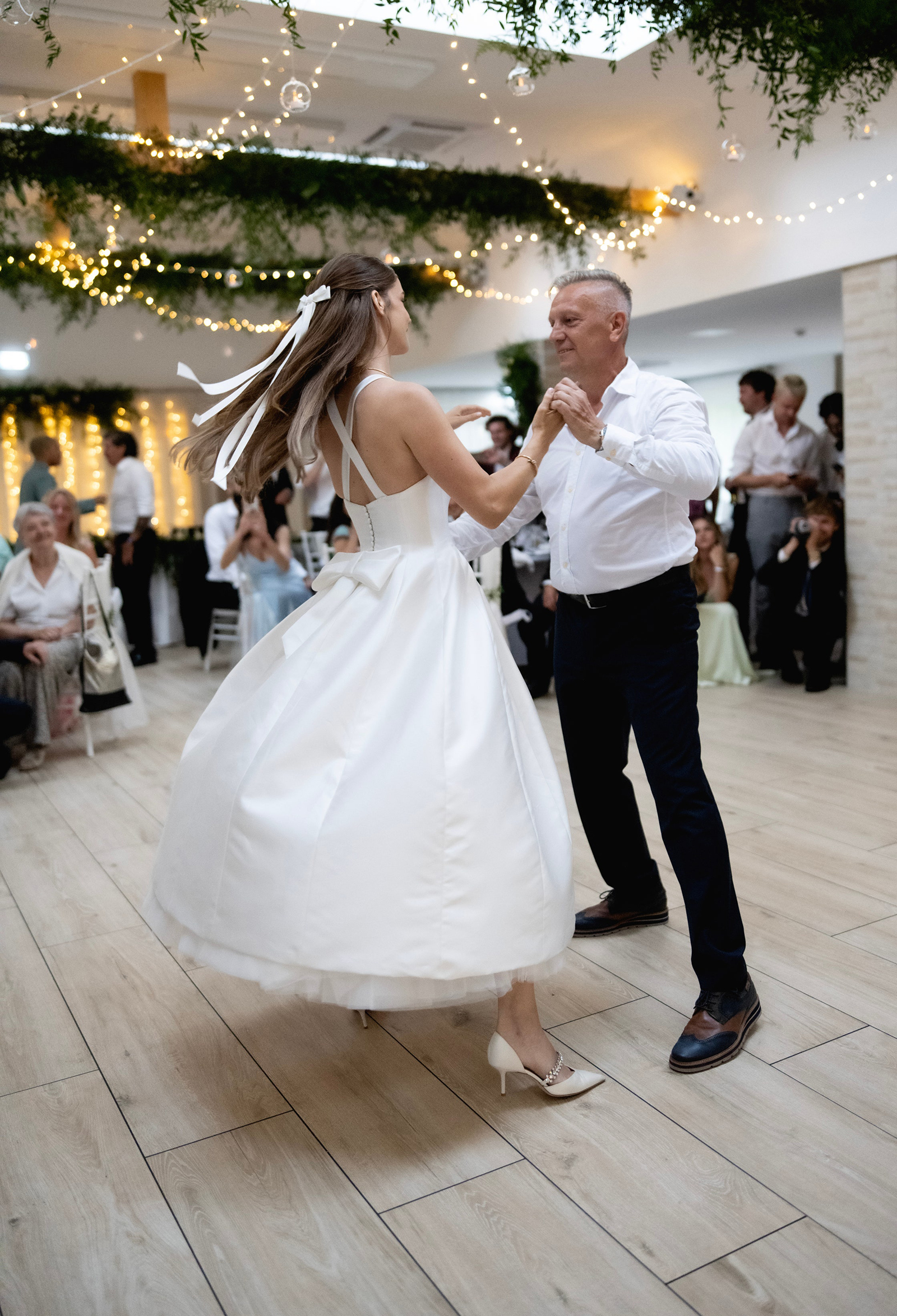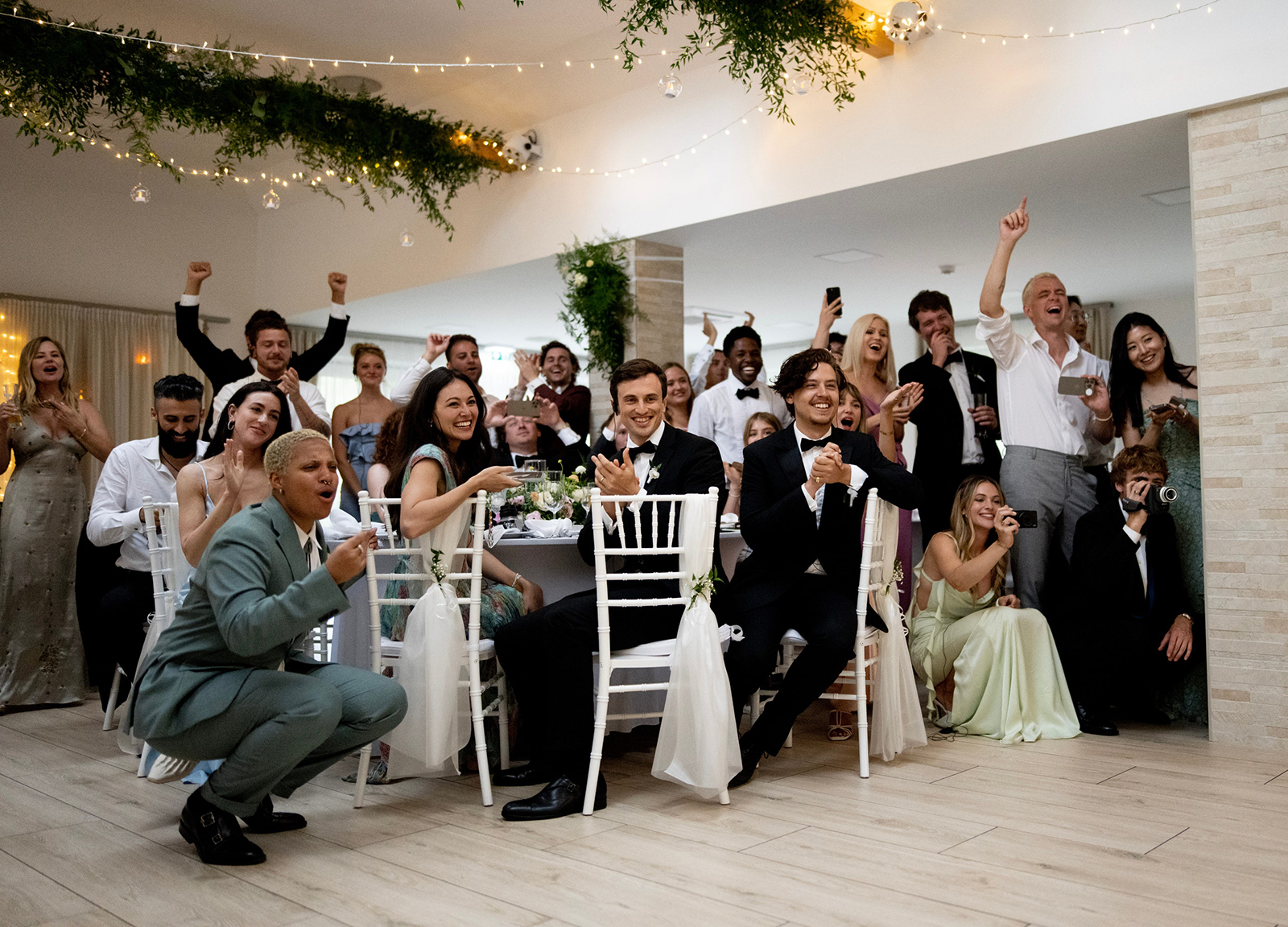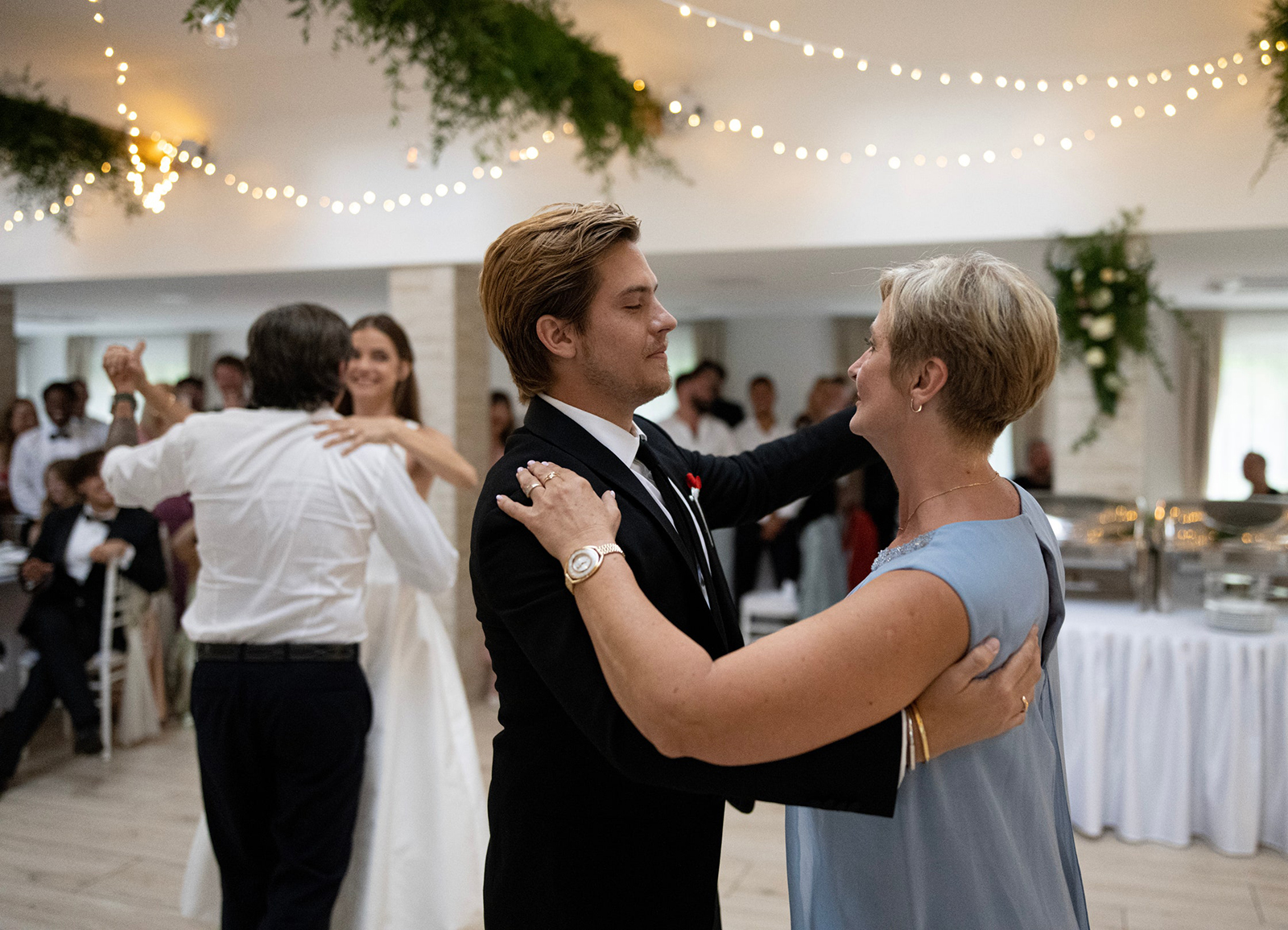 Afterward, the newlyweds had trouble calming down. “We still had our first dance in front of us, and we were a bit stressed about it,” Dylan says. “But after we were done with that, we just enjoyed the great food and live music. We did a few pálinka shots and listened to some traditional Hungarian music as well while playing wedding games—if you want to know more, you had to be there!”