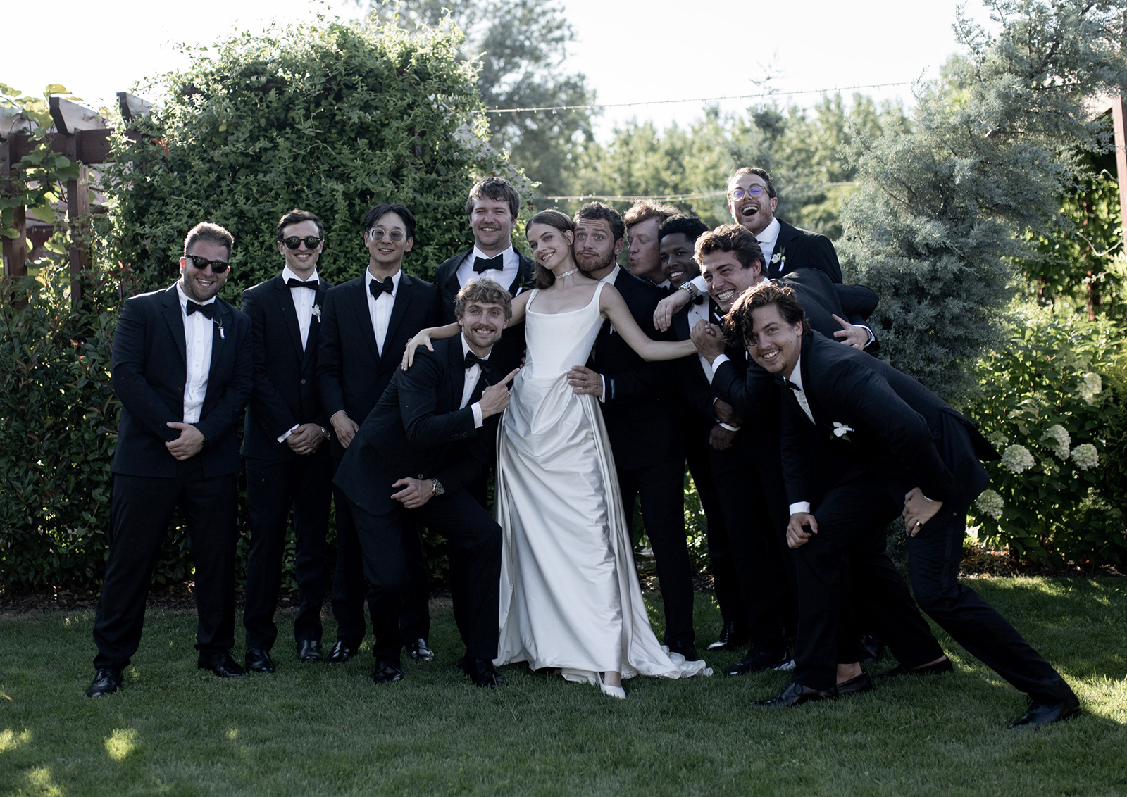 Meanwhile, the bridesmaids were all dressed in cool pastels. “It was important for me not to pick a specific color but rather a palette so everyone could still express themselves however they wanted within the theme,” Barbara says. “I wanted everyone to feel comfortable. I had some of my family members for flower girls, and the guys were all just handsome in their black suits.”