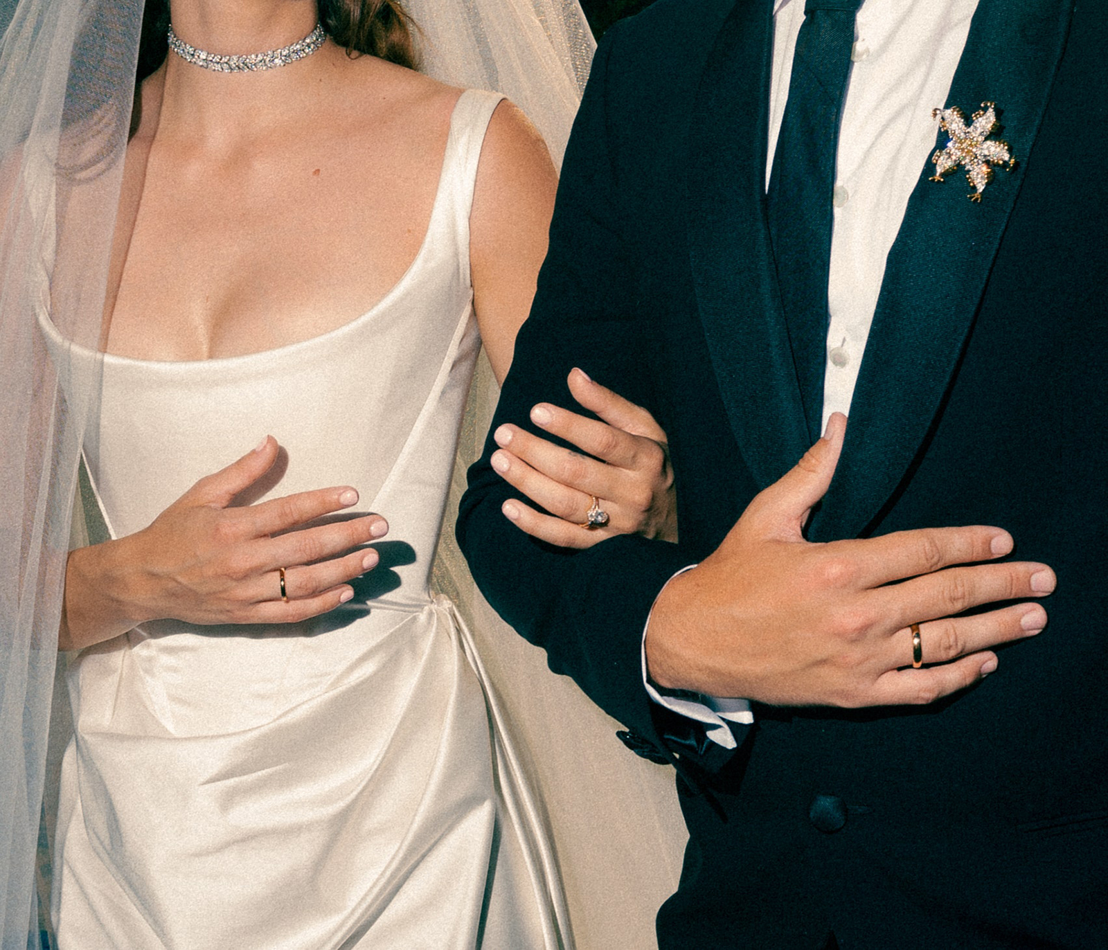 Barbara also carefully considered every aspect of her wedding wardrobe, wanting to wear something timeless and classic for the ceremony. Vivienne Westwood served as her starting point, and she eventually settled on a custom strapless design from the British fashion house. For wedding-day jewelry, it was always Tiffany & Co., with the jeweler creating a ’90s-inspired choker for the bride that perfectly complemented the dress.