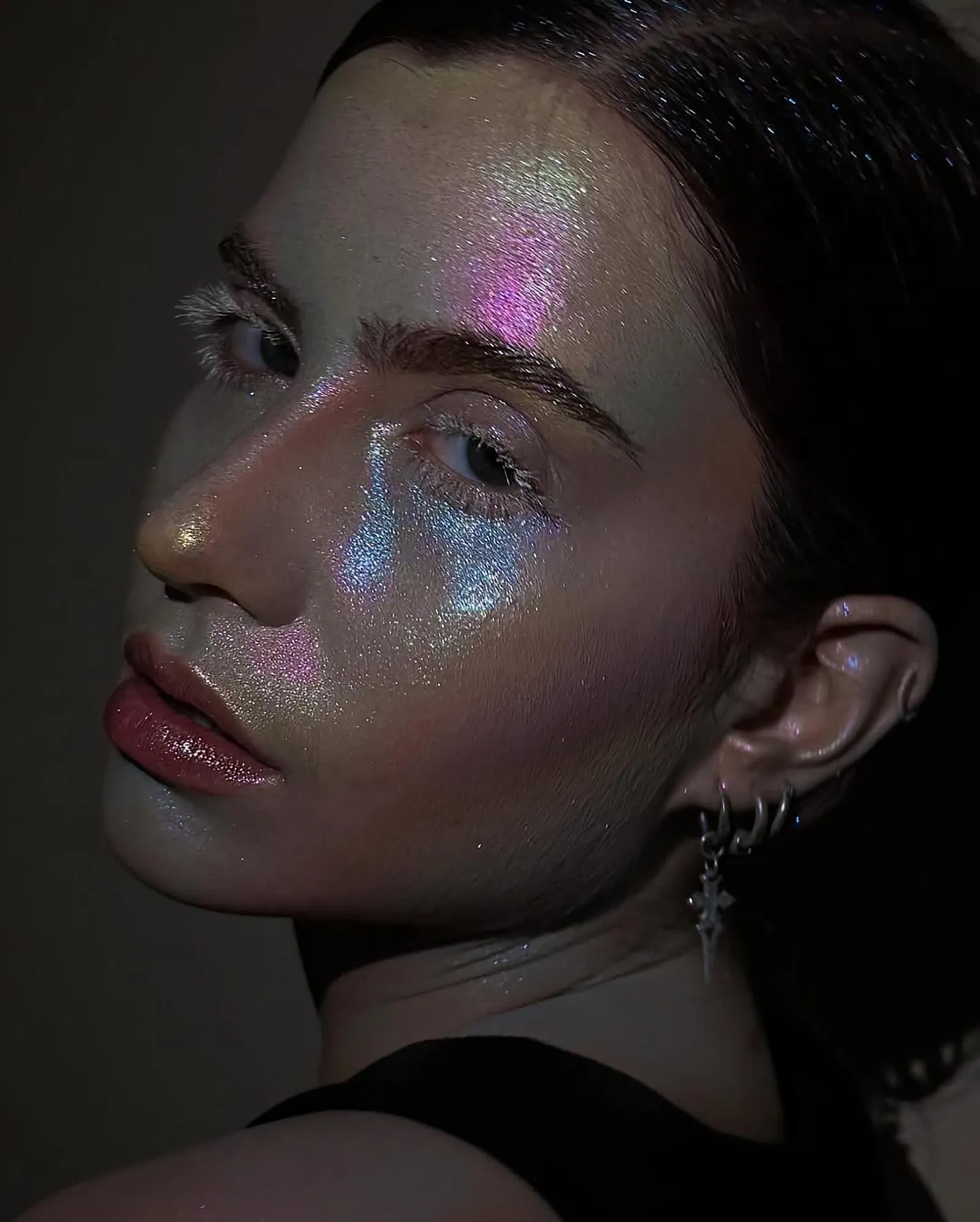 London-based MUA Abby Roberts is known for both glamorous and other-reality looks: Rose petal lips, a lace crocheted face, a venus fly trap-inspired beat. This week, she took Pride as her inspiration for a stunning, celestial, rainbow sheen.