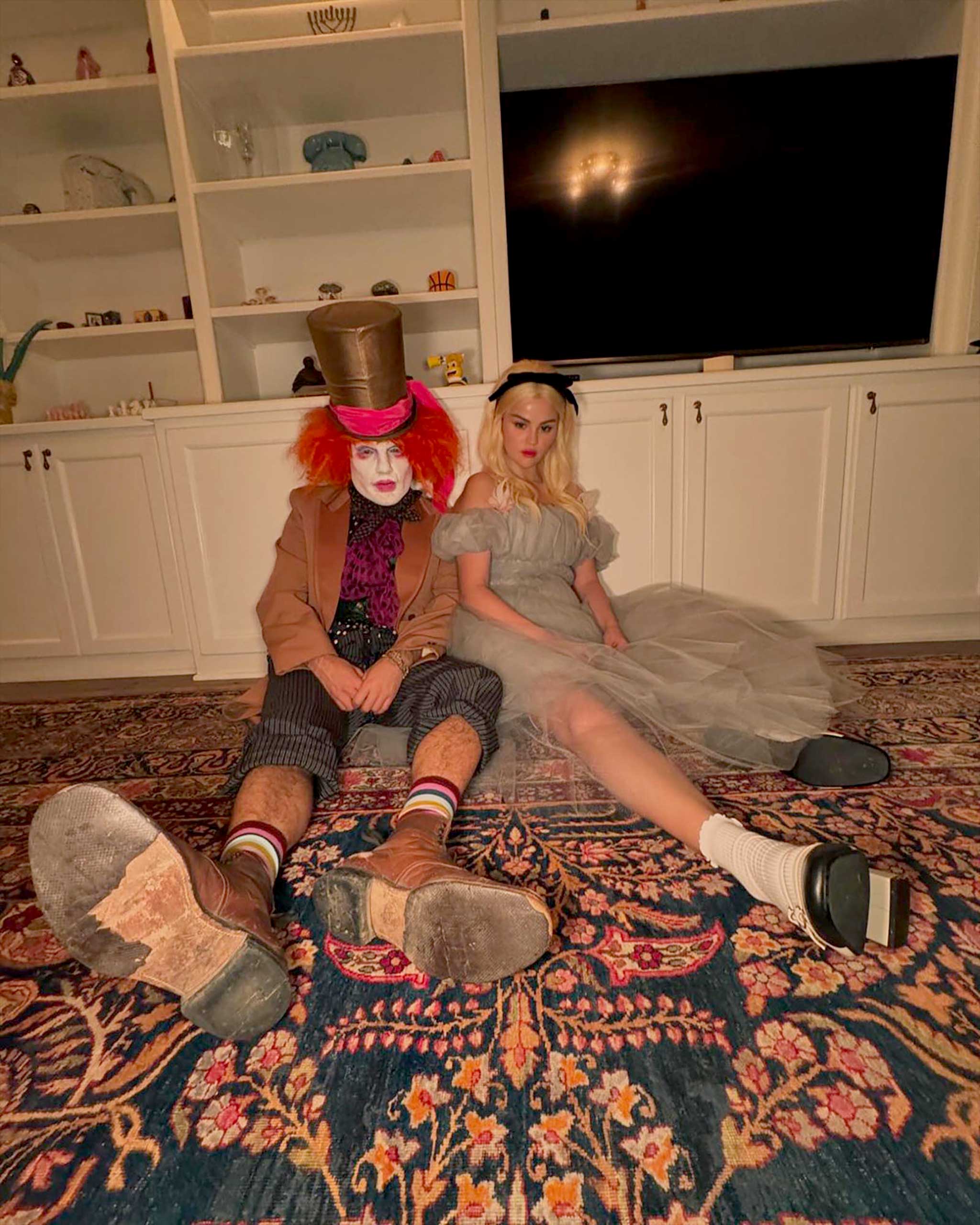 Who made the list thus far? Couple Selena Gomez and Benny Blanco were some of the first celebrities to debut their coordinated costumes: Gomez wore Rodarte for her Alice in Wonderland look, while Blanco went full-on theatrical in his Mad Hatter getup. Sophie Turner went as Trinity from The Matrix—and her sleek patent leather bodysuit and tiny shades were on point. Lizzo, meanwhile, pointed to the Ozempic craze by dressing up as a box of “Lizzo” diet suppressor, which promises to make you gain confidence.
