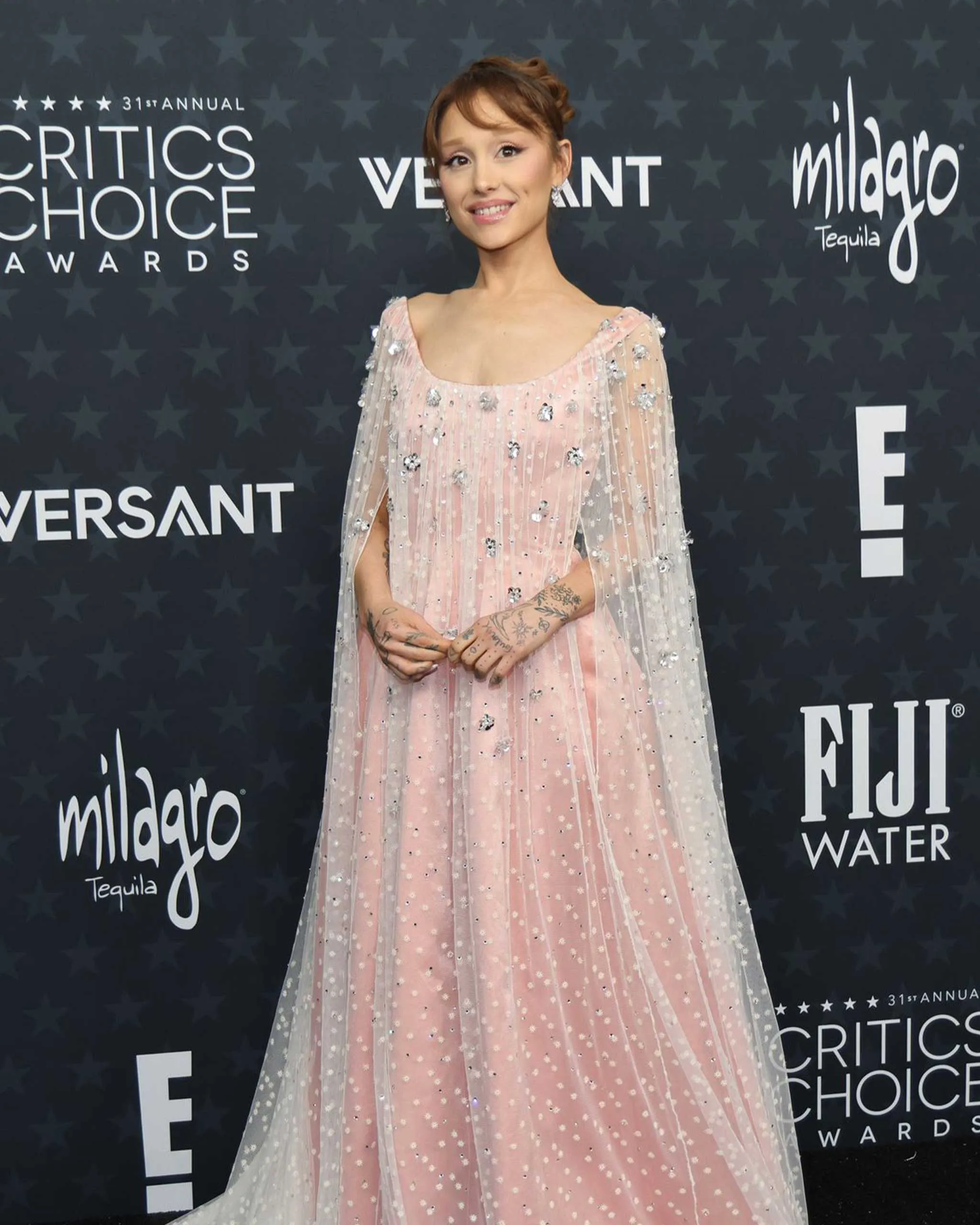 The best dressed stars of the bunch, of course, delivered more than your standard glitzy gowns and sharp suits: They delivered fresh, unexpected twists on Old Hollywood glamour. Armed with colorful hues, sculptural shapes, and loads of crystals, you could say these showstopping looks kicked off awards season with a bang. Chase Infiniti shined in a draped butter yellow Louis Vuitton two-piece number, which featured a high-waisted opera skirt and built-in cape. Wicked star Ariana Grande continued on with Ginda pink, choosing an ornately beaded Alberta Ferretti gown with a tulle overlay.