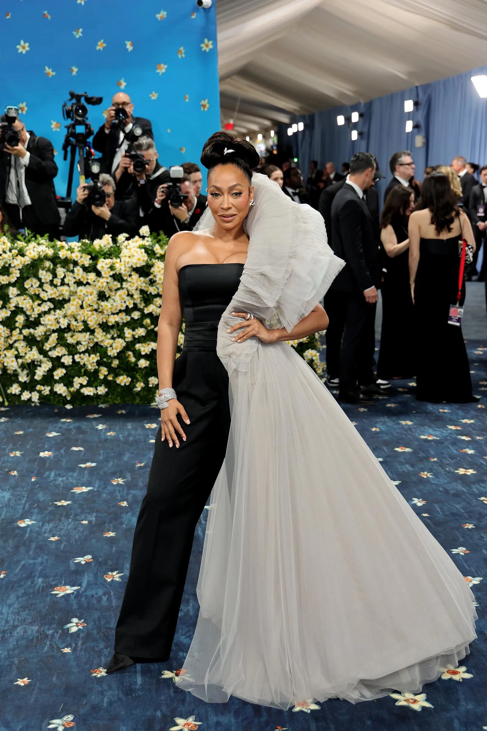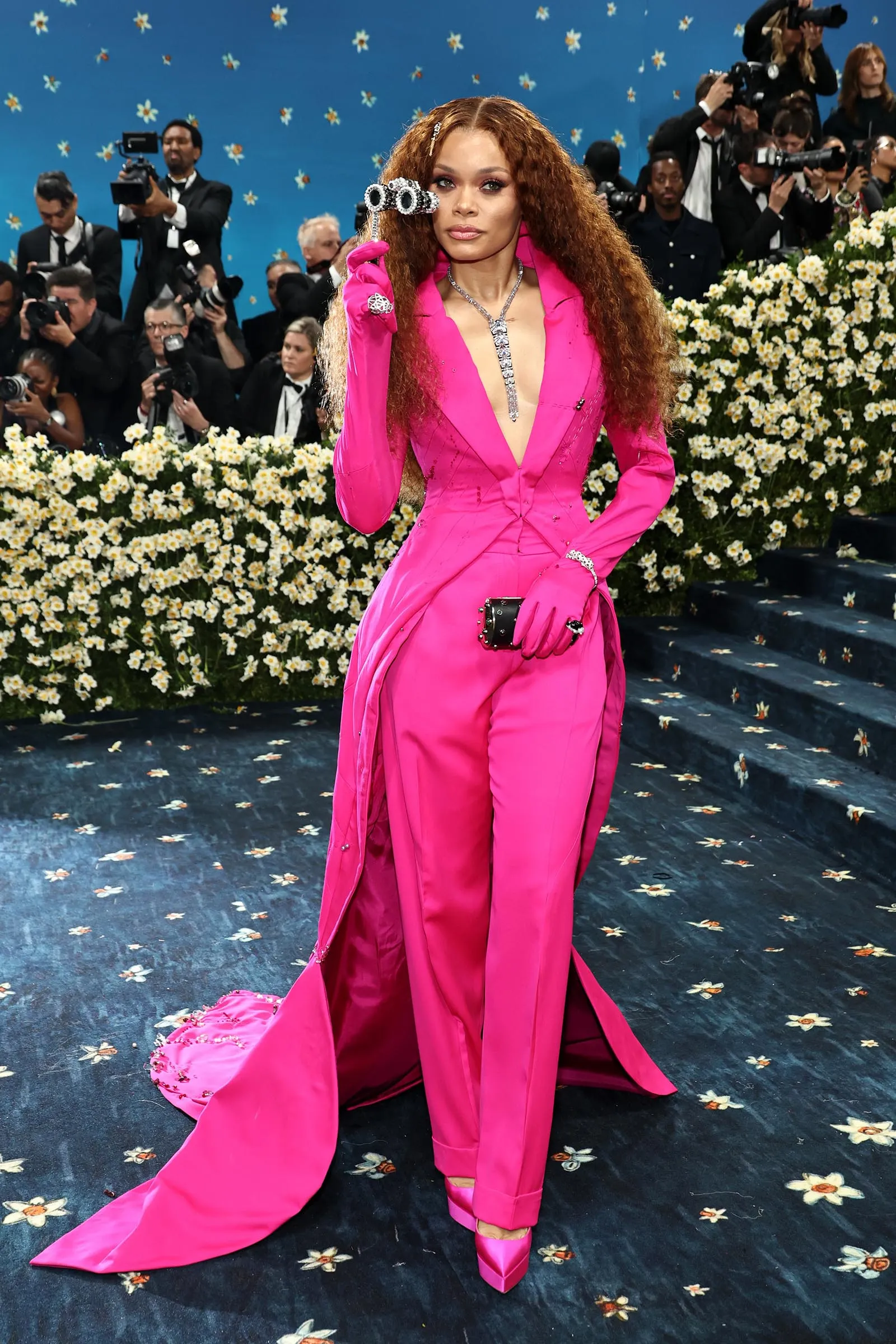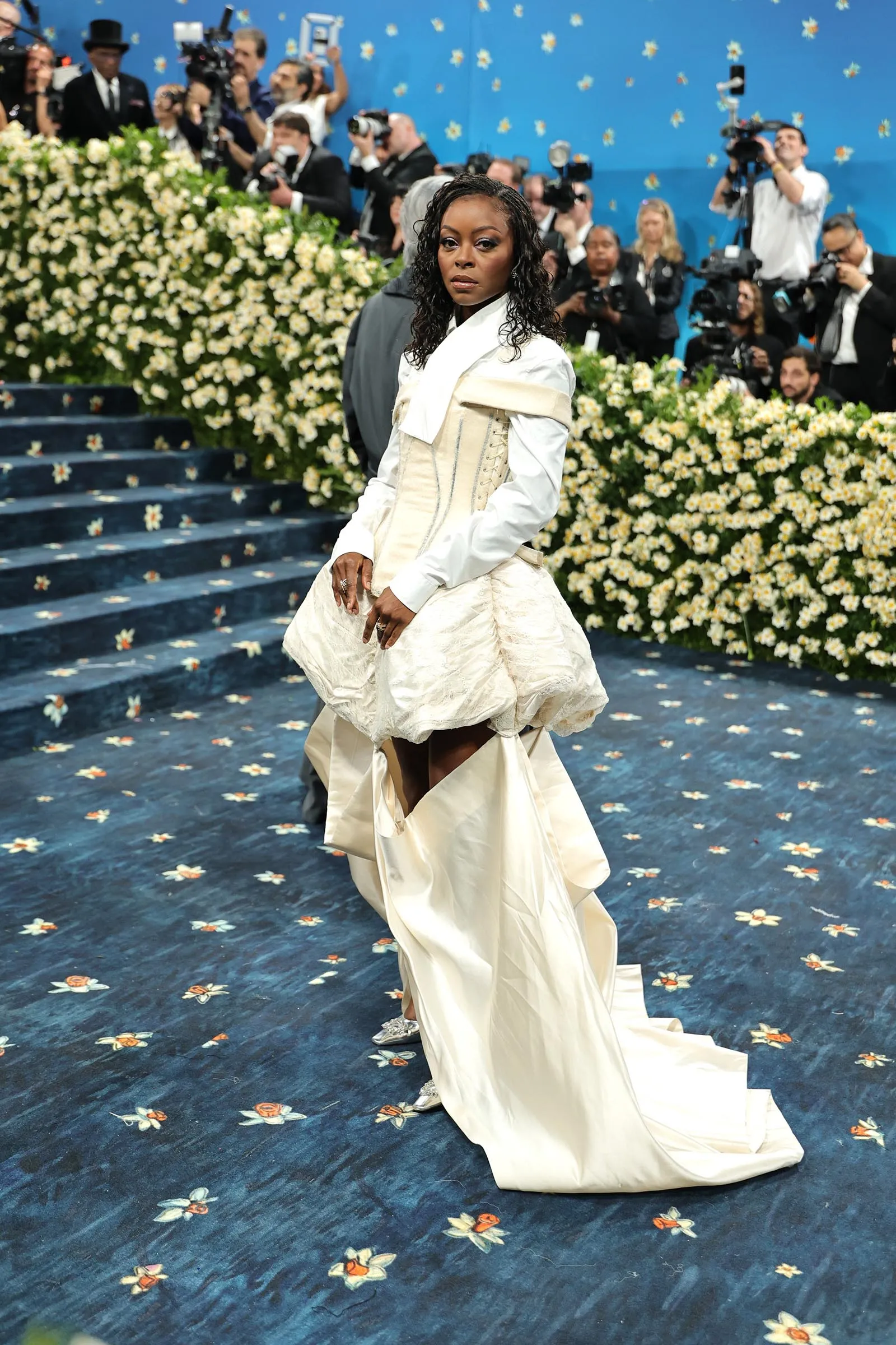 A few gowns and skirt looks were also worthy of a best-dressed nod—like Anne Hathaway’s Carolina Herrera shirt and ball gown, an homage to the great André Leon Talley. Cynthia Erivo dazzled in a shimmering jacket and ball skirt by Givenchy. In a custom Ugo Mozie design, Diana Ross also floated up the Met steps in a cascading gown that featured an 18-foot train—embroidered with the names of her own children and grandchildren, for a personal touch. Overall, it proved to be one of the most stylish, memorable Met Gala carpets in history.