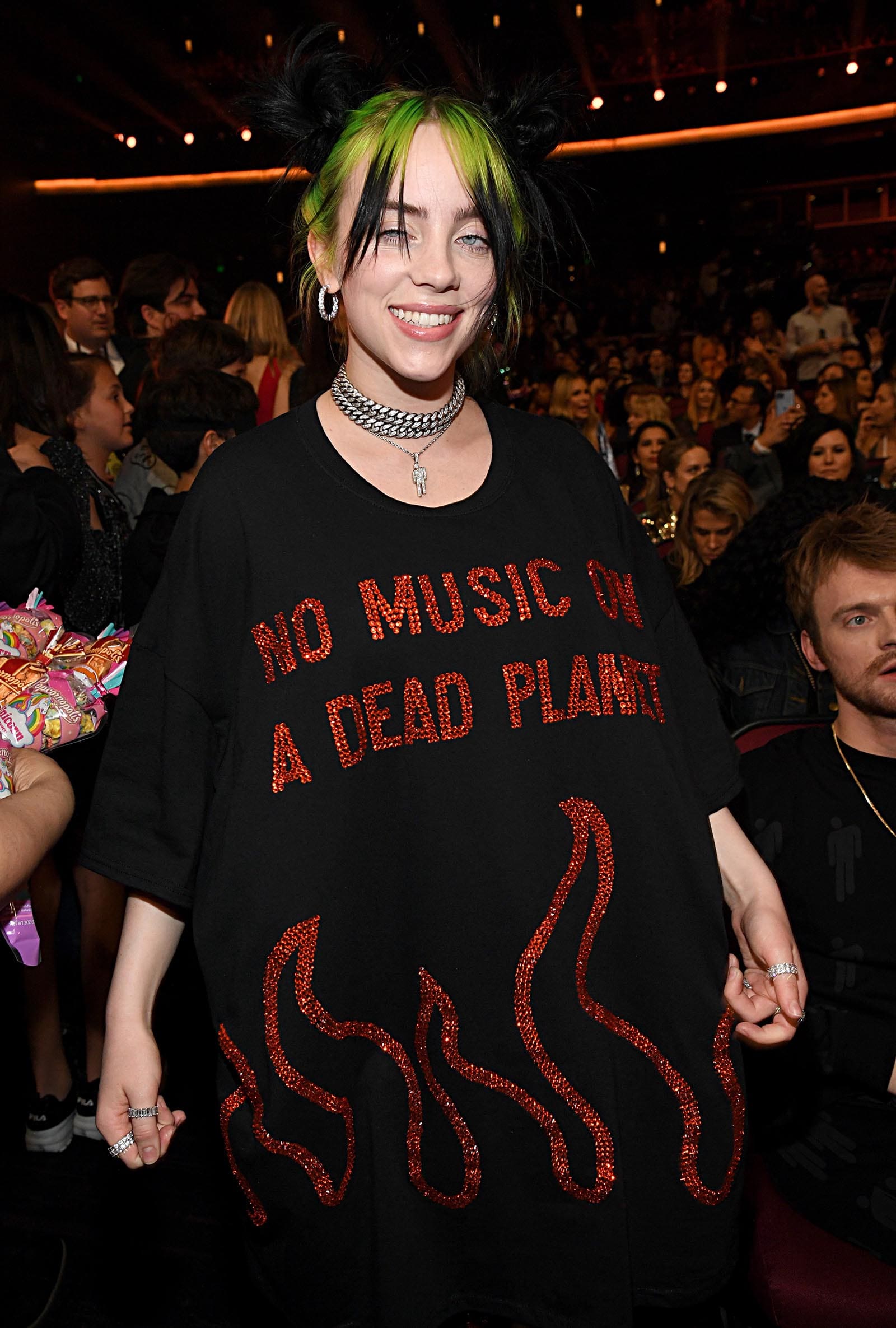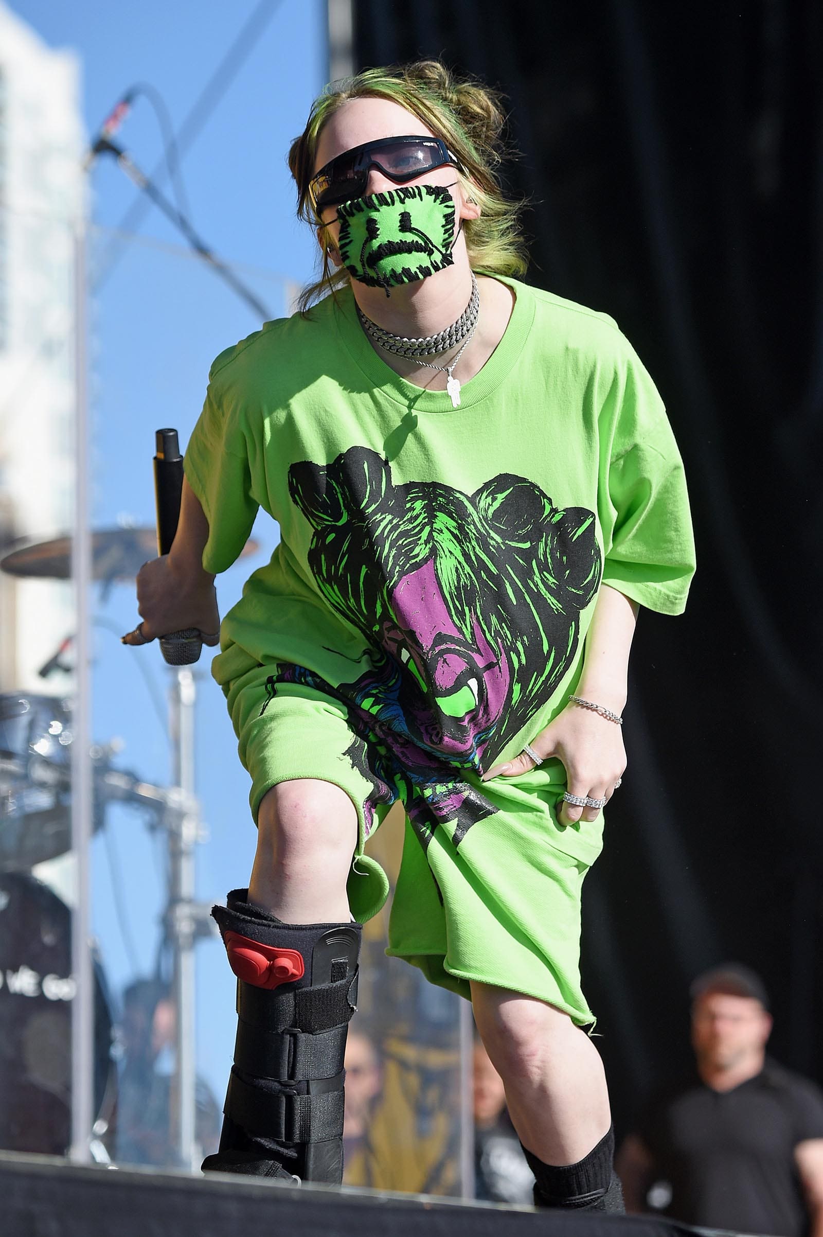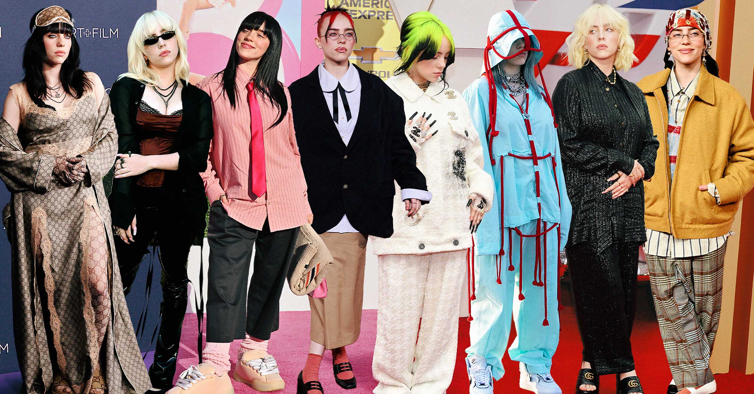 Back in 2017, a plucky young singer named Billie Eilish burst onto the scene, equipped with haunting vocals, sharp lyrics, and a totally incongruous personal style. Eilish’s streetwear-influenced fashion sense is marked by her love of neon hues, oversized silhouettes, monograms, and graffiti—a far cry from her heart-wrenching ballads and soft singing voice.