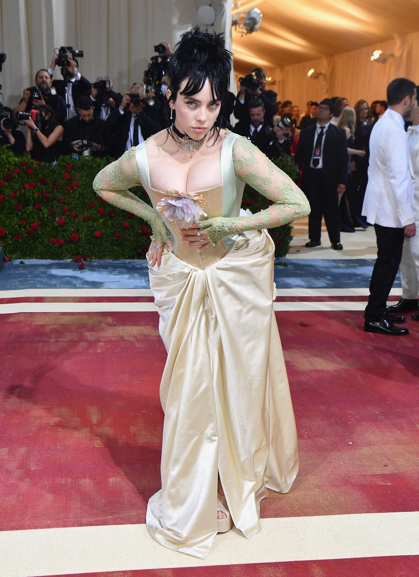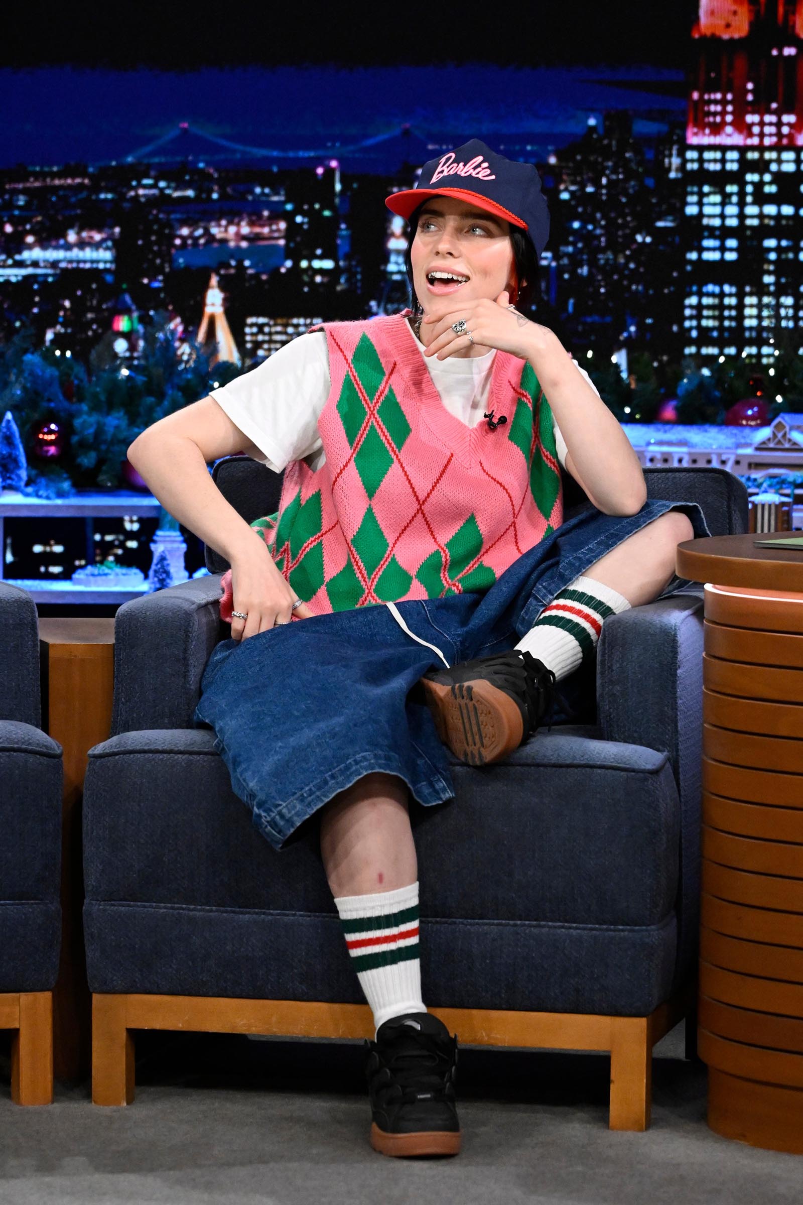 Eilish has been candid about her relationship with her body, and how that’s informed her clothing choices. “I only started wearing baggy clothes because of my body,” she told Vanity Fair in 2021. While she still tends to stick to her de rigueur look, she does occasionally lean into the feminine, whether that means wearing a frilly Simone Rocha dress to host SNL, channeling her inner Marilyn at the Met Gala, or wearing a ladylike tweed skirt to the Oscars.