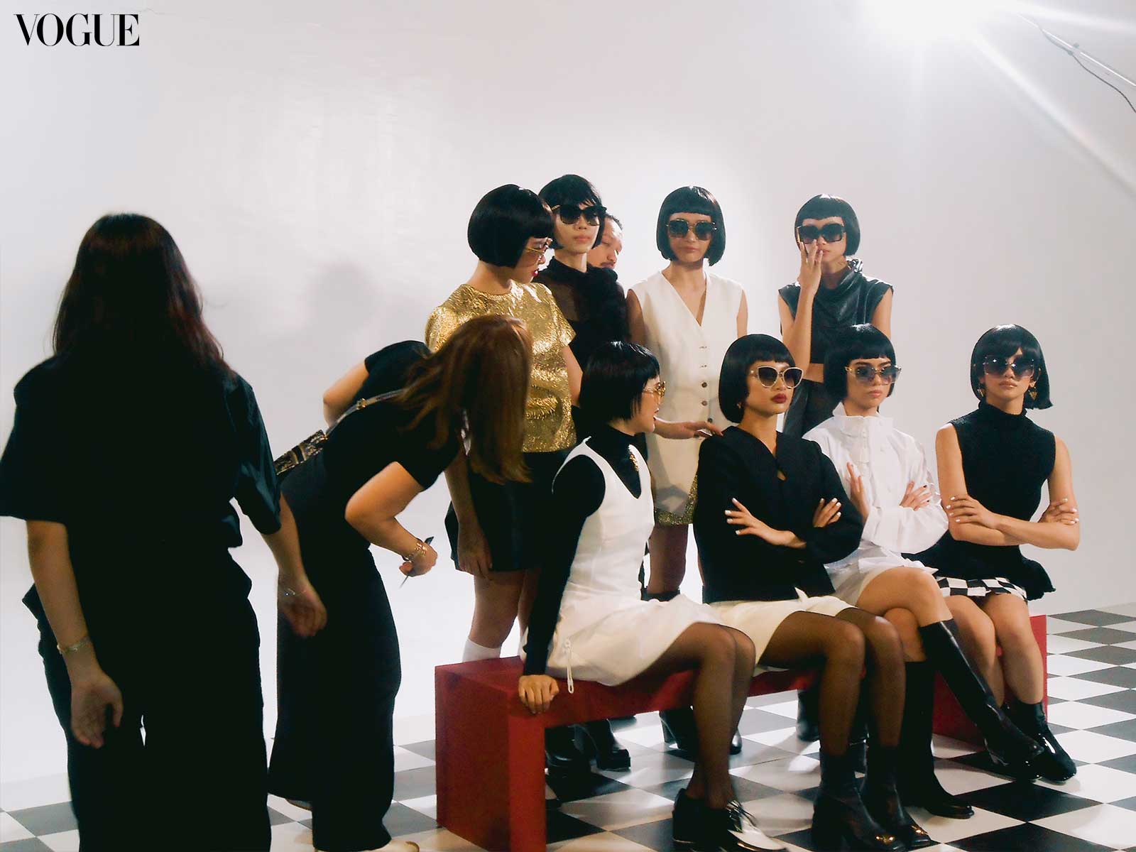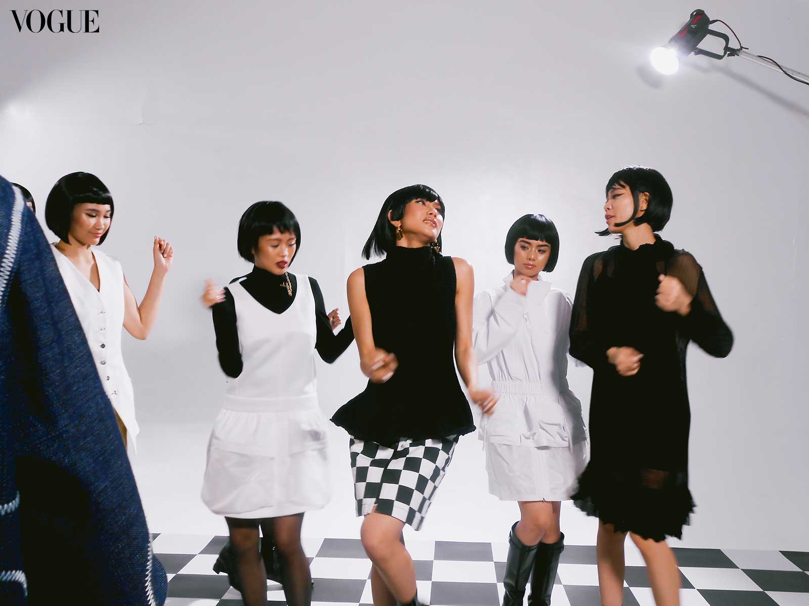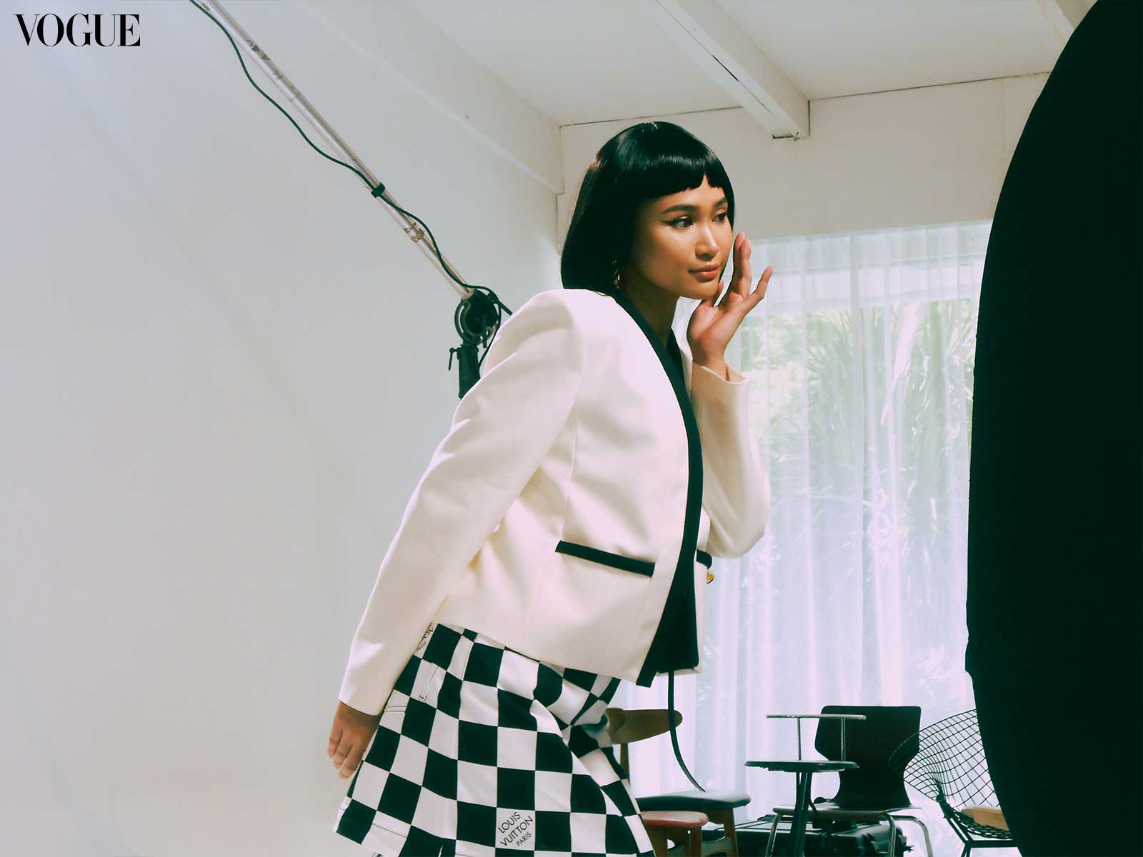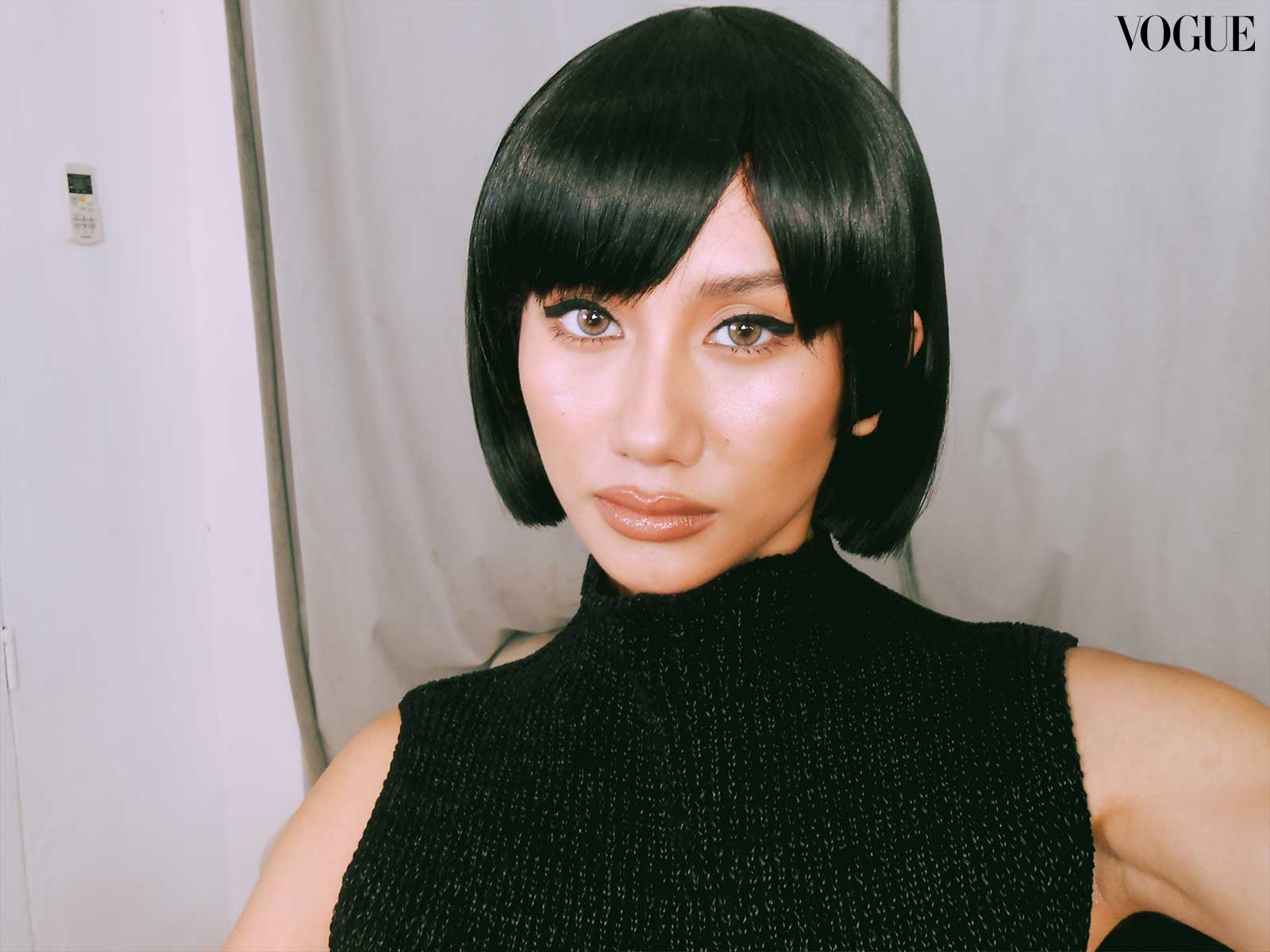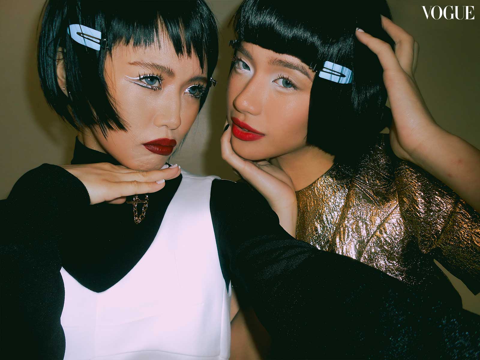 For this month’s main editorial, fashion director Pam Quiñones envisioned a bold and graphic edge, seeing connections between “the empowered youthquake of the ’60s and the fresh dynamism of BINI,” continued Valdes. Beauty editor Joyce Oreña aimed to capture the essence of that past while reimagining it for the present; the team cites William Klein’s 1966 film Who Are You, Polly Magoo? as one of the primary inspirations, translating helmet hair and heavily lashed eyes to contemporary bobs and deconstructed liner.