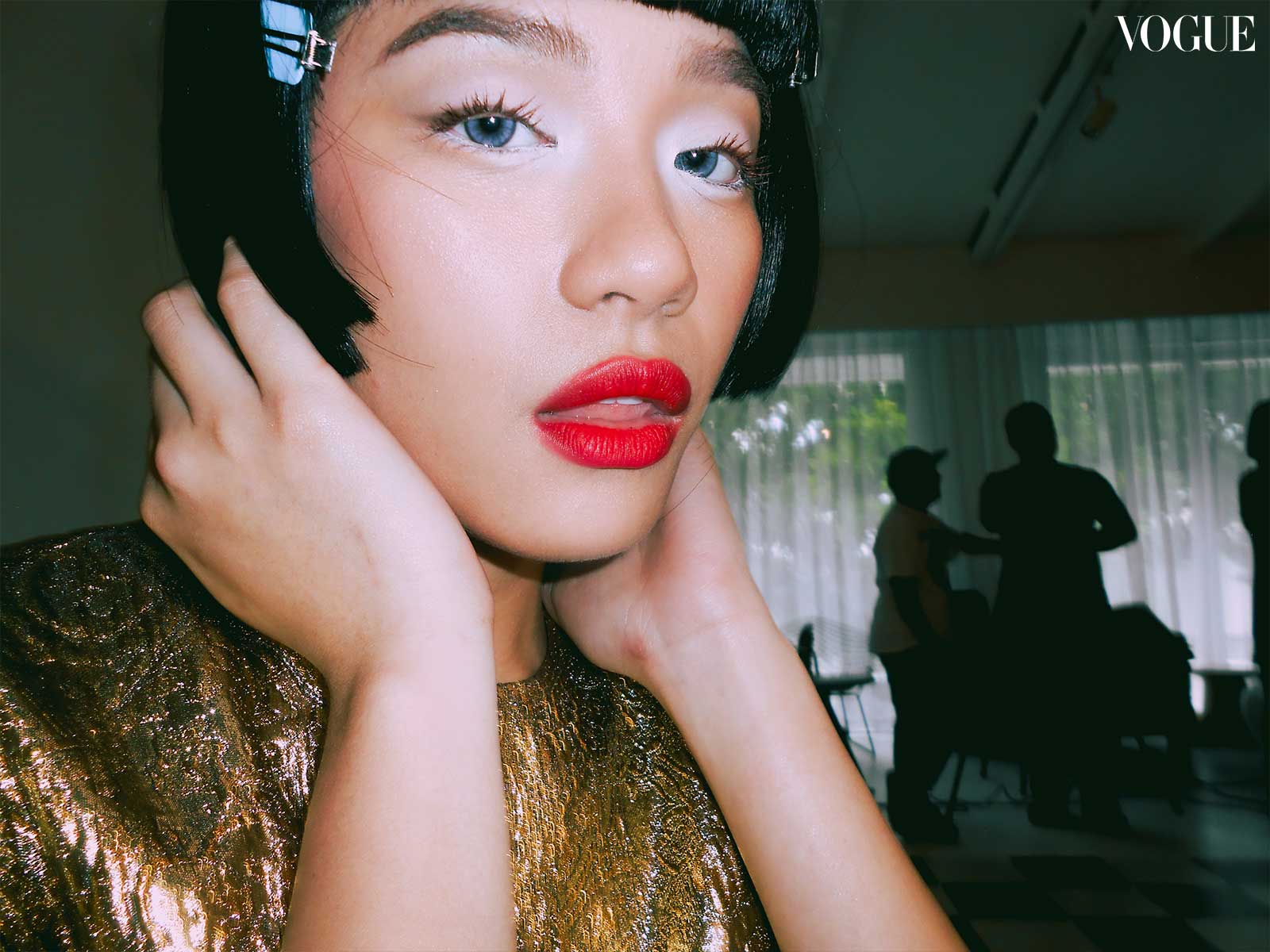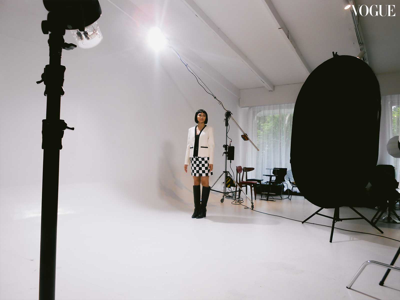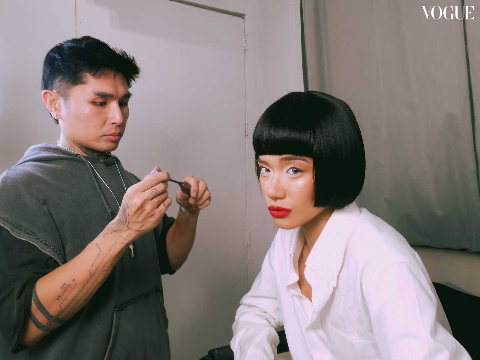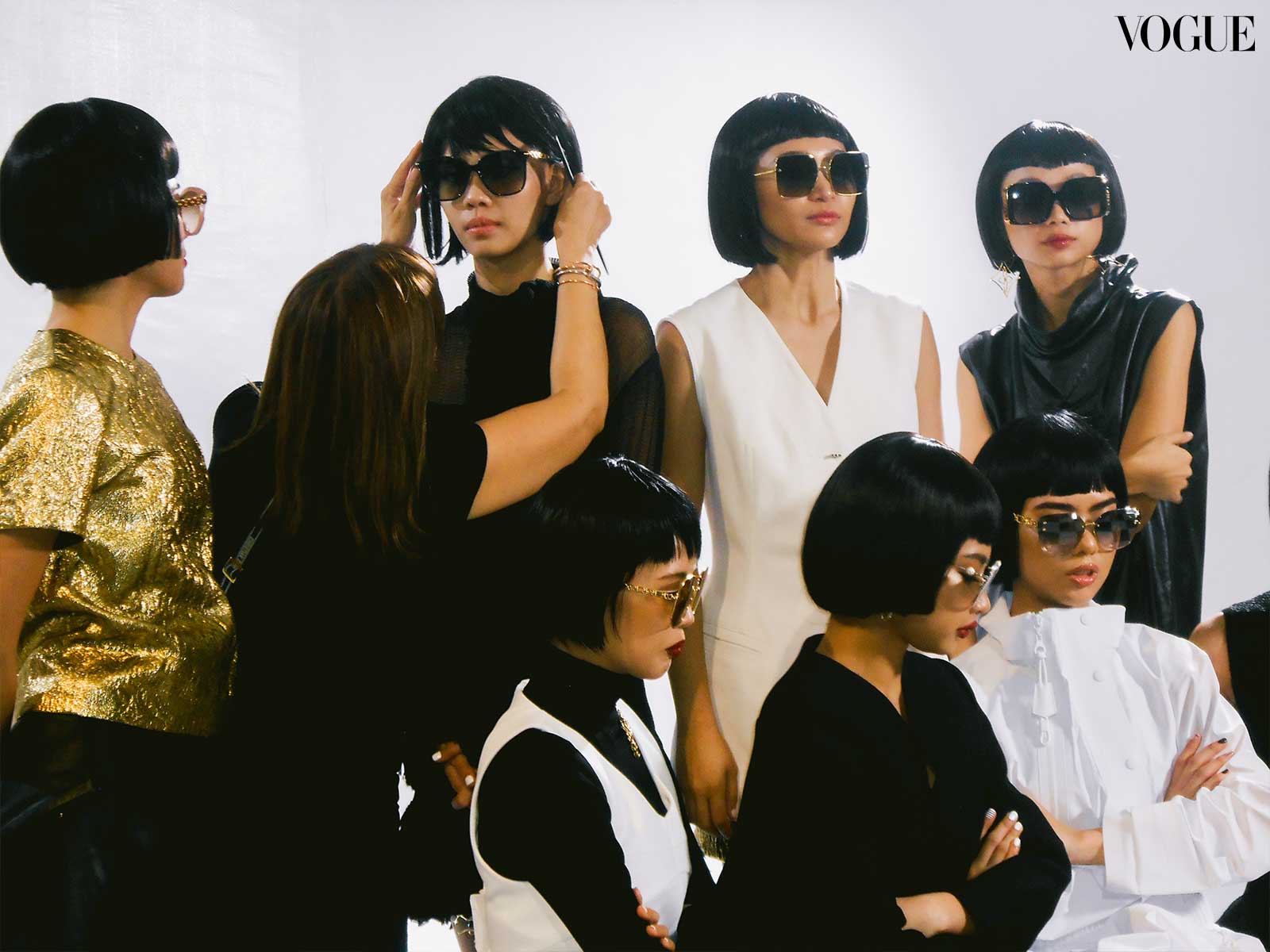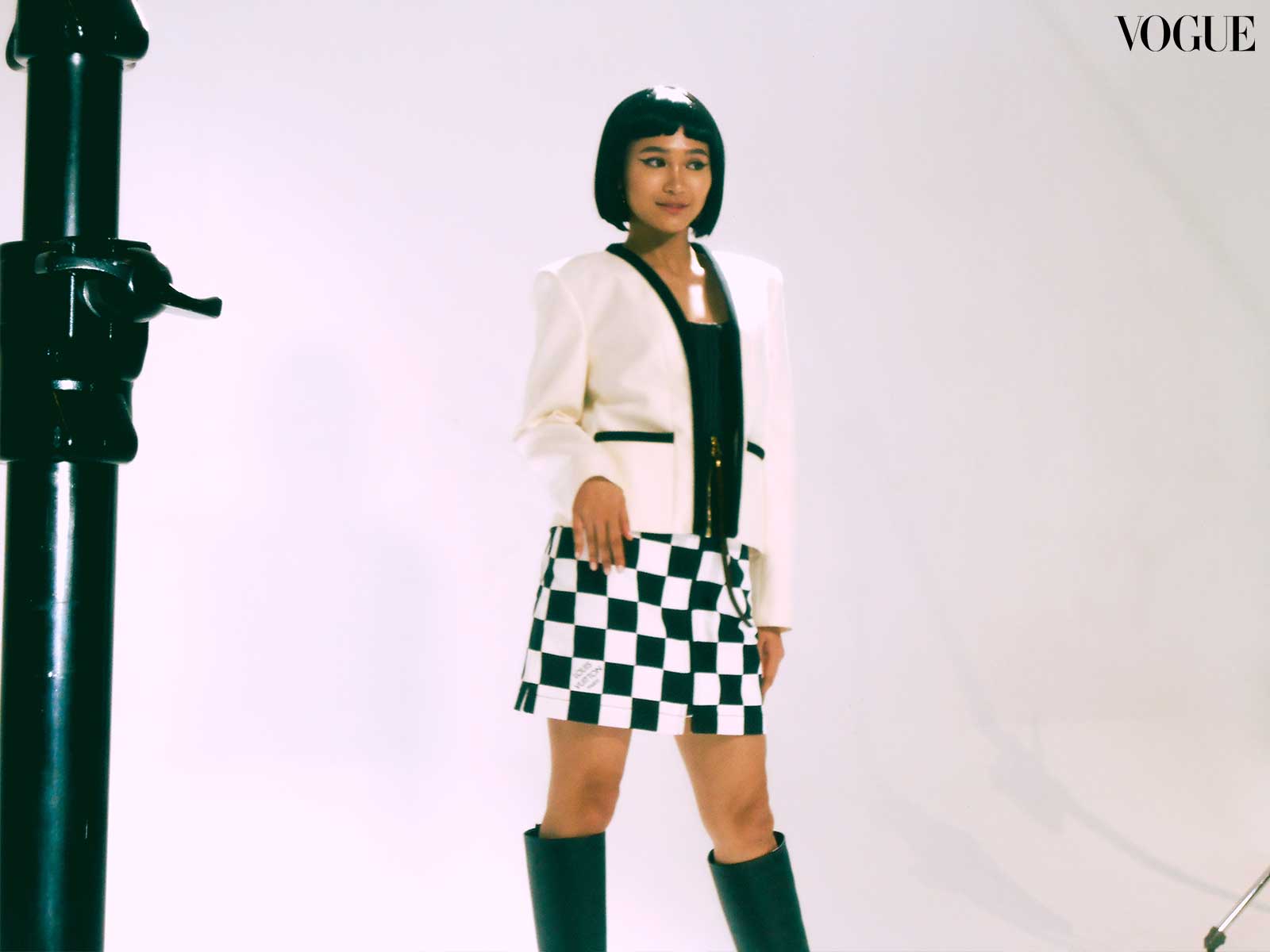 For this month’s main editorial, fashion director Pam Quiñones envisioned a bold and graphic edge, seeing connections between “the empowered youthquake of the ’60s and the fresh dynamism of BINI,” continued Valdes. Beauty editor Joyce Oreña aimed to capture the essence of that past while reimagining it for the present; the team cites William Klein’s 1966 film Who Are You, Polly Magoo? as one of the primary inspirations, translating helmet hair and heavily lashed eyes to contemporary bobs and deconstructed liner.