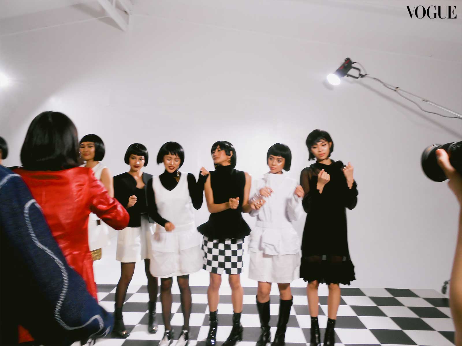 BINI documents their first Vogue Philippines shoot, capturing moments between layouts on a shared digital camera.